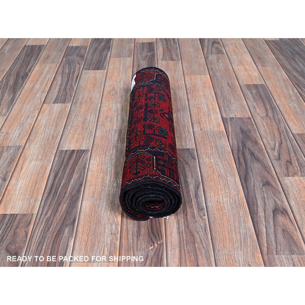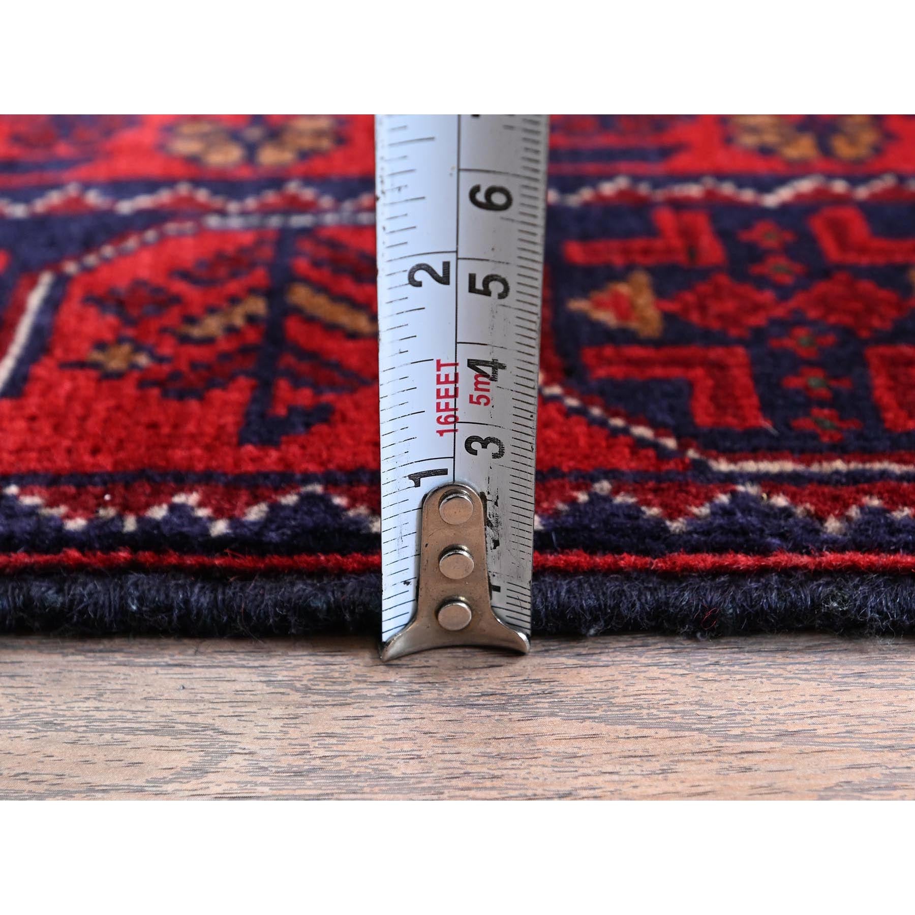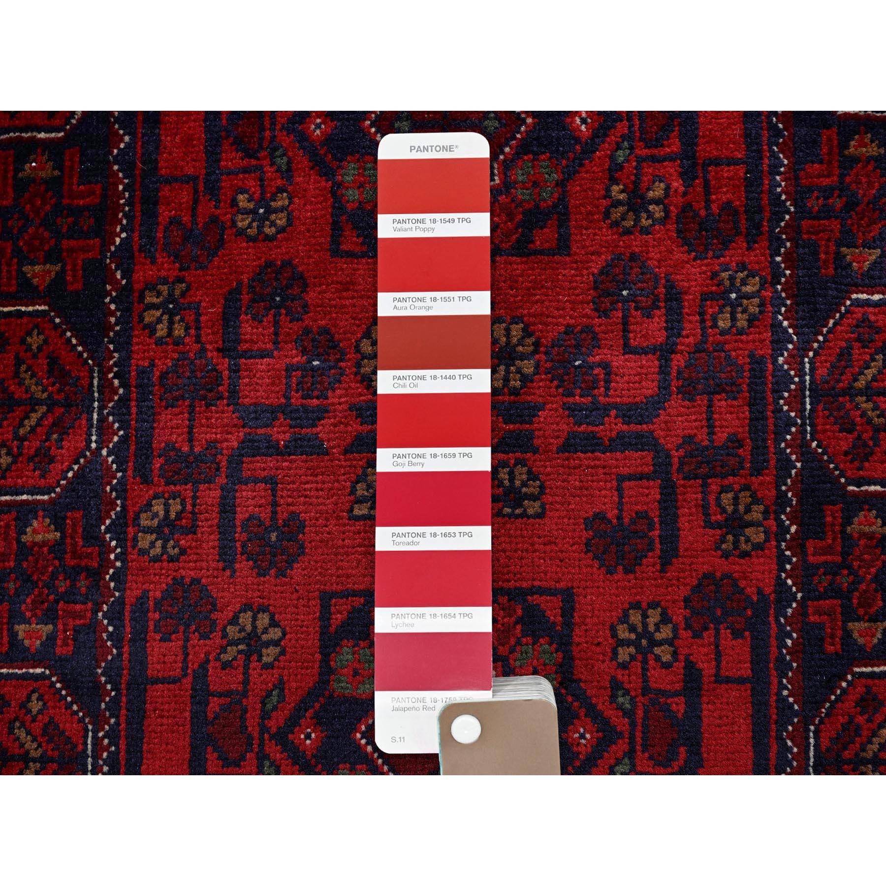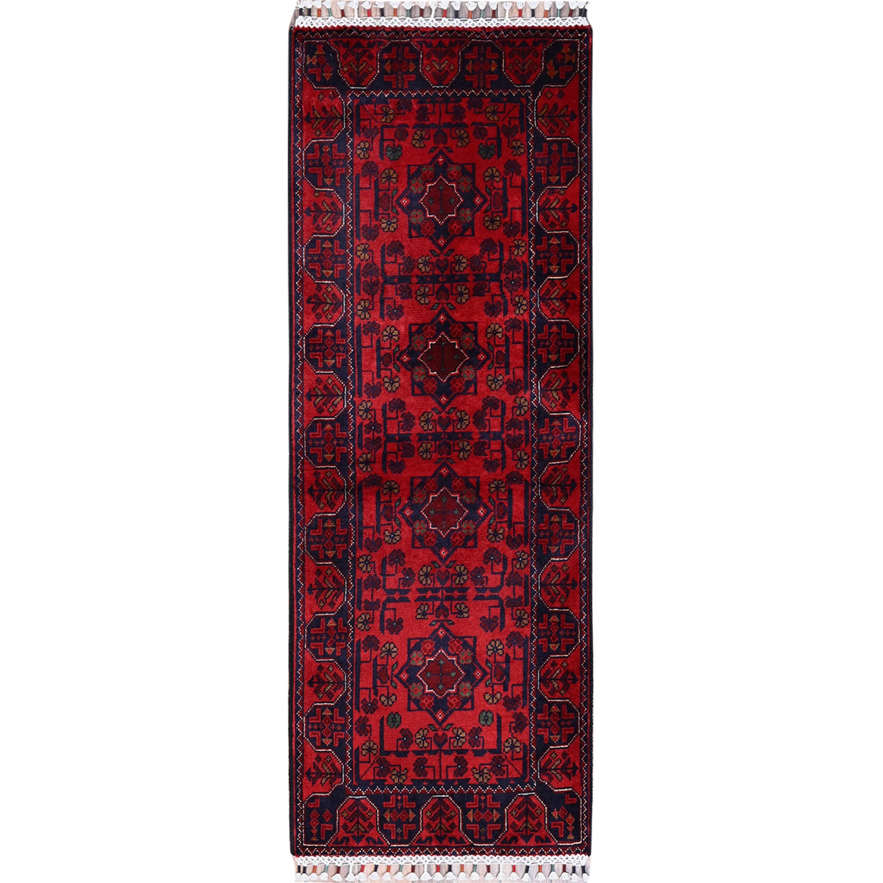 1'9"x4'10" Crimson Red, Afghan Khamyab With Tribal Medallions Design, Soft Wool, Natural Dyes, Hand Knotted, Short & Narrow Runner, Oriental Rug FWR4428