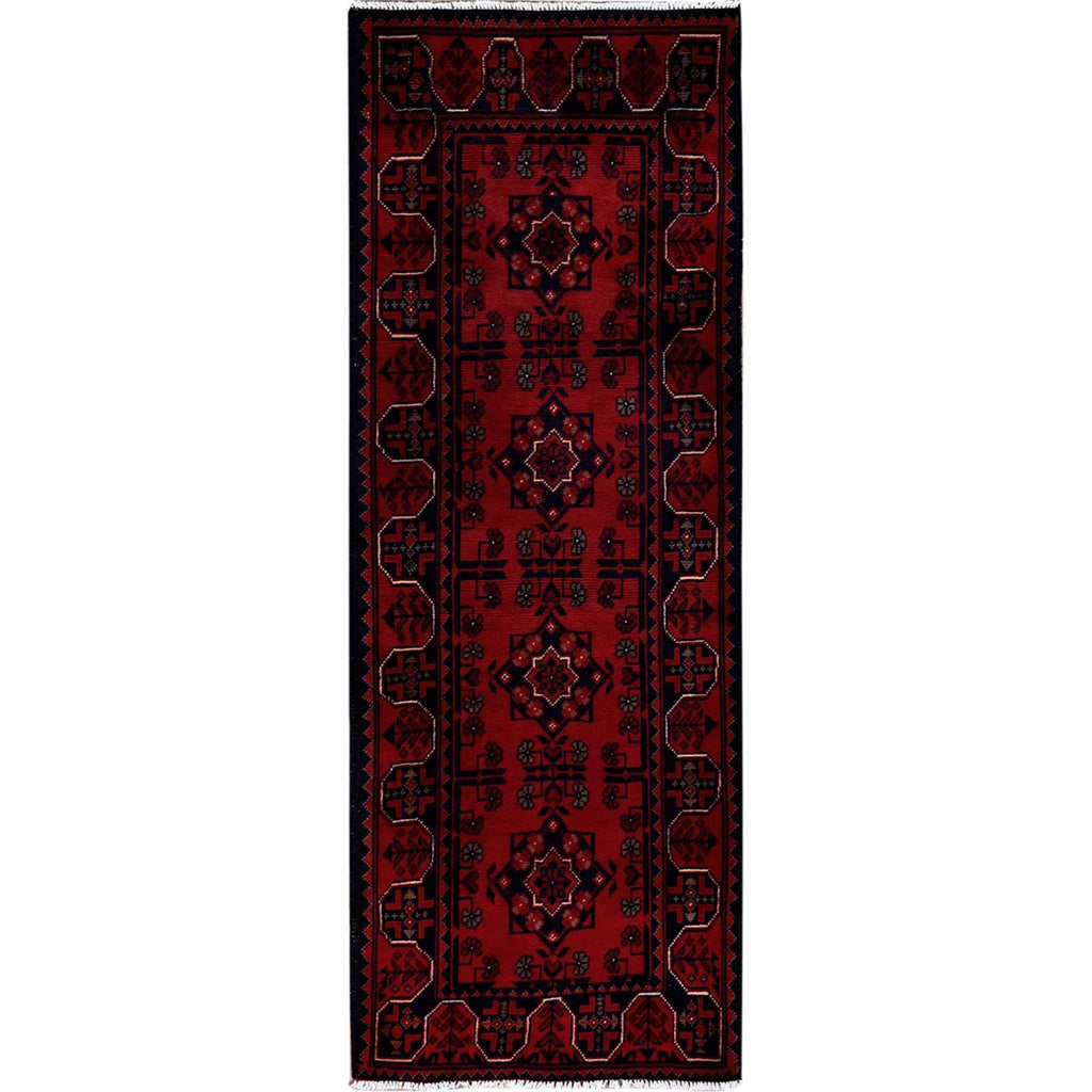 1'9"x4'9" Carmine Red, Afghan Khamyab With Tribal Medallions Design, Hand Knotted, Soft And Velvety Wool, Vegetable Dyes, Short And Narrow Runner, Oriental Rug FWR4536