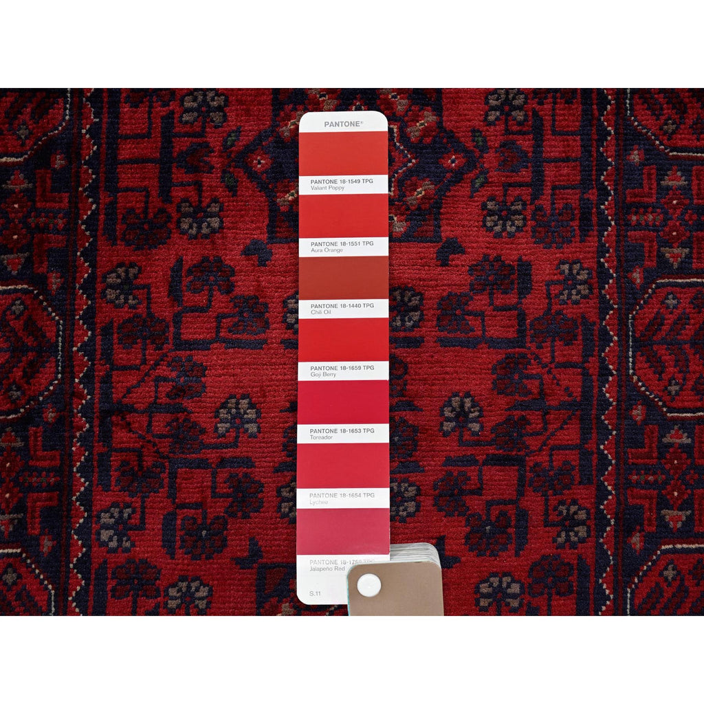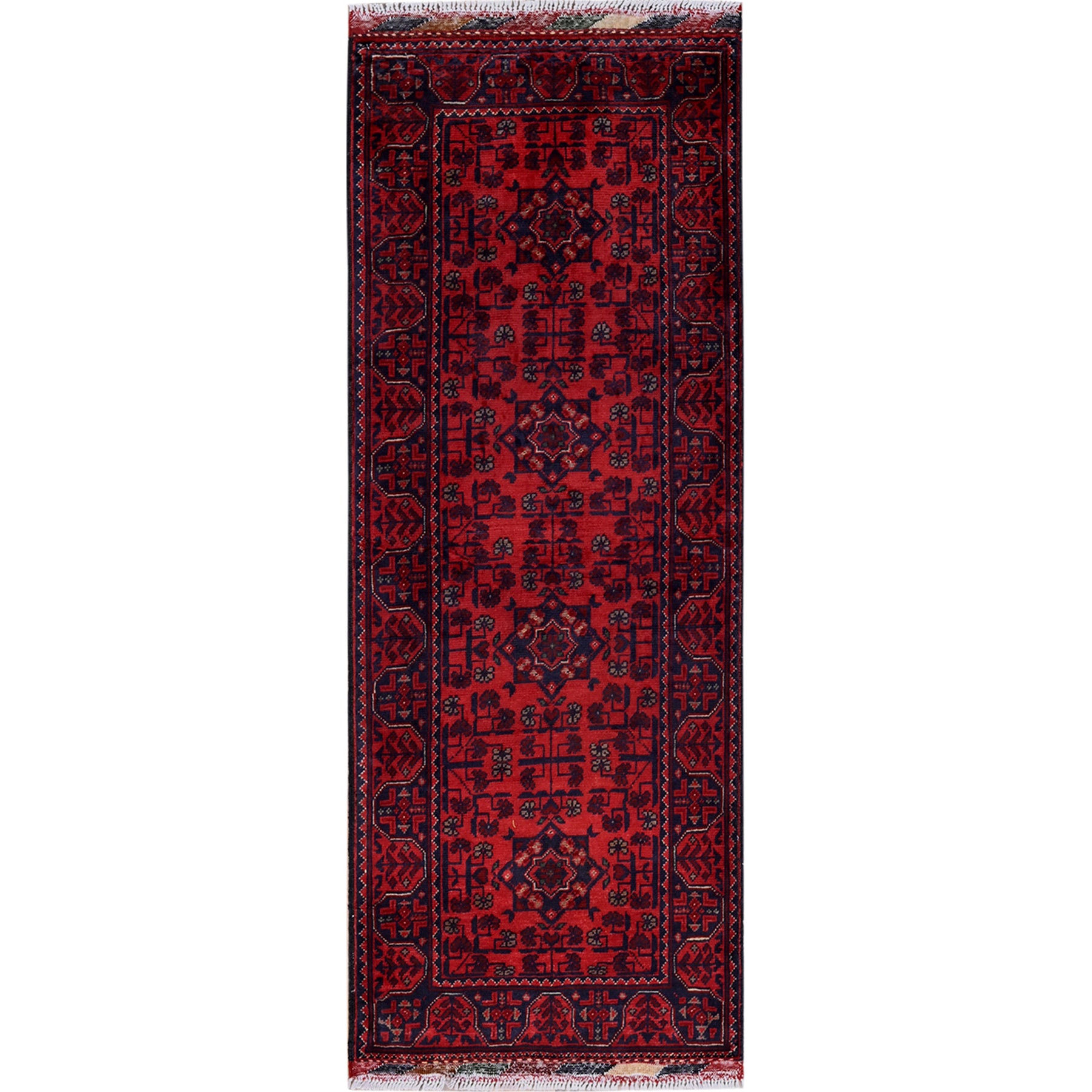 1'9"x4'9" Ruby Red, Afghan Khamyab With Geometric Medallions Design, Hand Knotted, Soft And Velvety Wool, Vegetable Dyes, Short And Narrow Runner, Oriental Rug FWR4518
