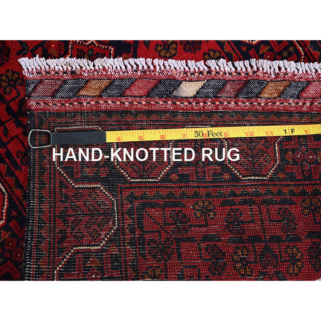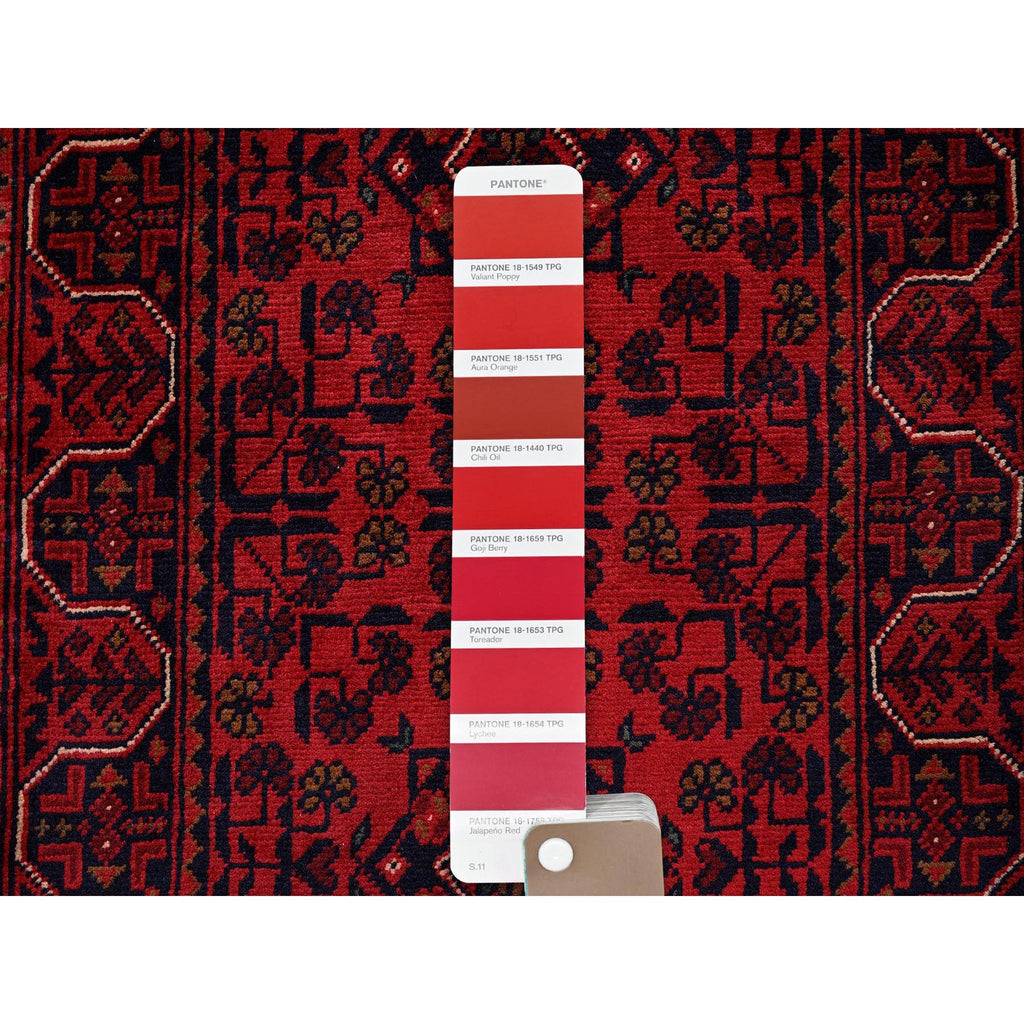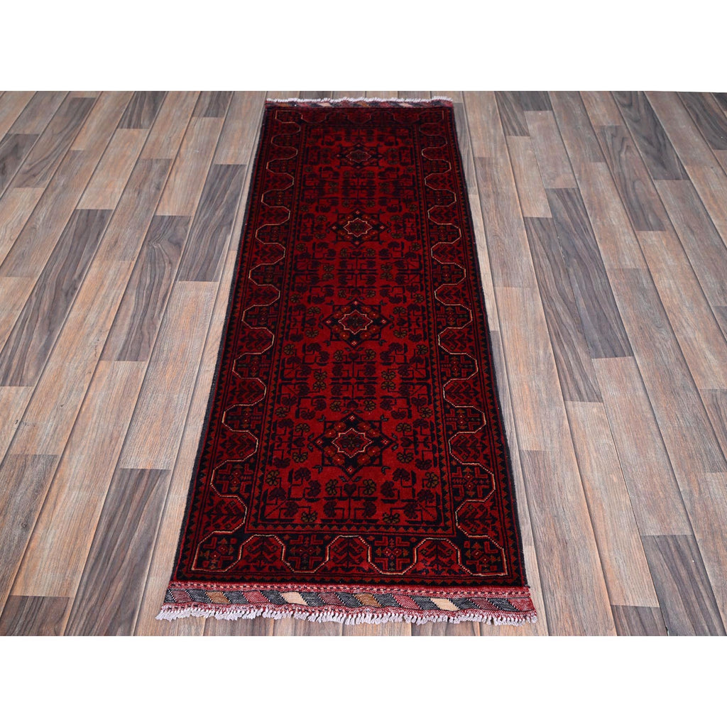1'9"x5' Angels Red, Hand Knotted, Afghan Khamyab With Geometric Medallions Design, Soft 100% Wool, Natural Dyes, Short & Narrow Runner, Oriental Rug FWR4470