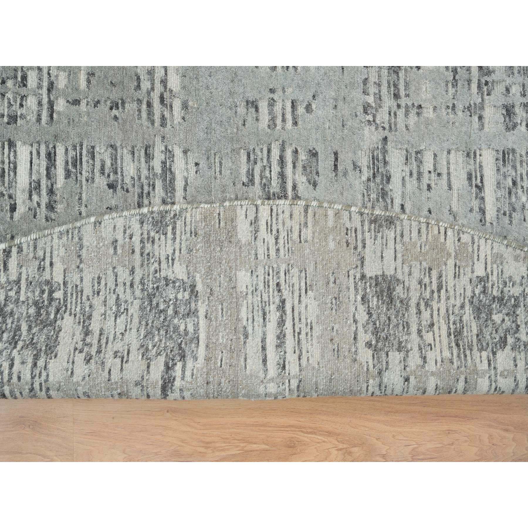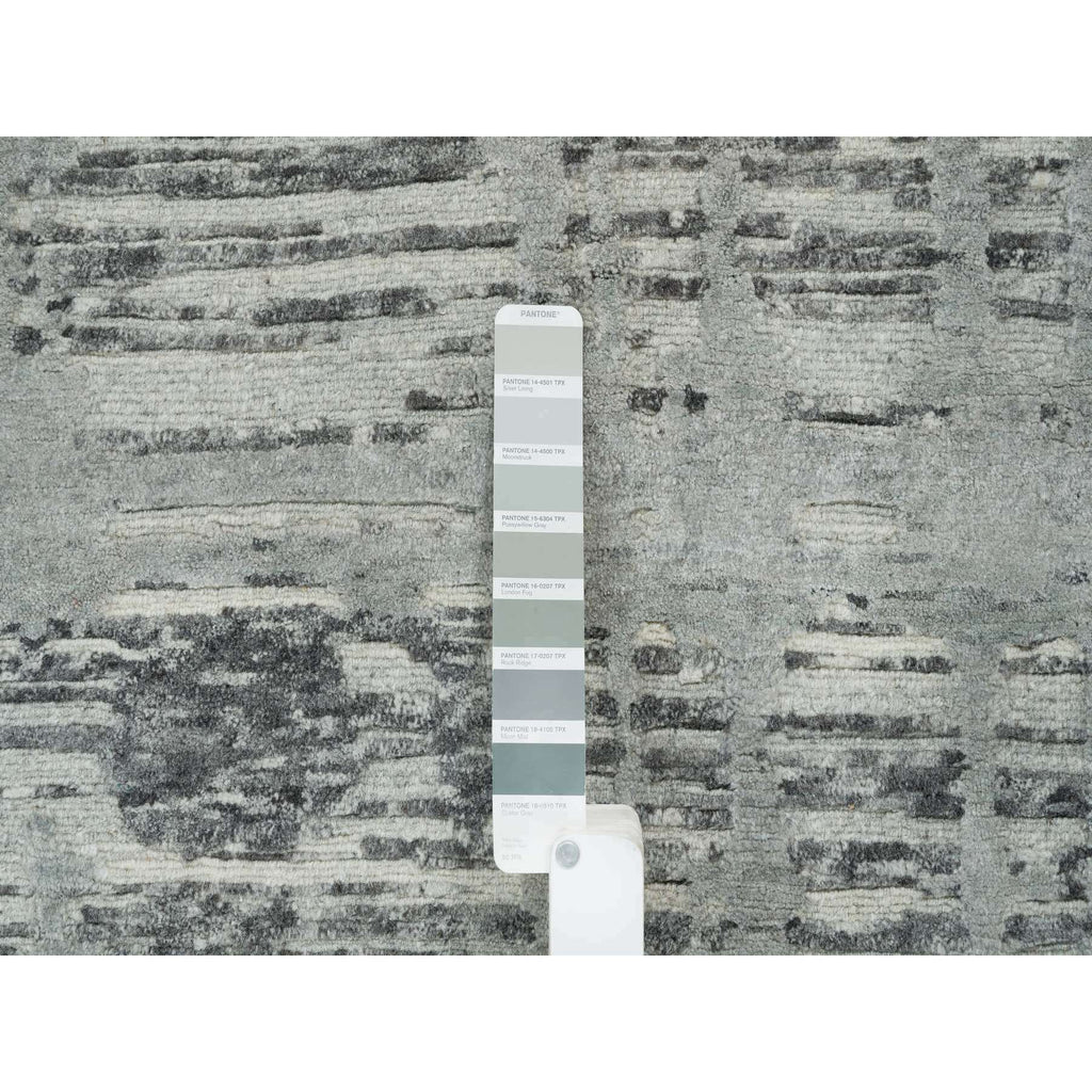 10'1"x10'1" Dark Grey, Hand Spun Undyed Natural Wool, Hand Knotted, Modern Criss Cross Erased Design, Round Oriental Rug FWR393840
