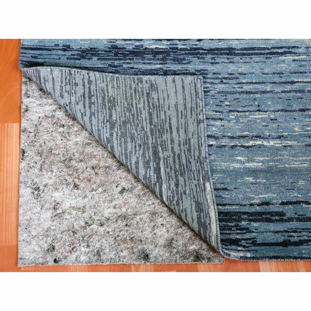 10'1"x10'1" Pure Wool Horizontal Ombre Design Blue Oceanic Hand Knotted Square Oriental Rug FWR401112