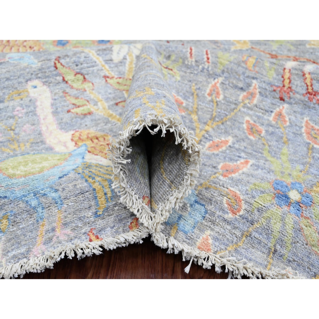 10'1"x10'1" Spanish Gray, Afghan Peshawar With Birds Of Paradise Design, Hand Knotted, Soft Wool, Vegetable Dyes, Round, Oriental Rug FWR539898