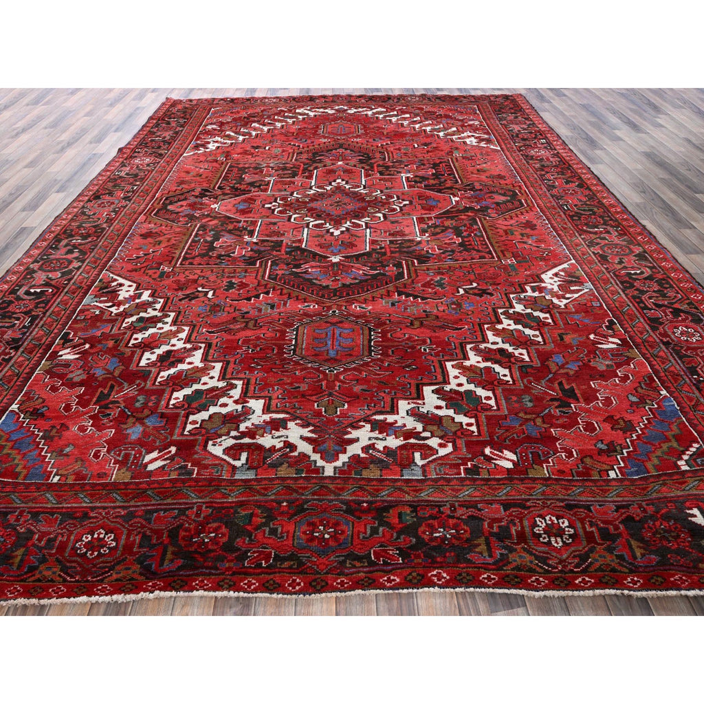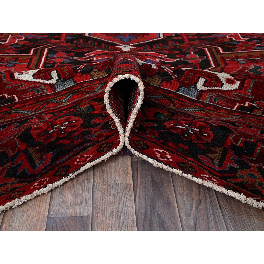 10'1"x12'7" Imperial Red, Vintage Persian Heriz With Large Medallion Design, 100% Wool, Hand Knotted, Evenly Worn, Shaved Down, Good Condition, Sides And Ends Professionally Secured, Oriental Rug FWR1692