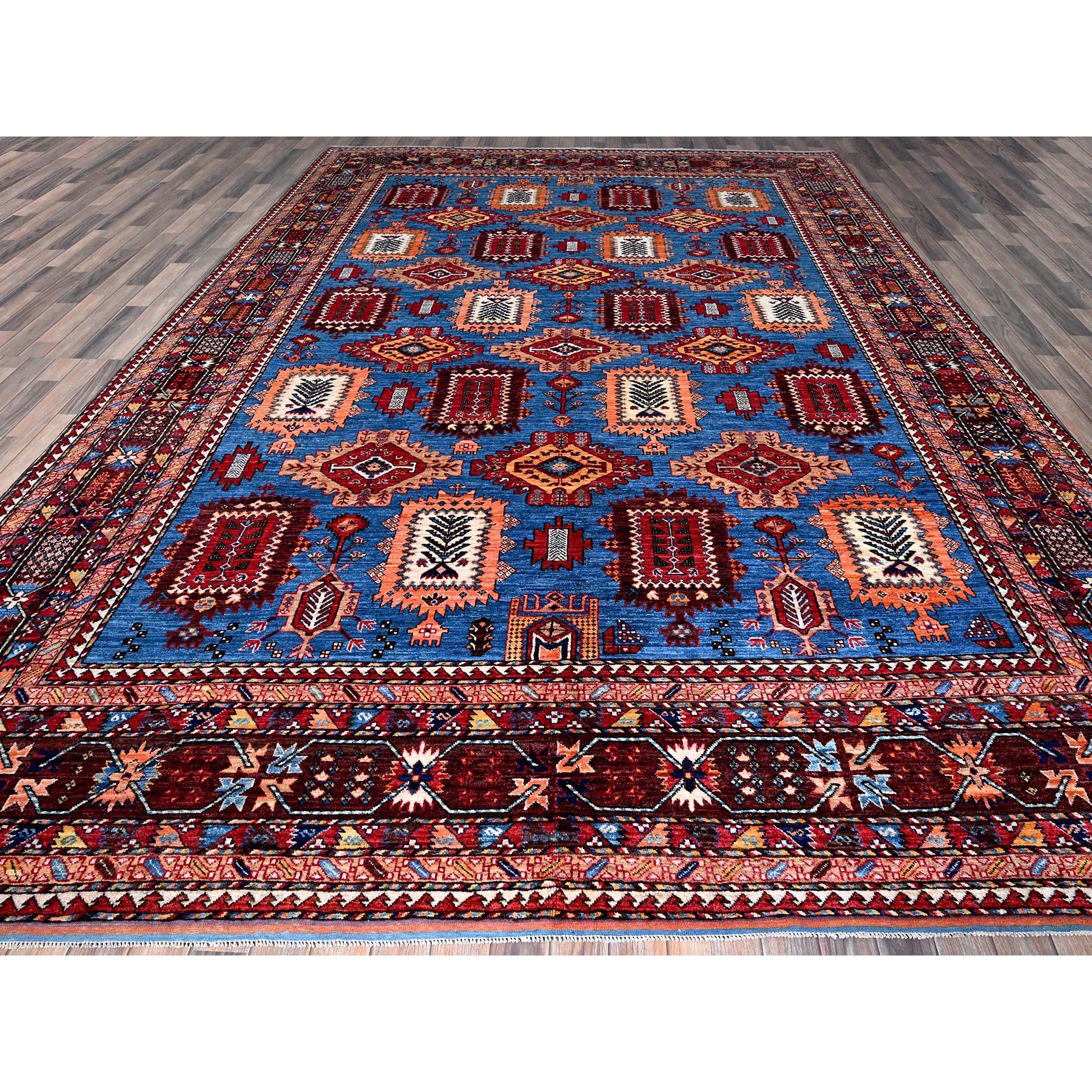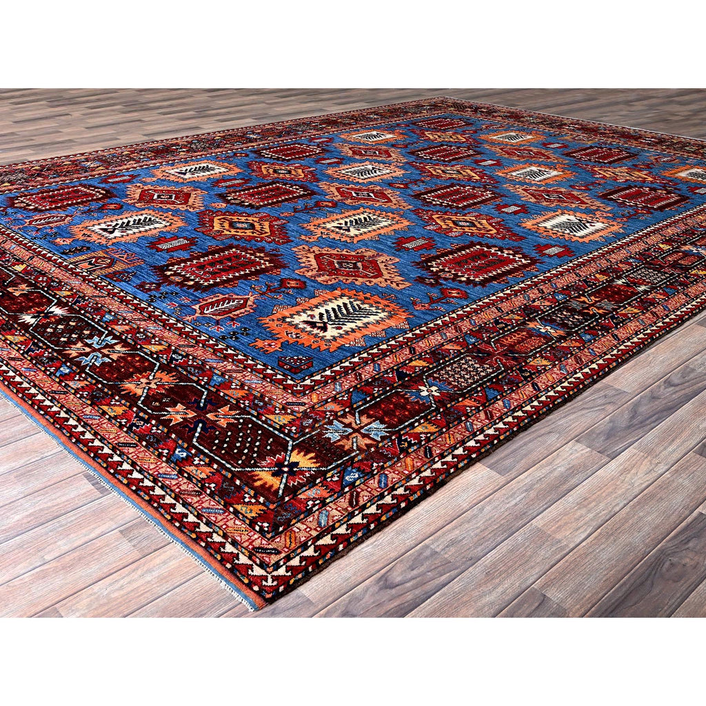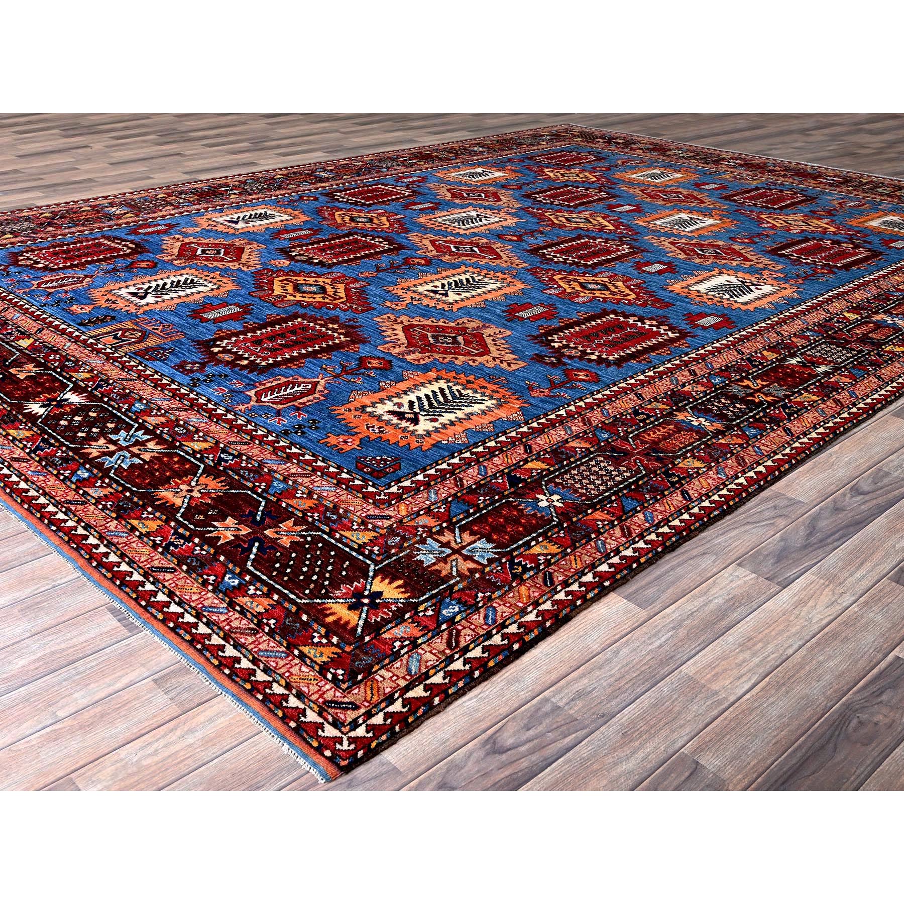 10'1"x13'4" Bayern Blue, Afghan Ersari With Turkish Knot, Caucasian Design Revival, Vegetable Dyes, Hand Knotted, Soft Wool, Densely Woven, Oriental Rug FWR3378