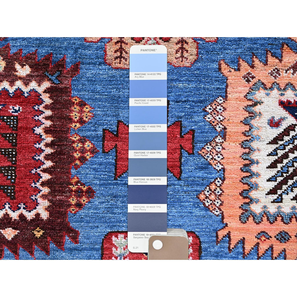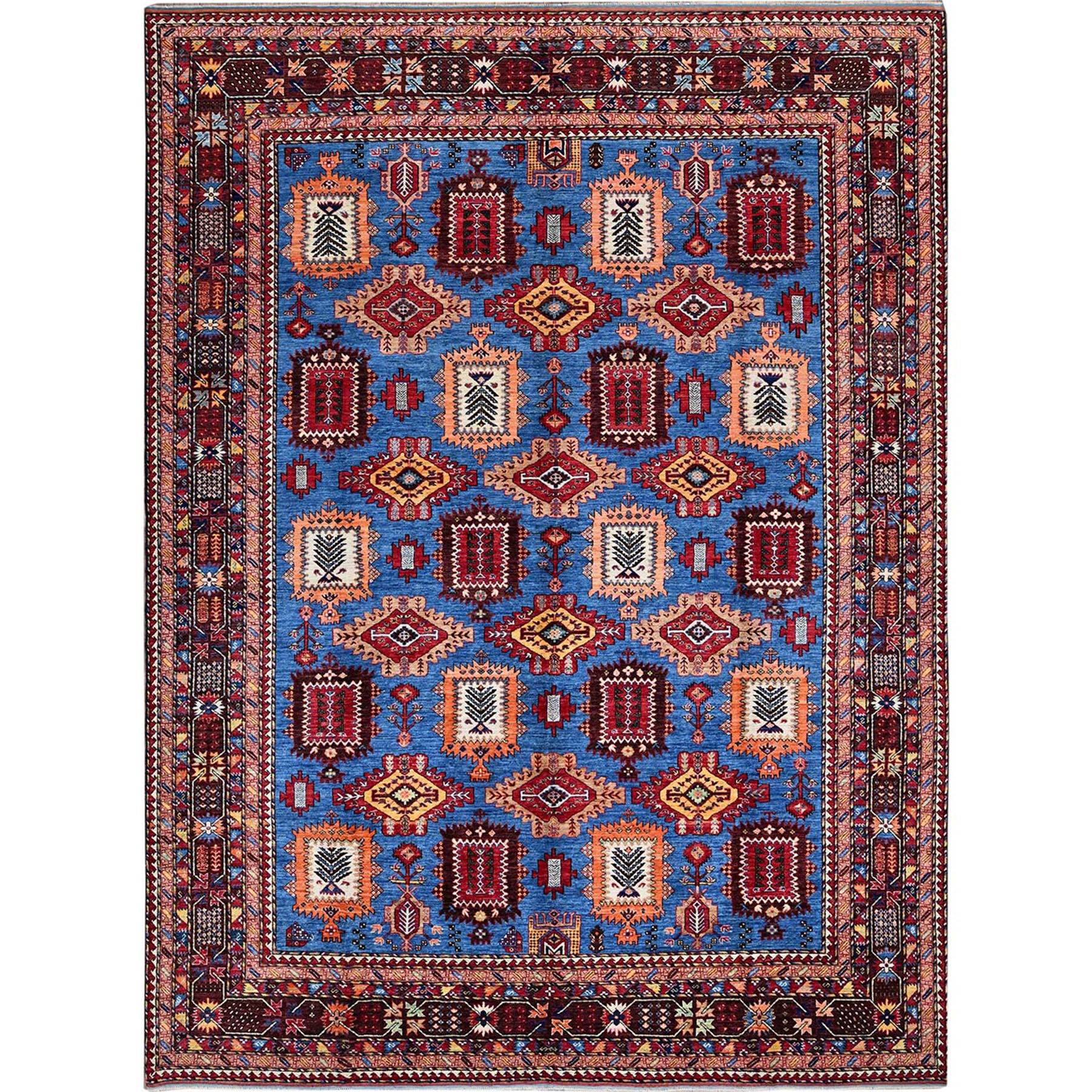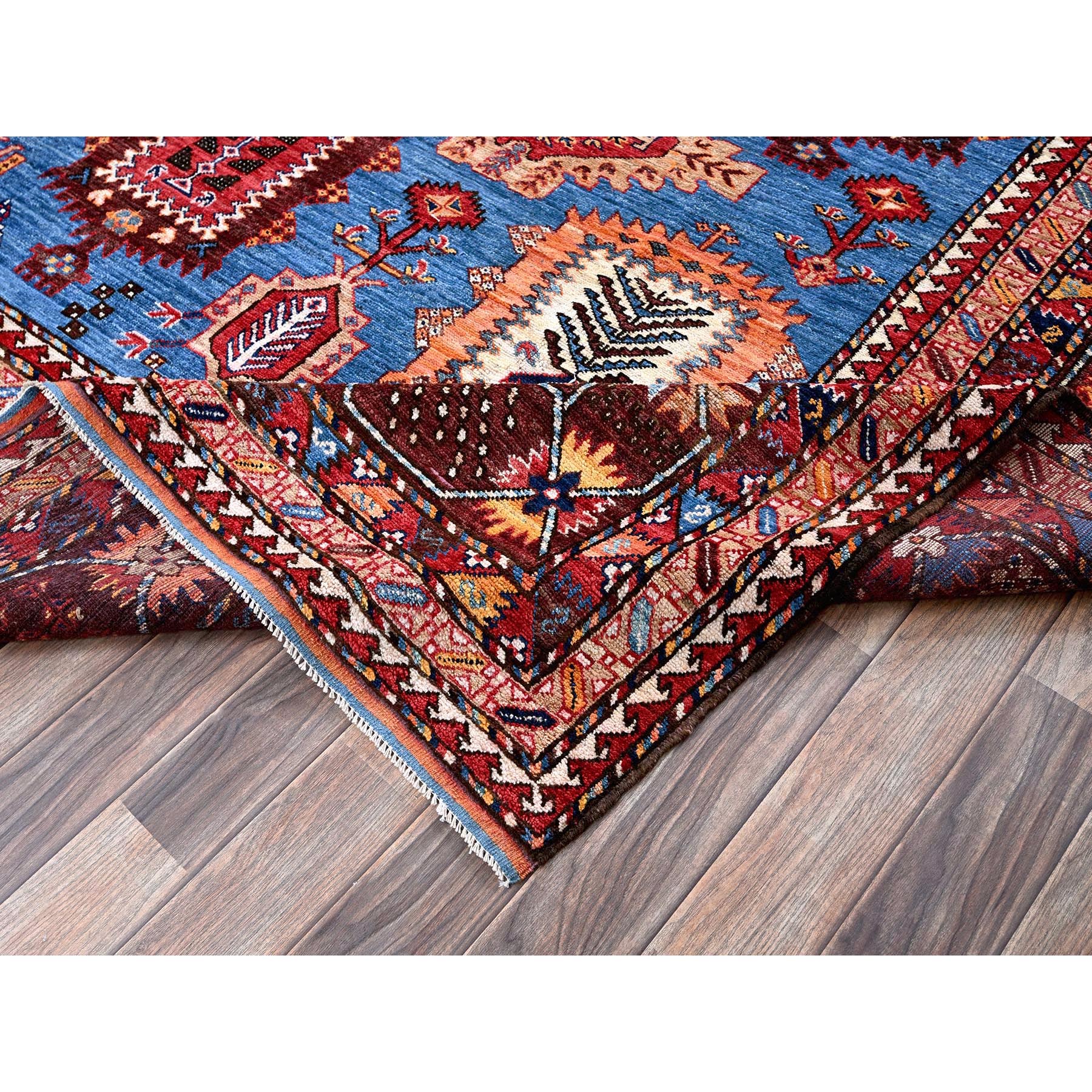 10'1"x13'4" Bayern Blue, Afghan Ersari With Turkish Knot, Caucasian Design Revival, Vegetable Dyes, Hand Knotted, Soft Wool, Densely Woven, Oriental Rug FWR3378
