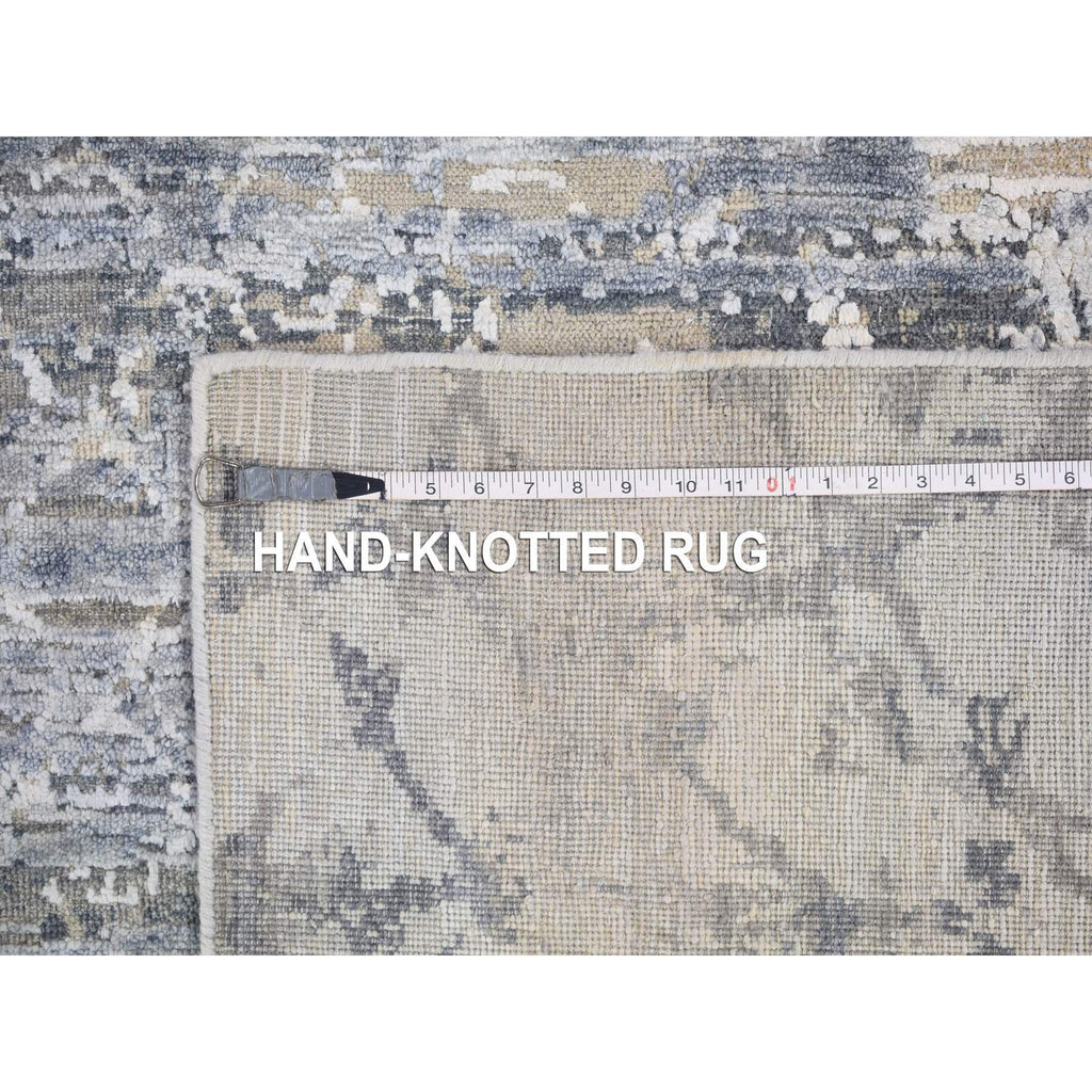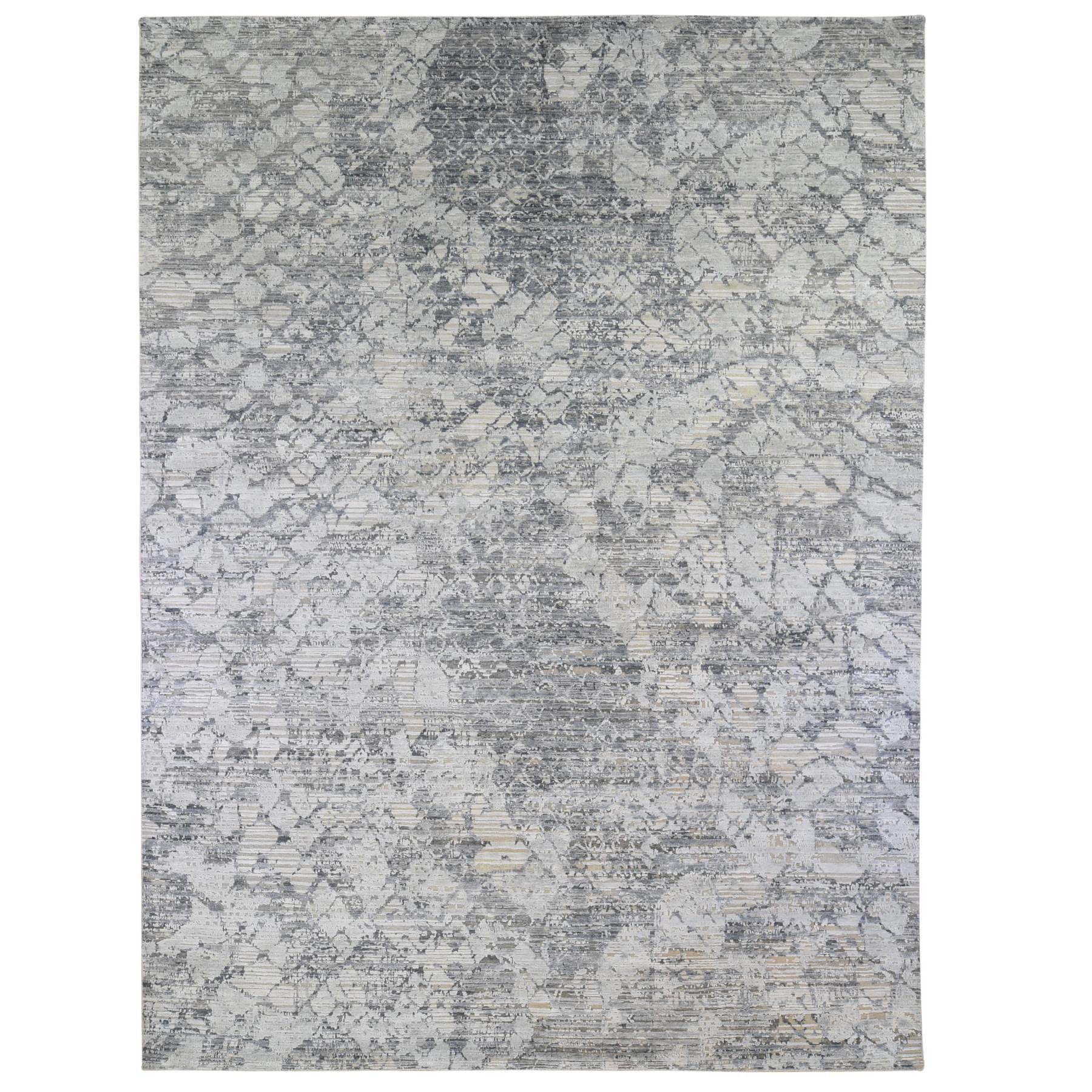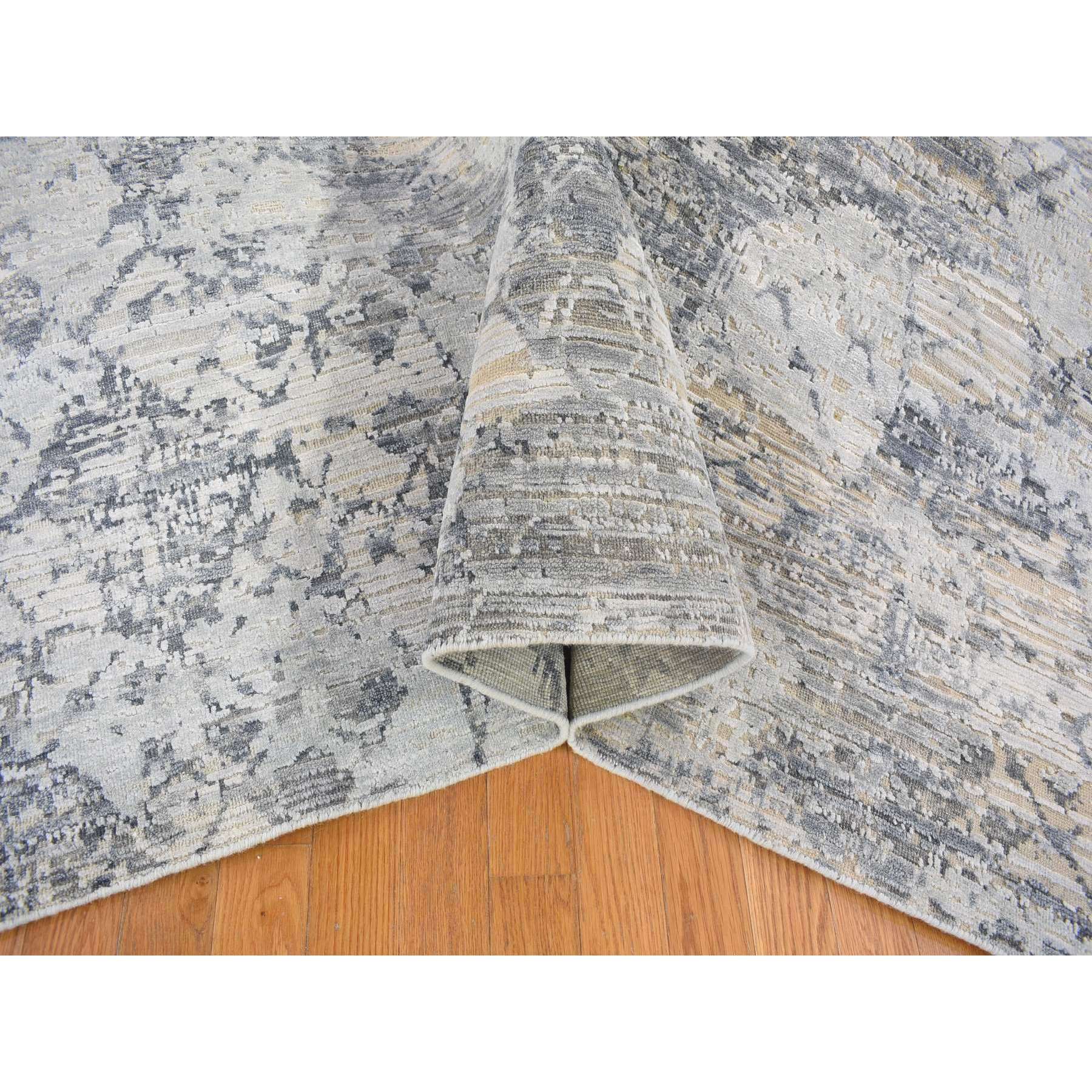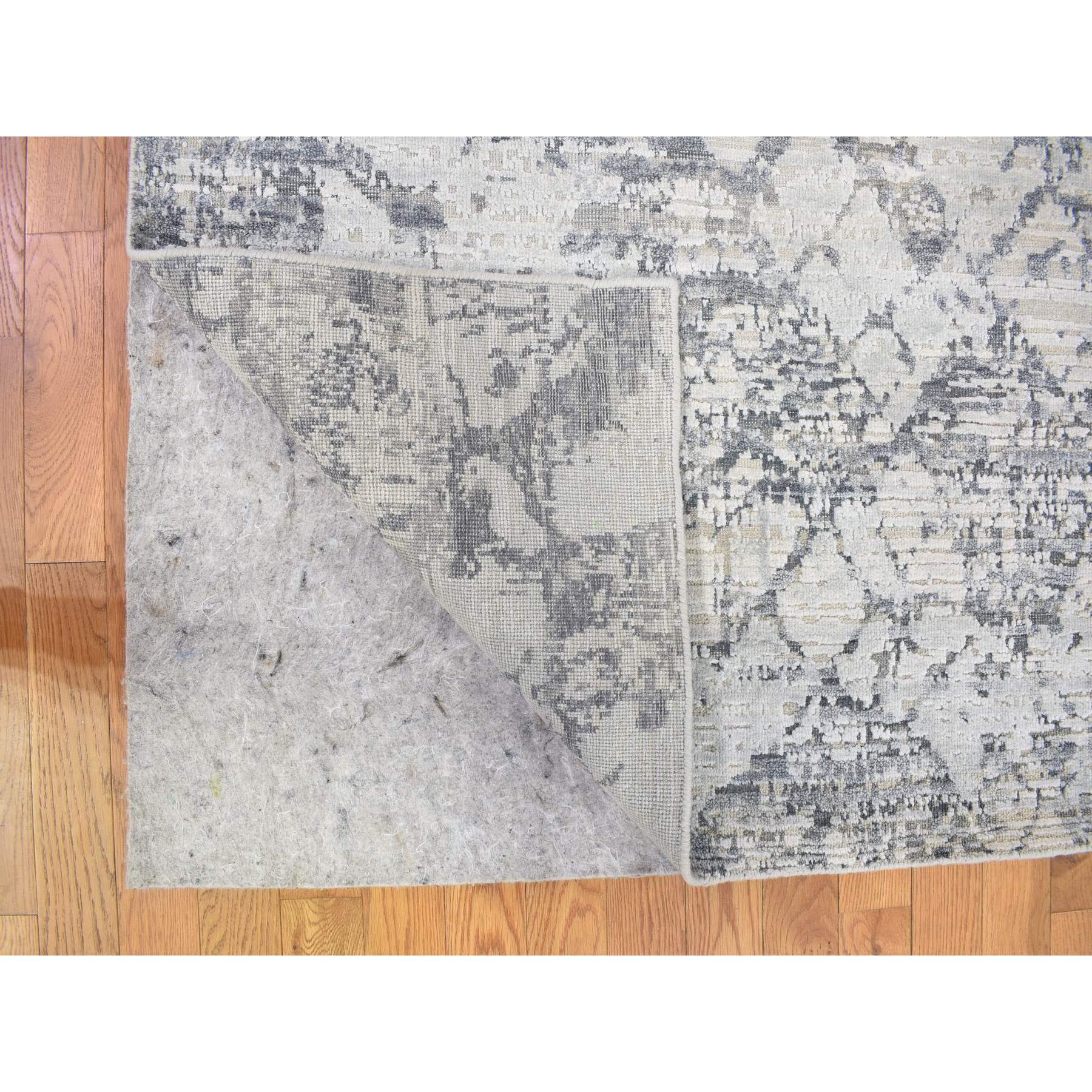 10'1"x14'2" Pure Silk And Textured Wool Gray With Touches Of Beige Hand Knotted Modern Design Oriental Rug FWR401250