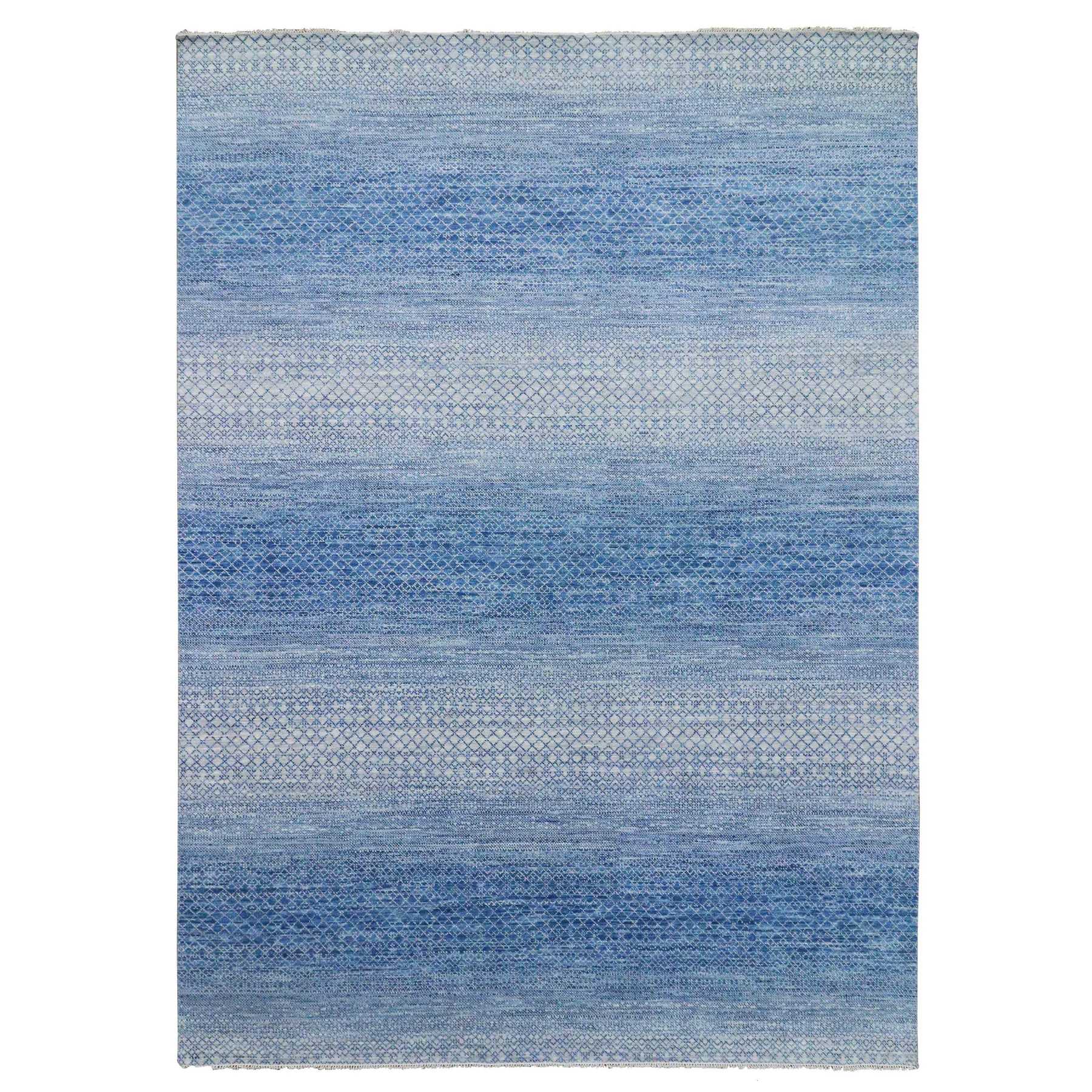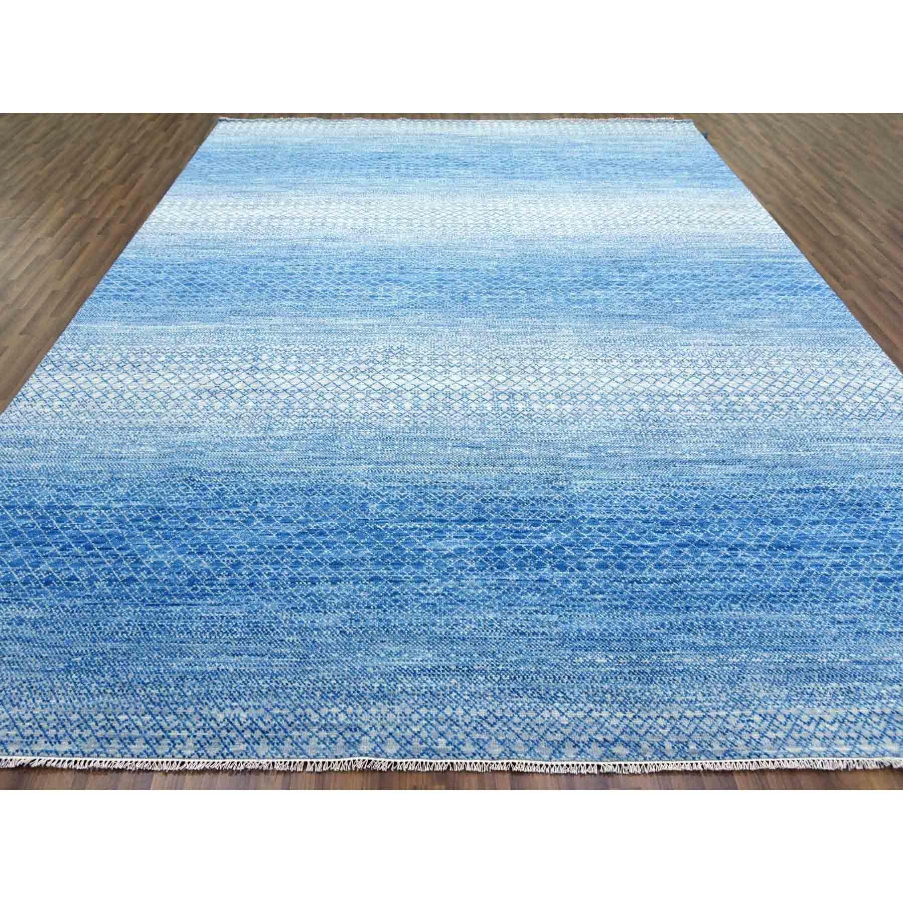 10'1"x14' Blue, Hand Knotted Modern Chiaroscuro Collection, Pure Wool Thick And Plush, Oriental Rug FWR474138