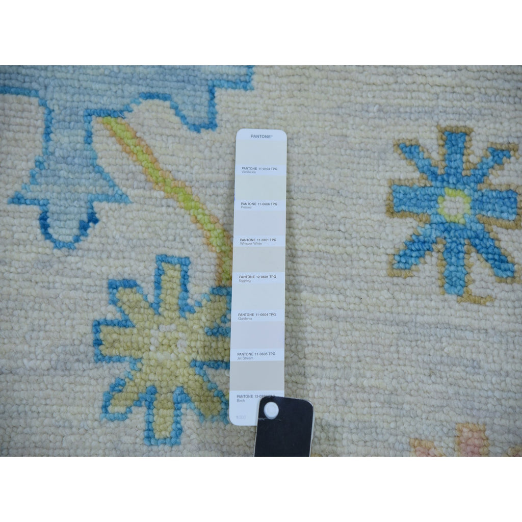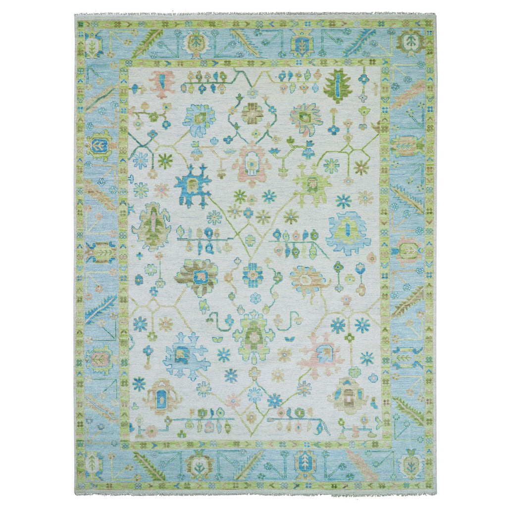 10'1"x14' Lace Ivory, Oushak Weave And Design, Hand Knotted, All Over Leaf Pattern, 100% Wool, Substantially Heavy, Oriental Rug FWR479700