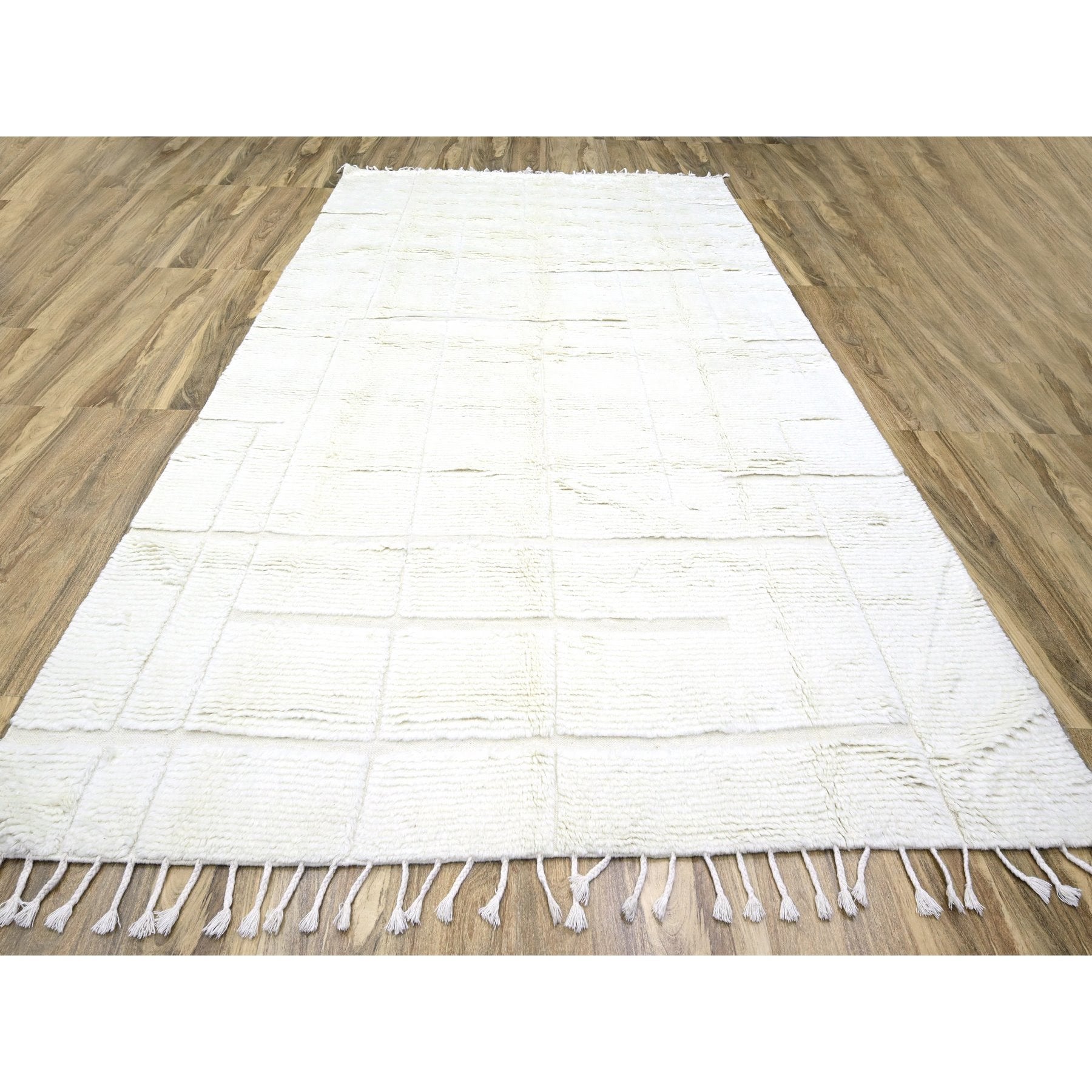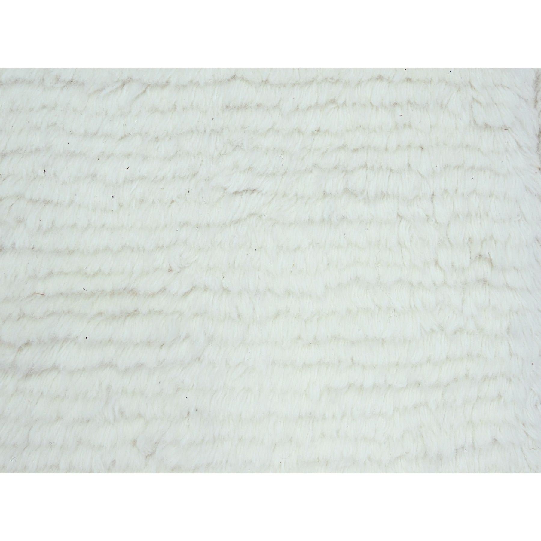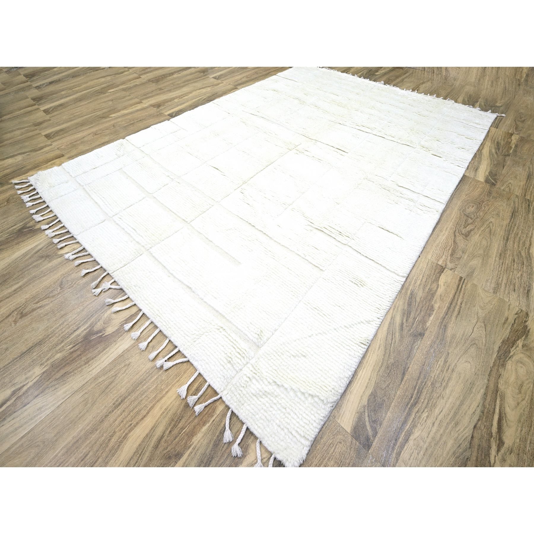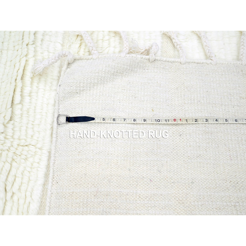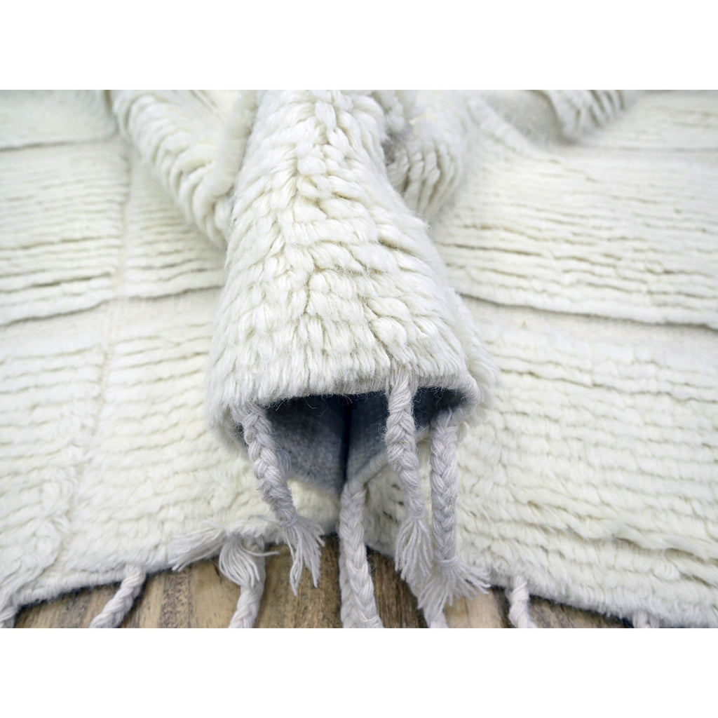10'1"x14' Pearl White, Moroccan Weave With Grid Design, Solid, Textured Wool, Hand Knotted, Oriental Rug FWR457266