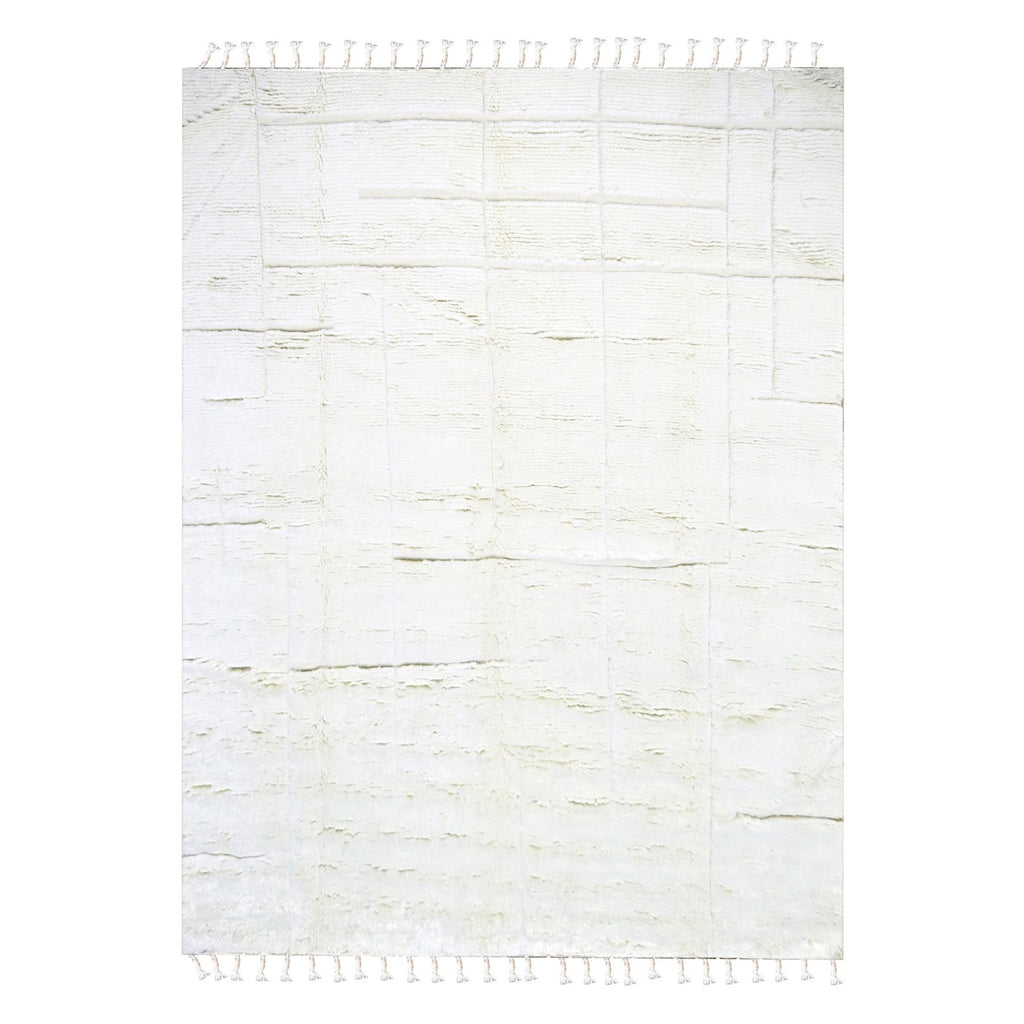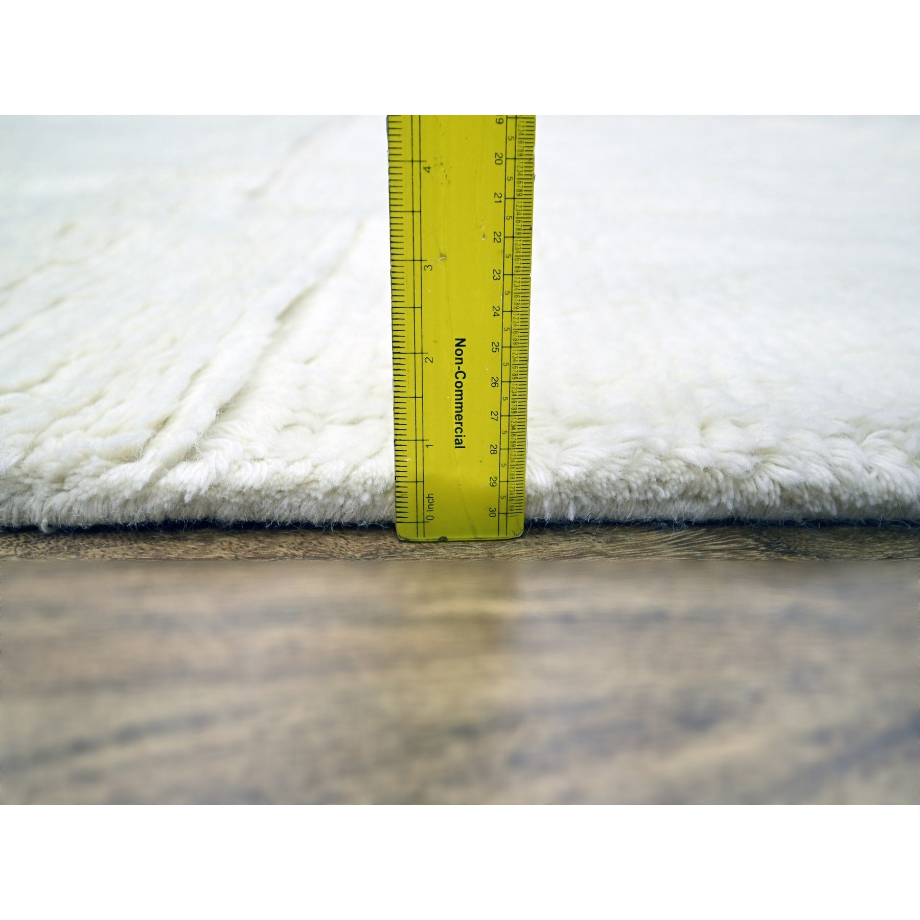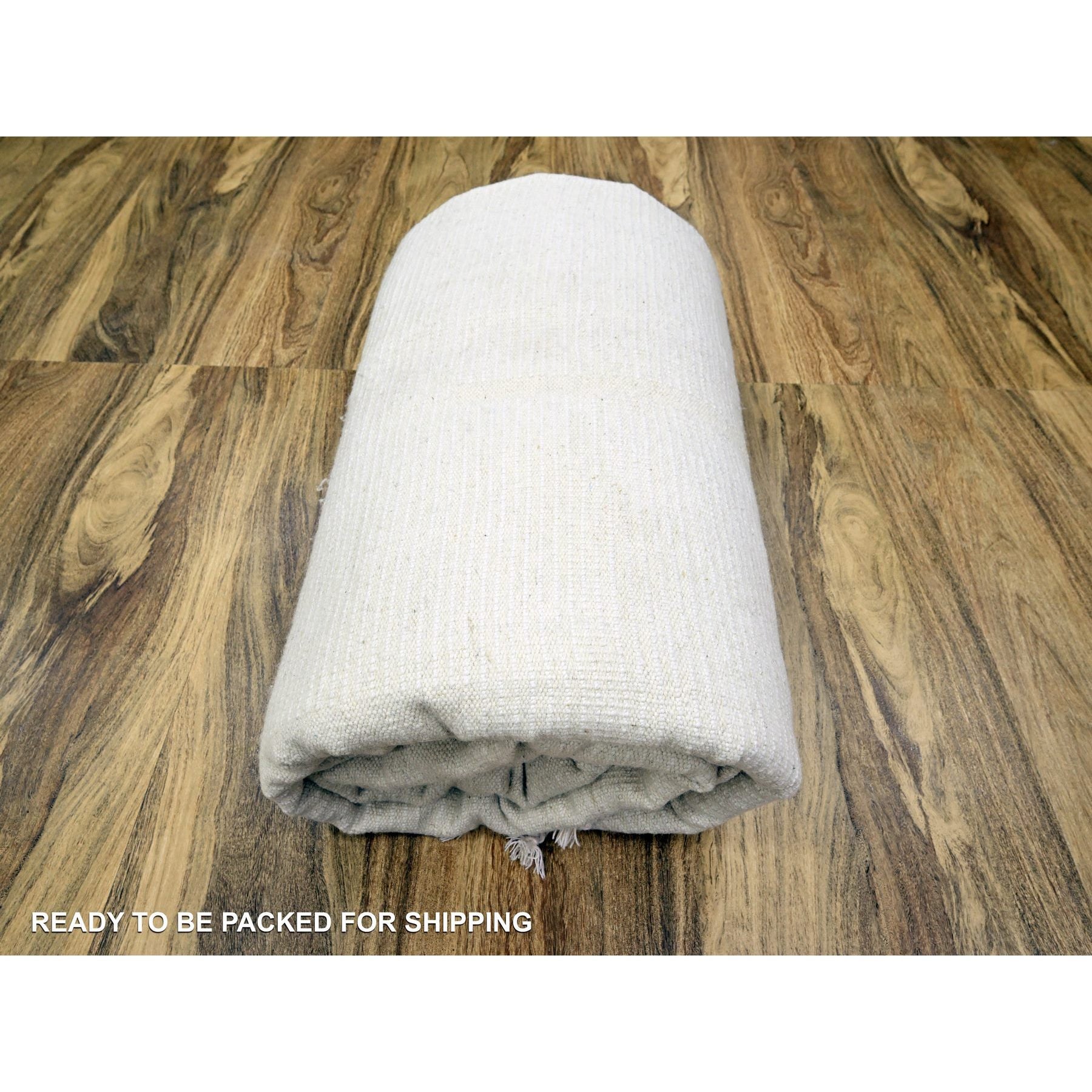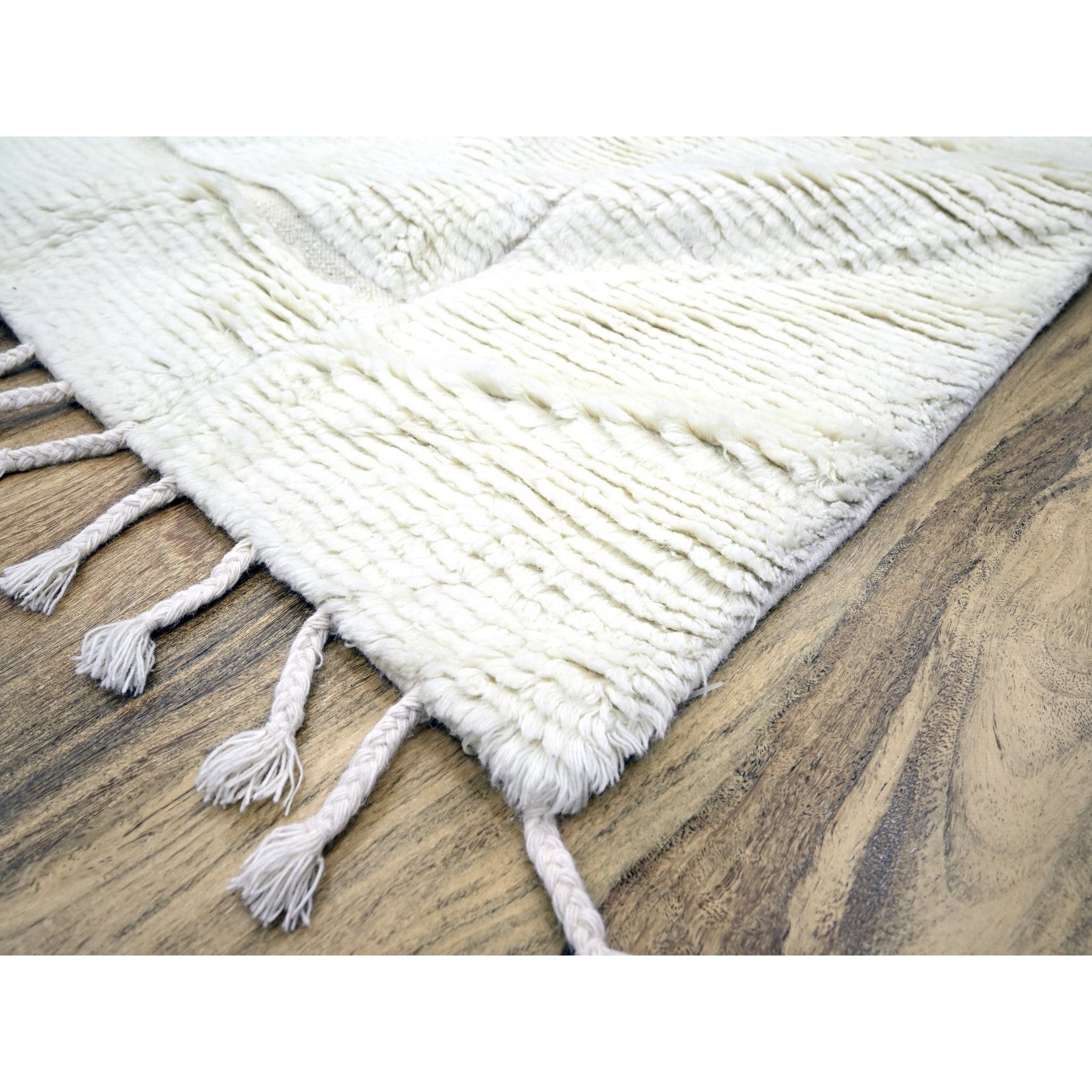 10'1"x14' Pearl White, Moroccan Weave With Grid Design, Solid, Textured Wool, Hand Knotted, Oriental Rug FWR457266