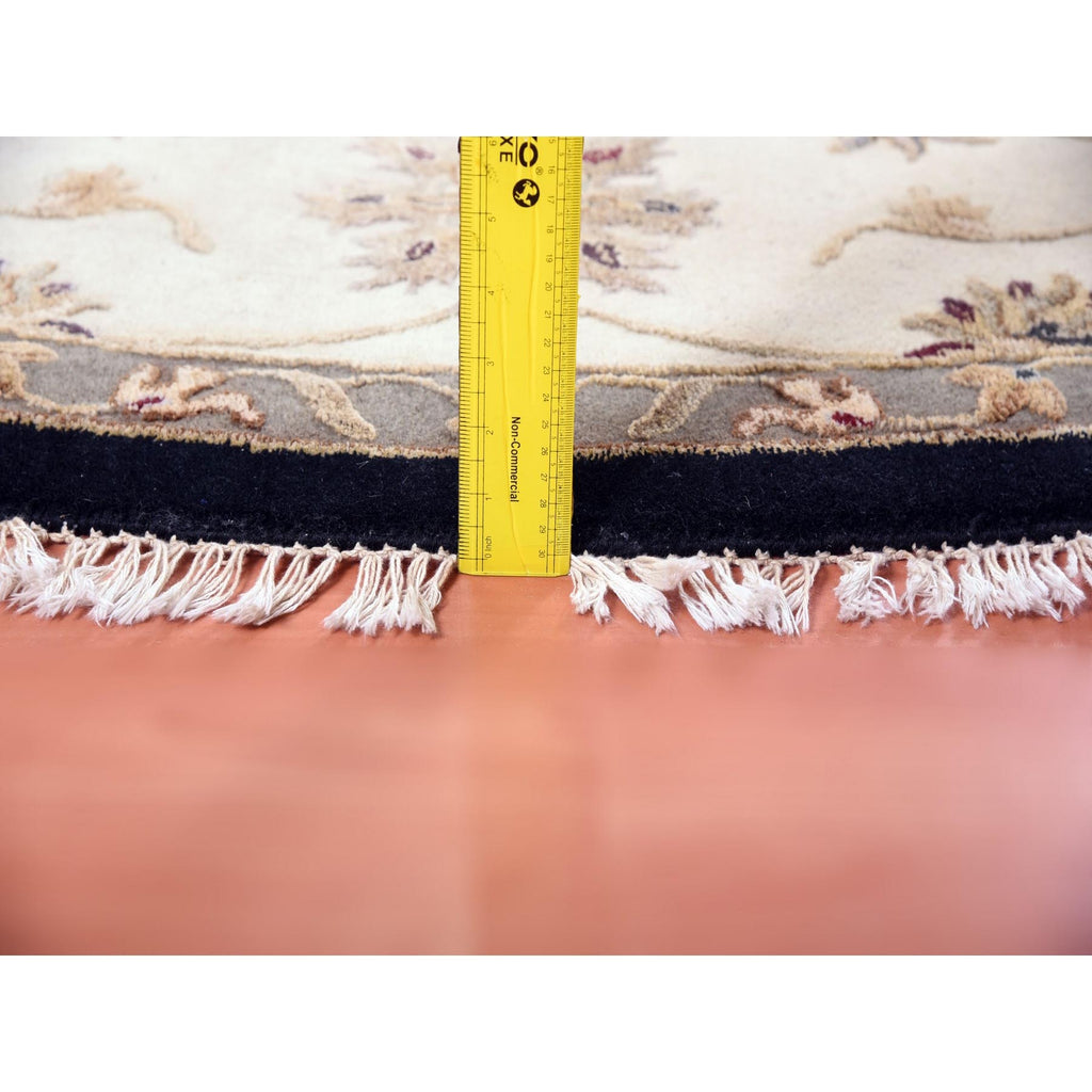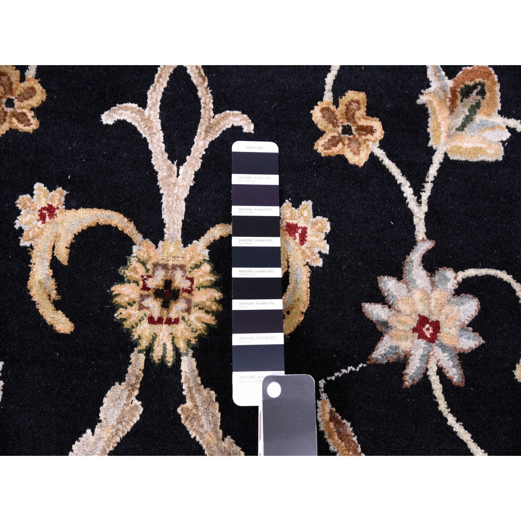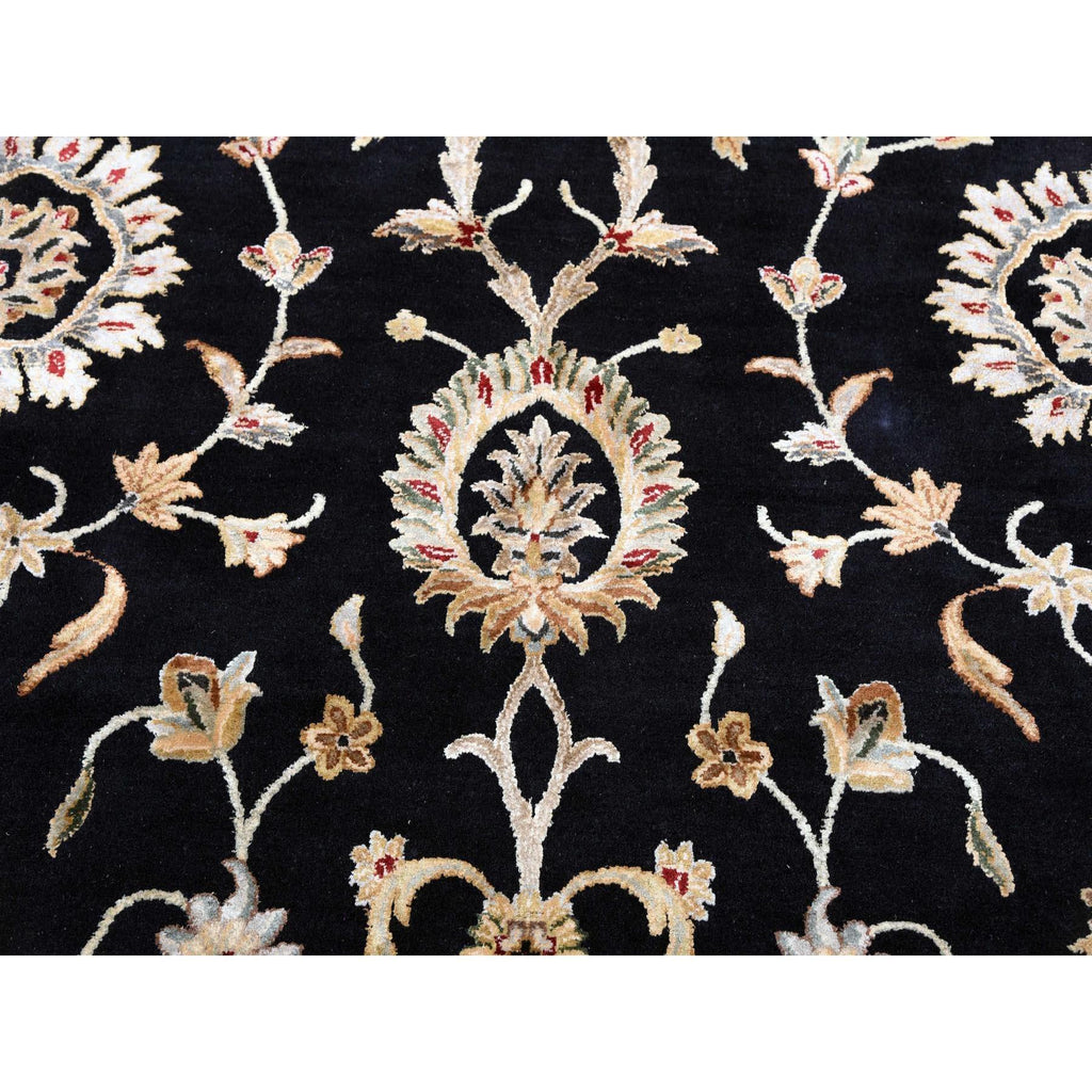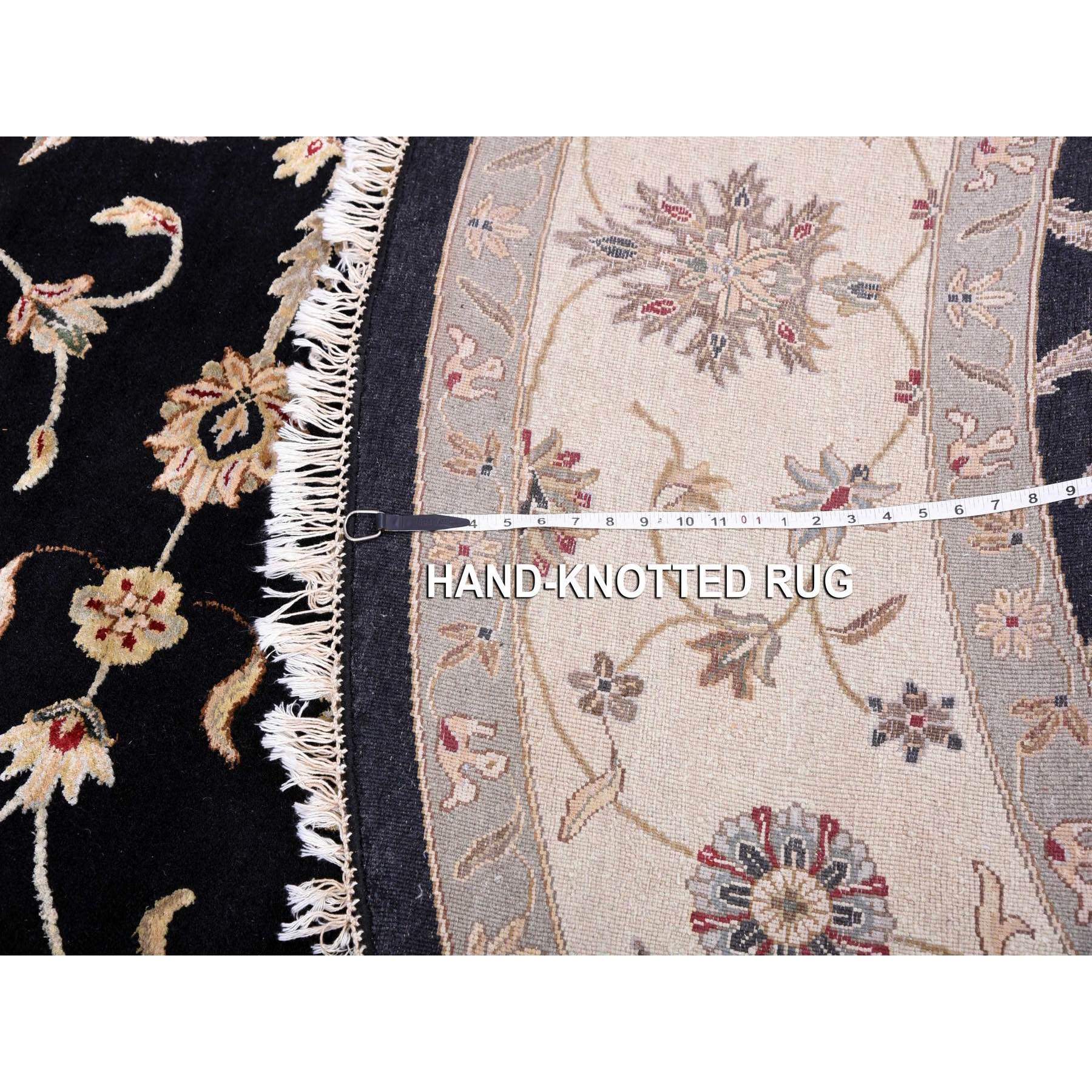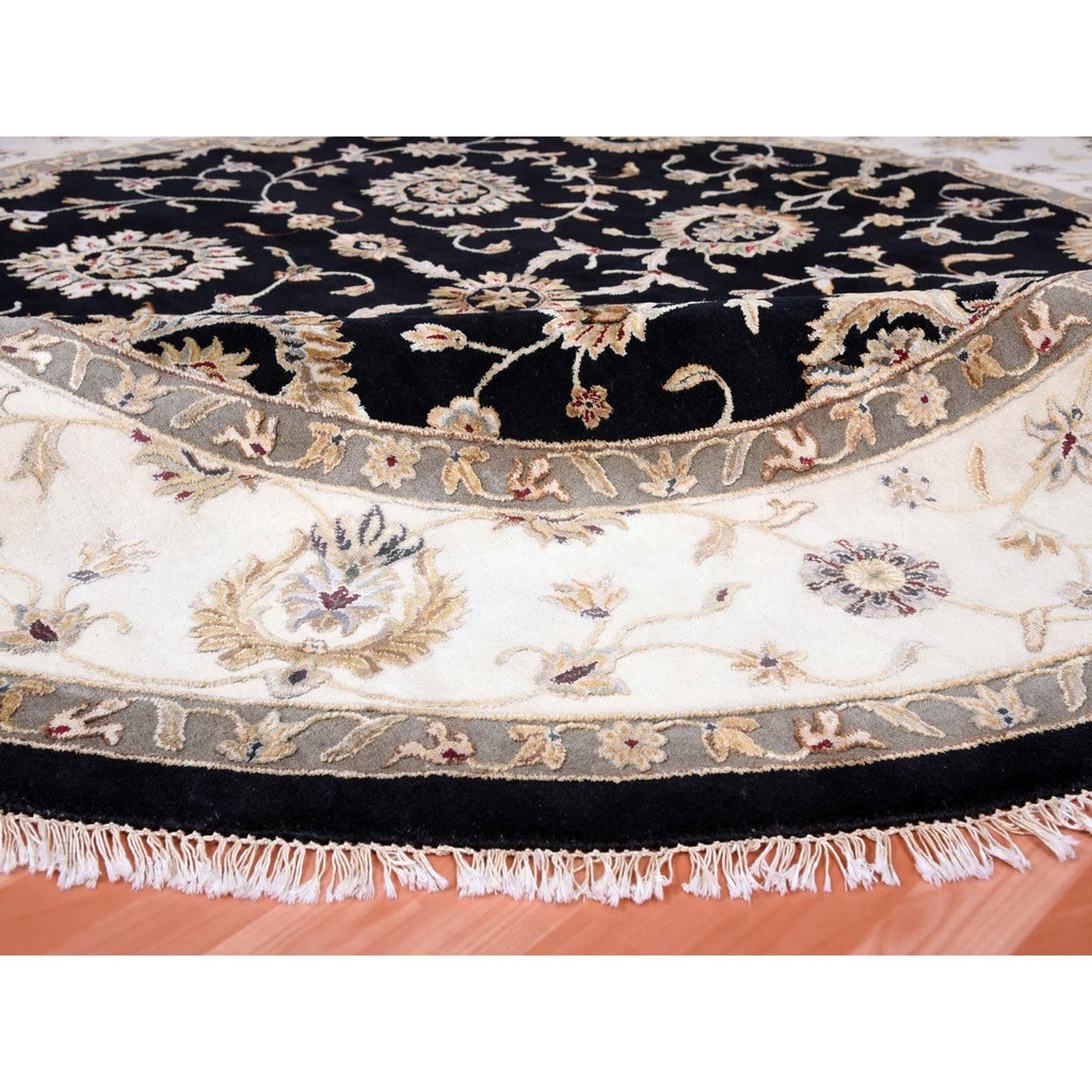 10'2"x10'2" Black, Rajasthan, All Over Design, Thick And Plush, Wool And Silk, Hand Knotted, Round, Oriental Rug FWR450402