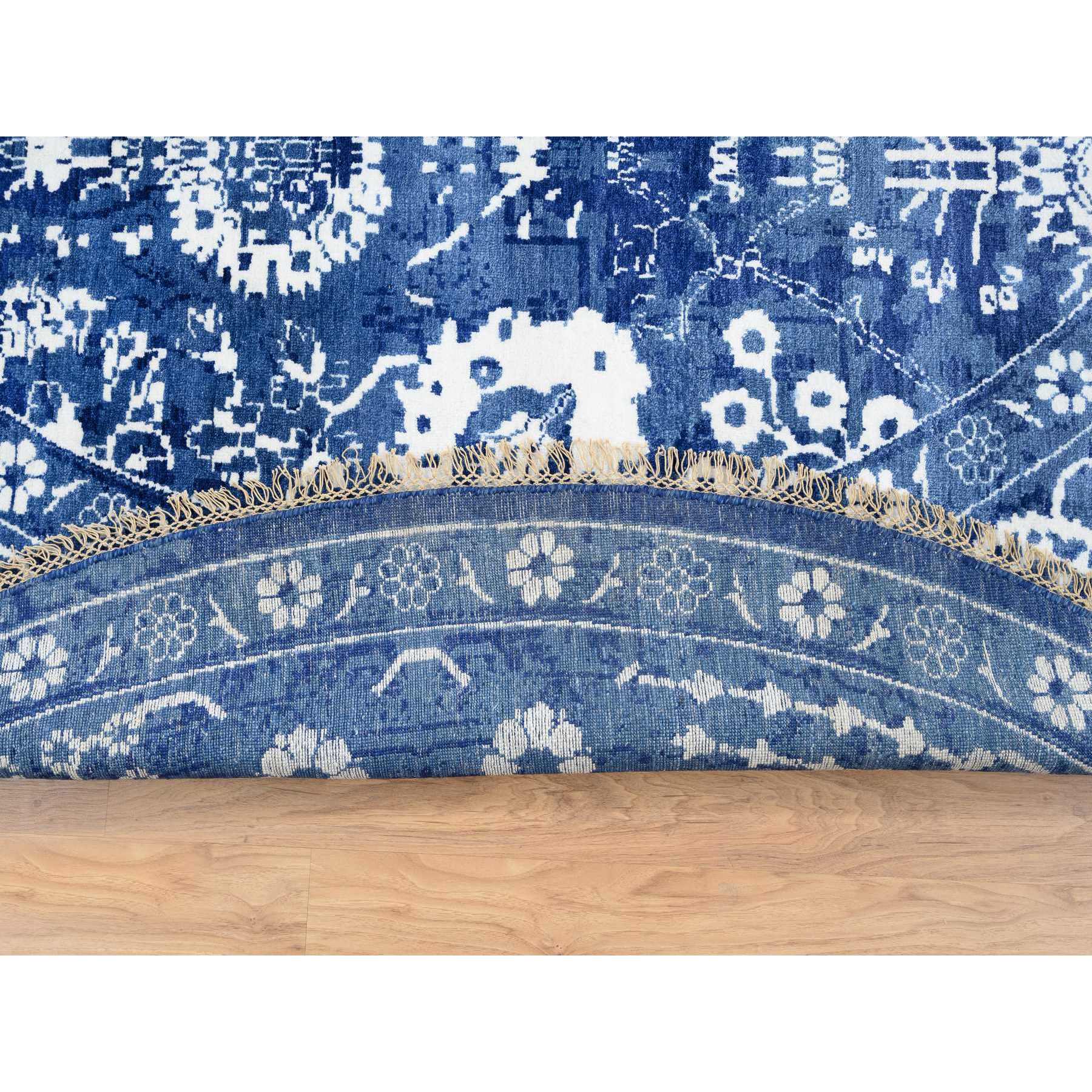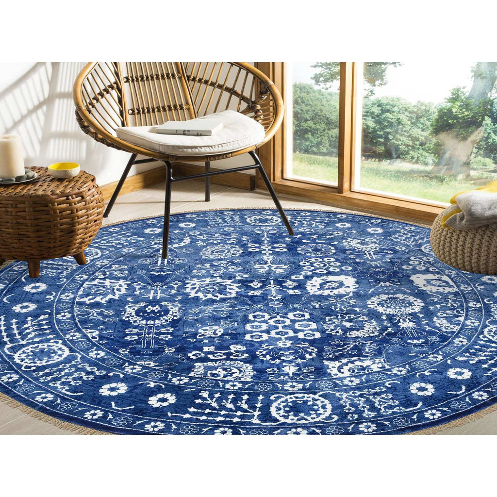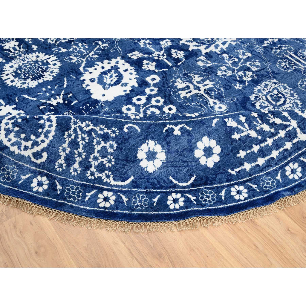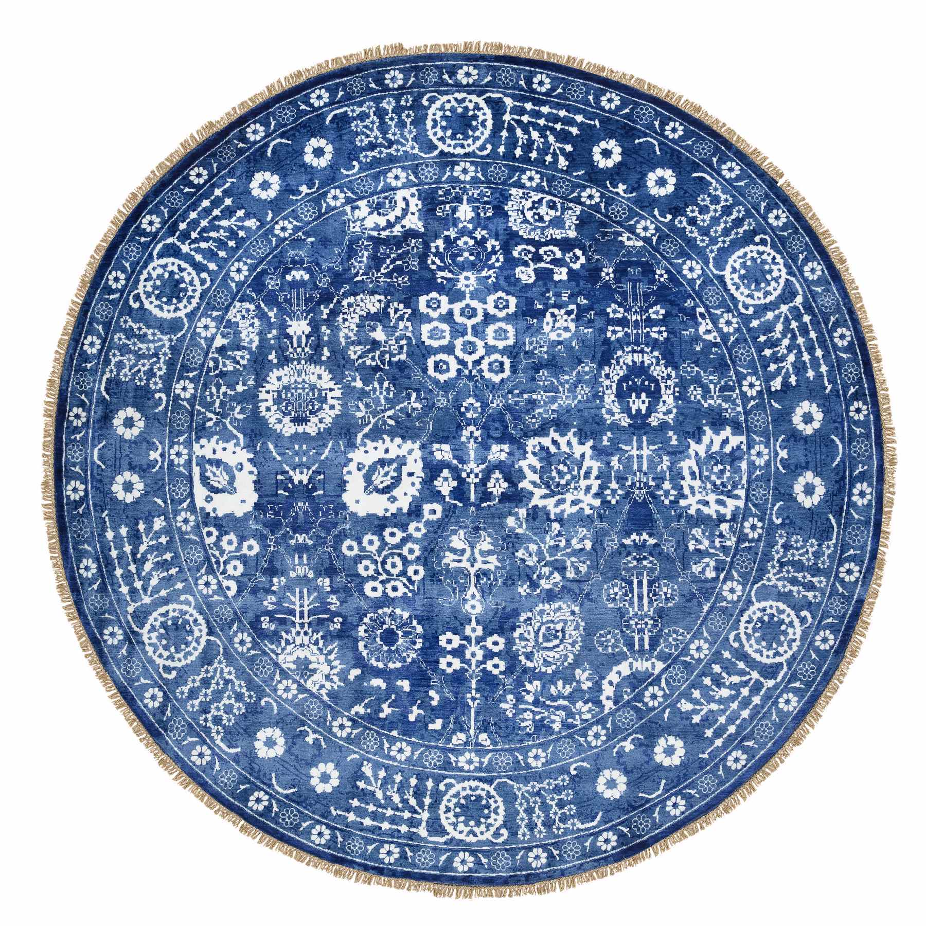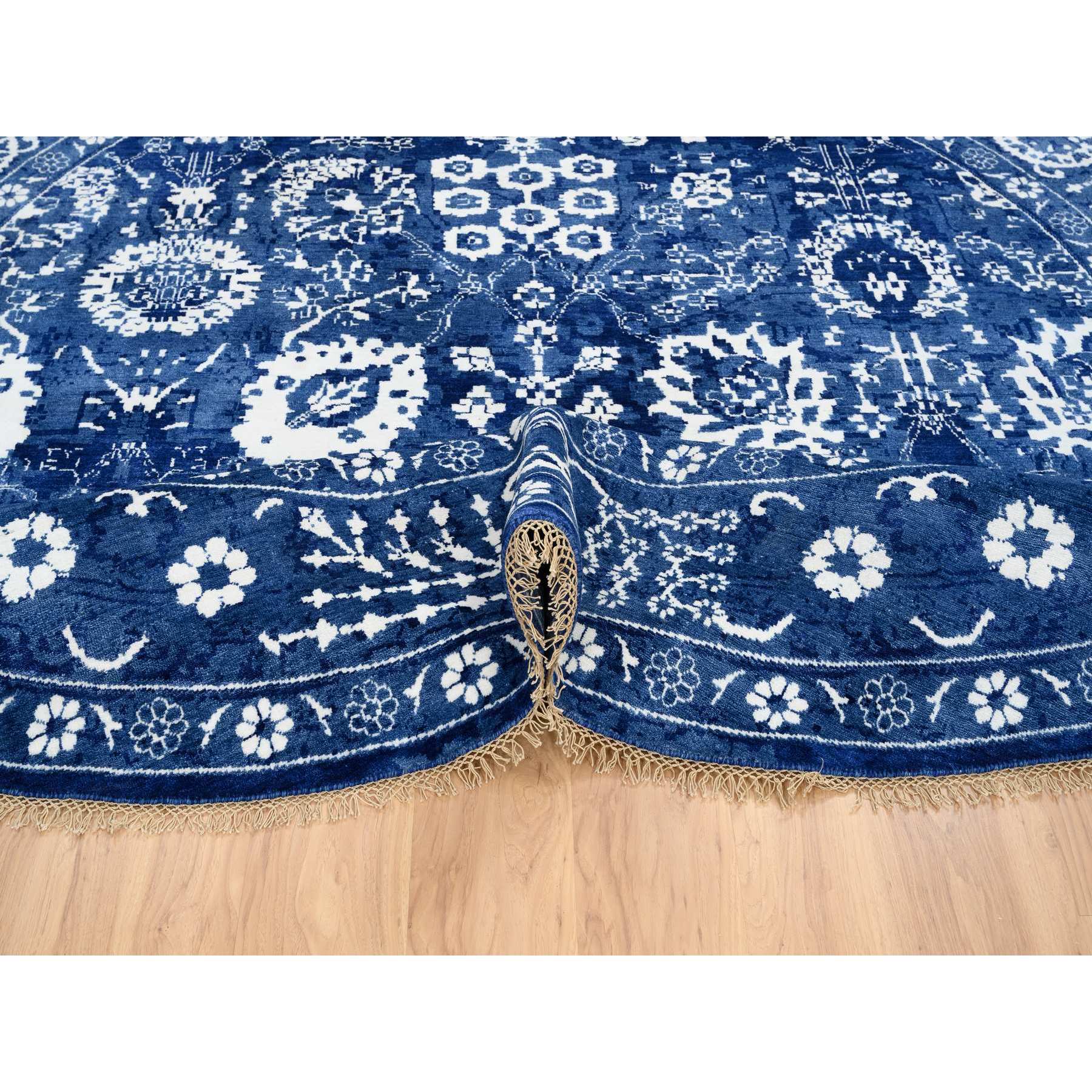 10'2"x10'2" Denim Blue, Tabriz With All Over Motifs Tone On Tone, Wool And Silk Hand Knotted, Round Oriental Rug FWR389082