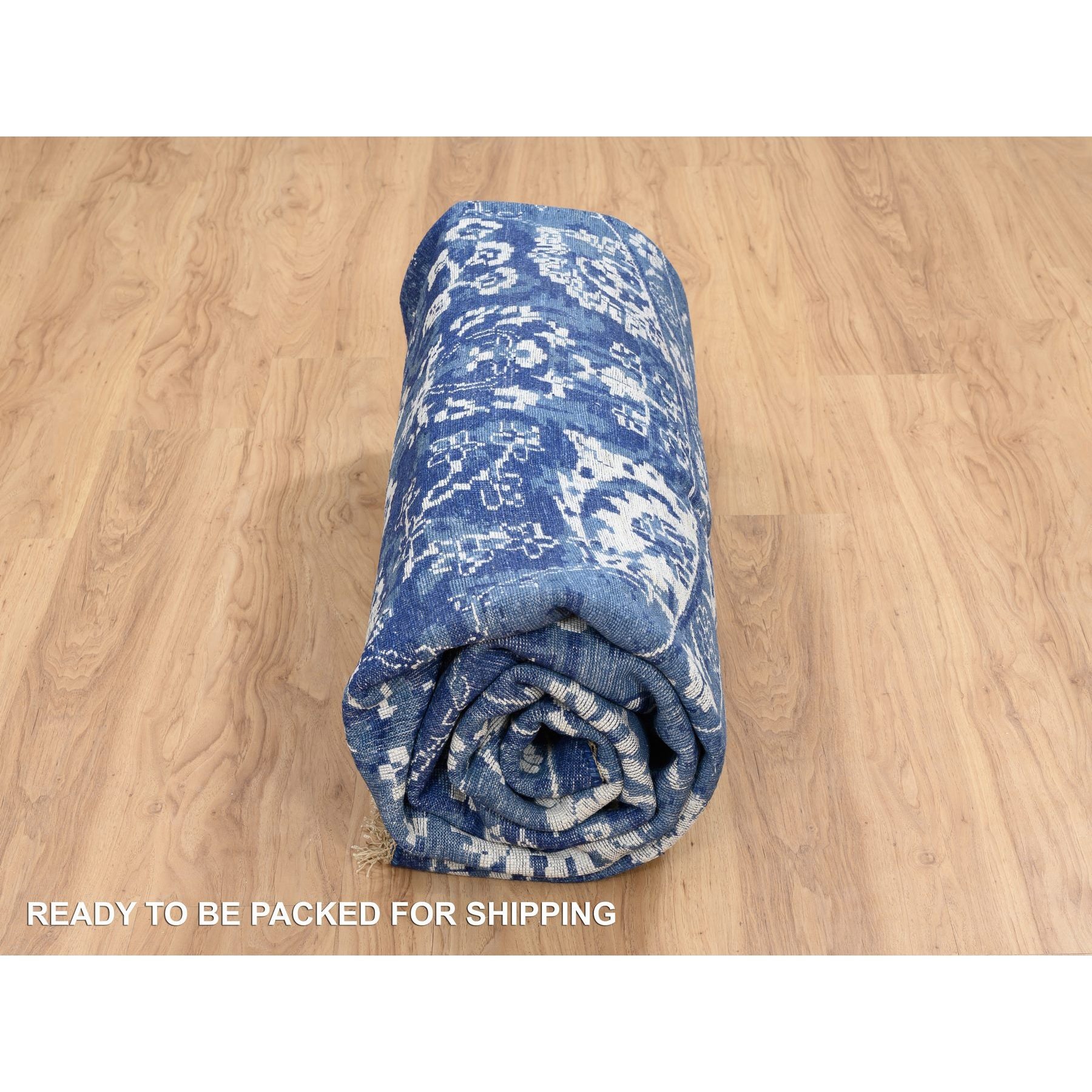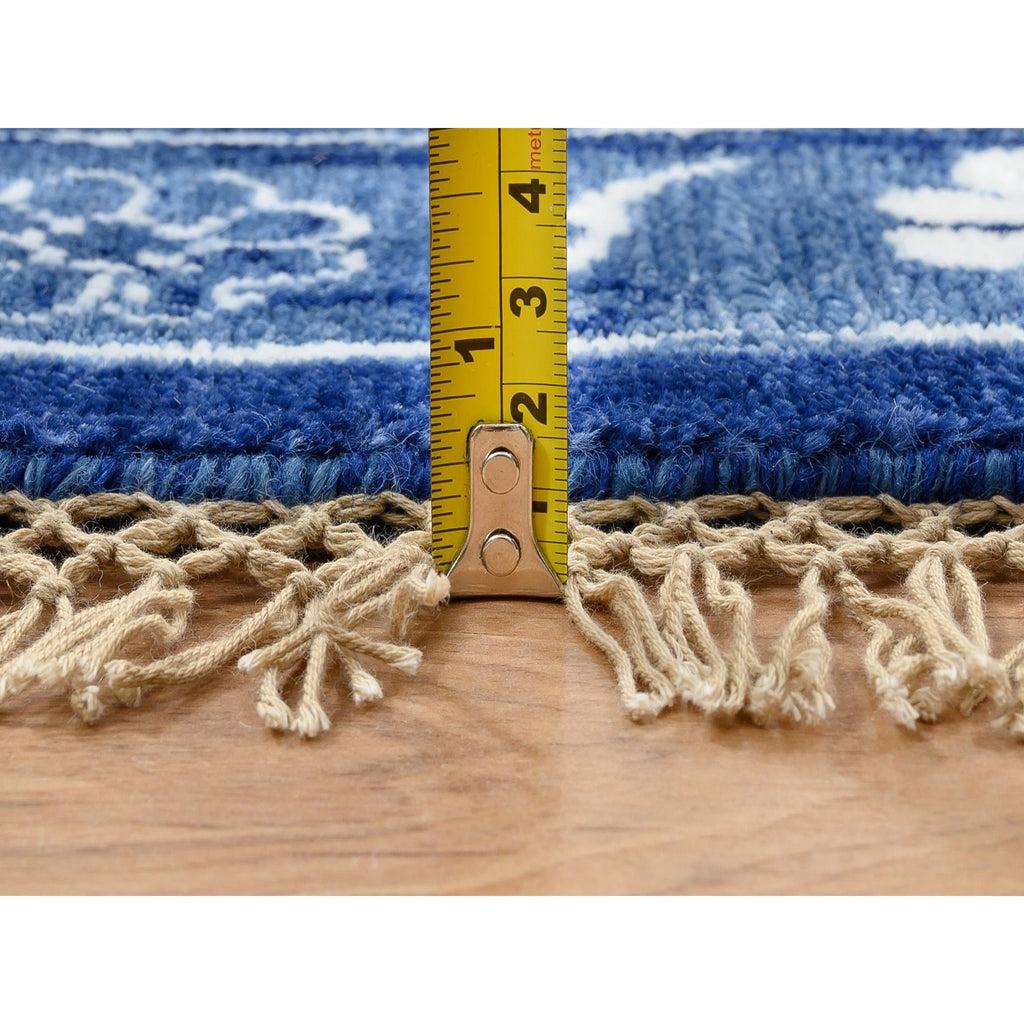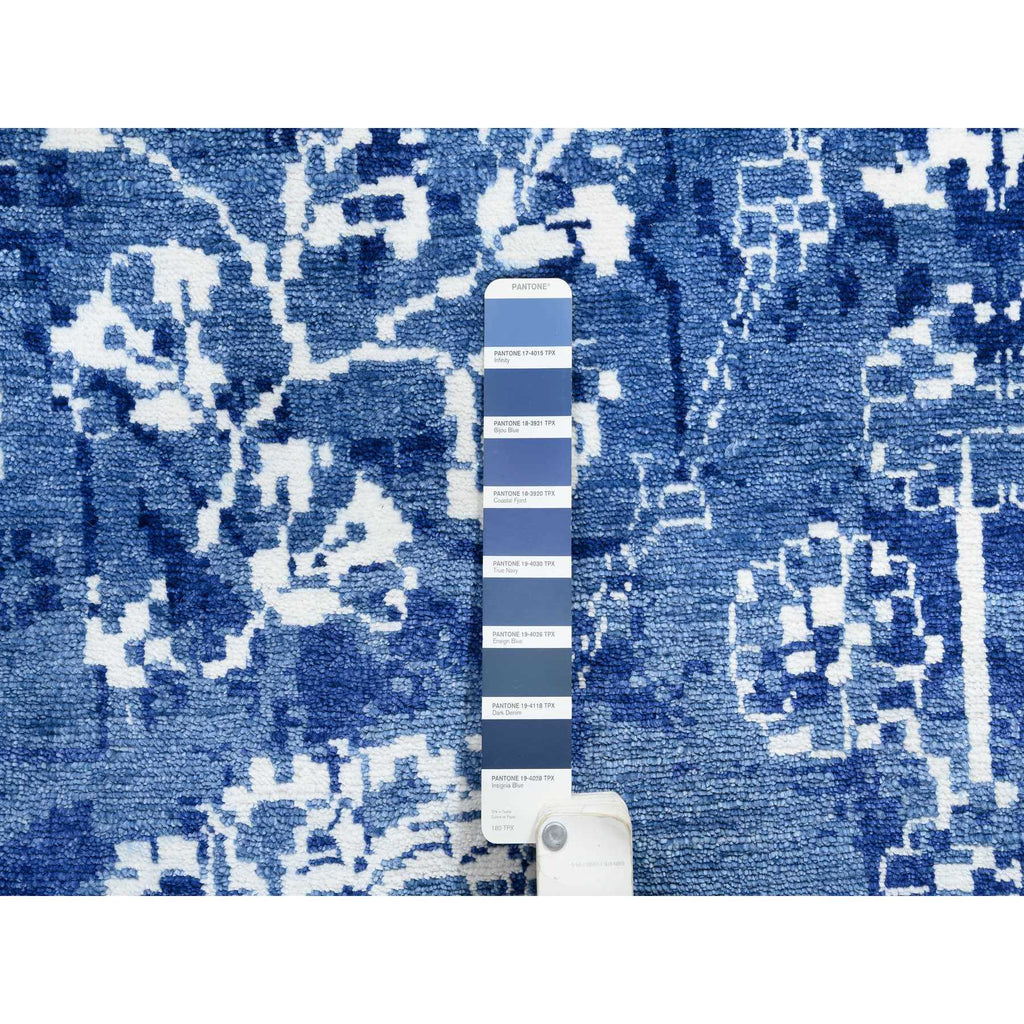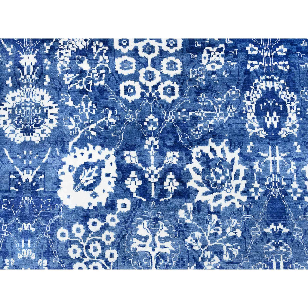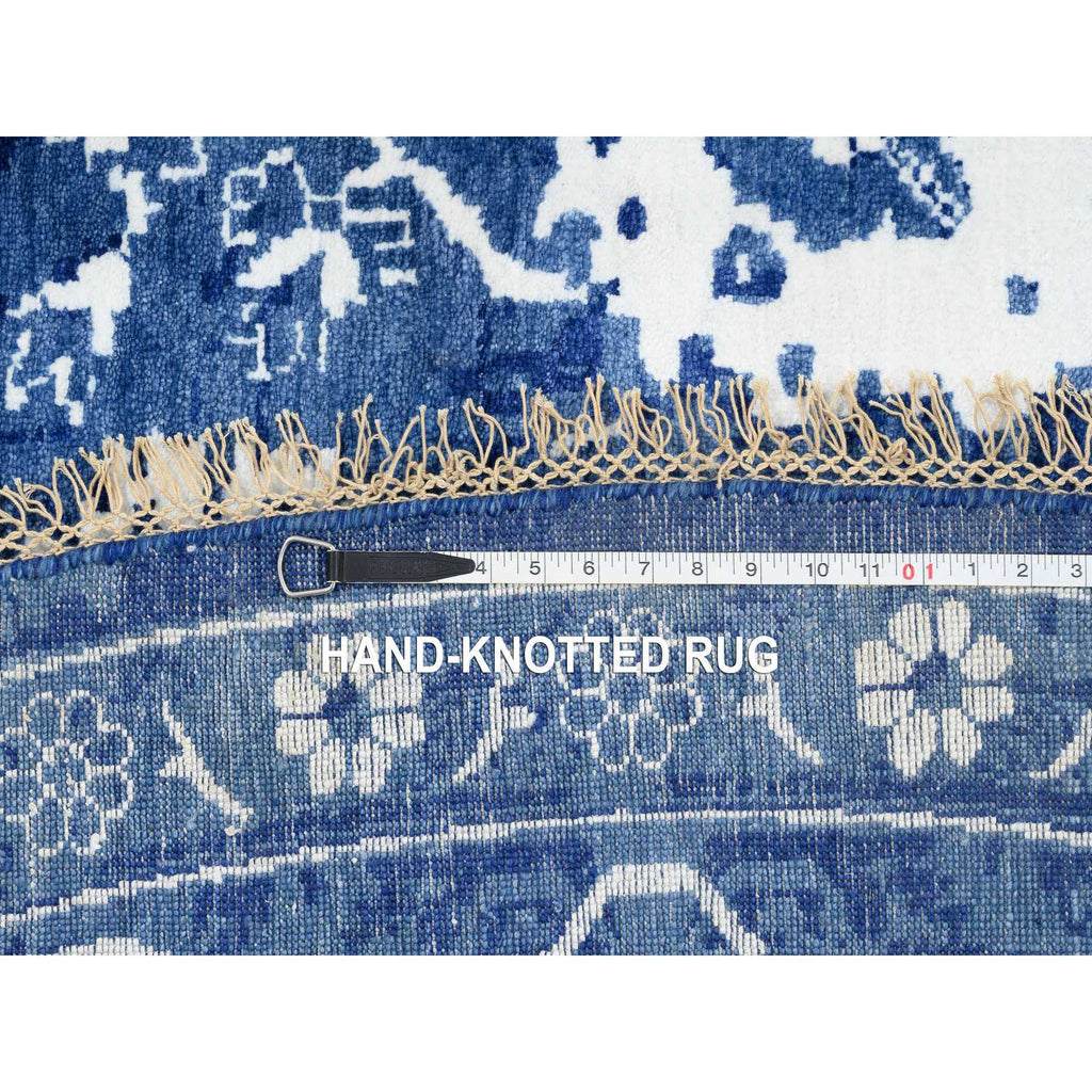 10'2"x10'2" Denim Blue, Tabriz With All Over Motifs Tone On Tone, Wool And Silk Hand Knotted, Round Oriental Rug FWR389082