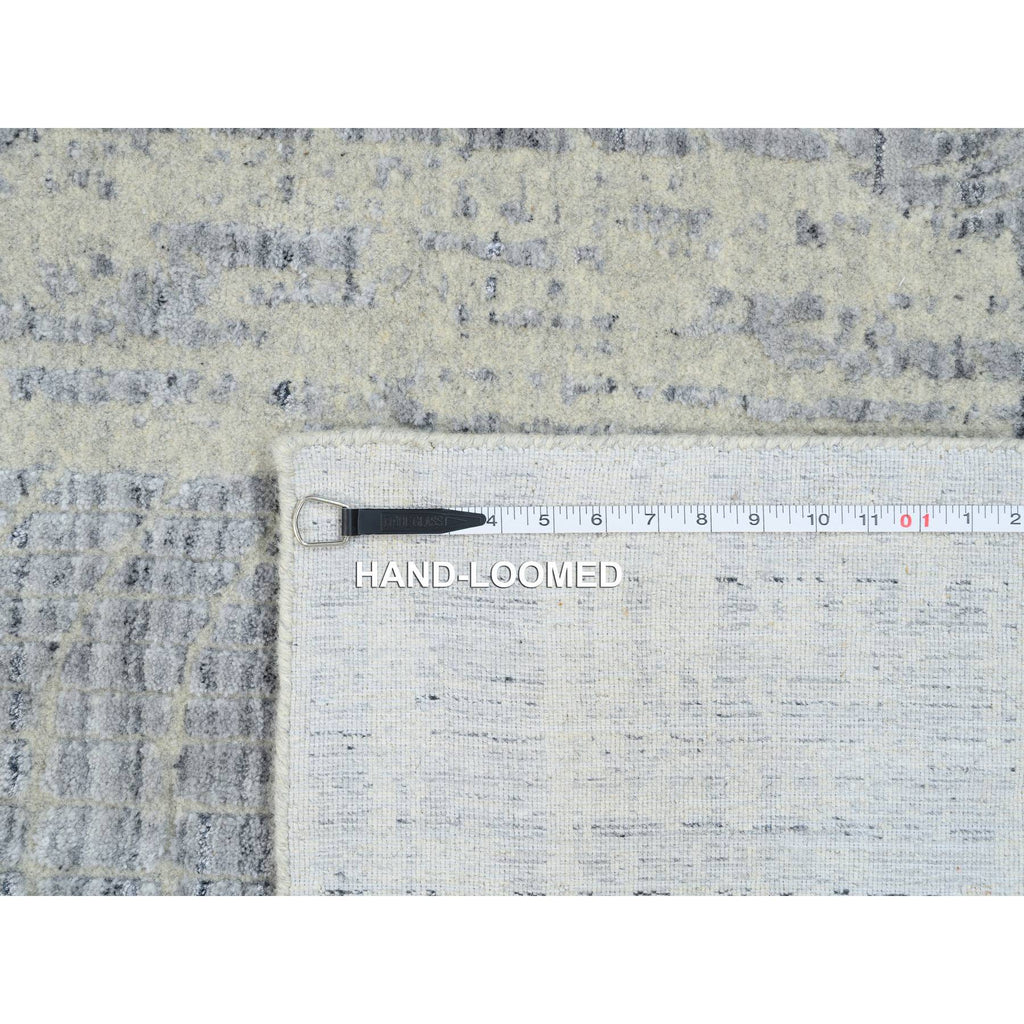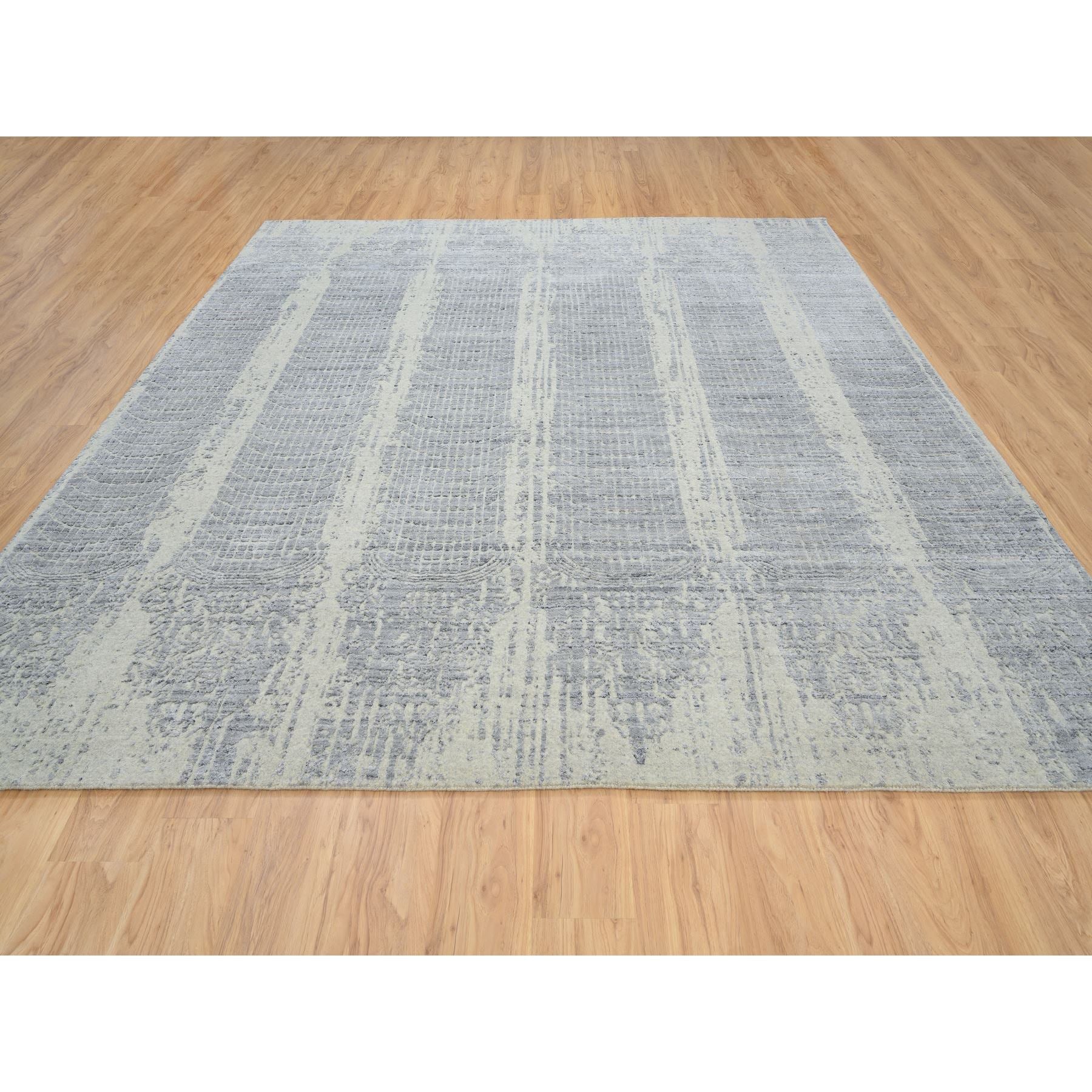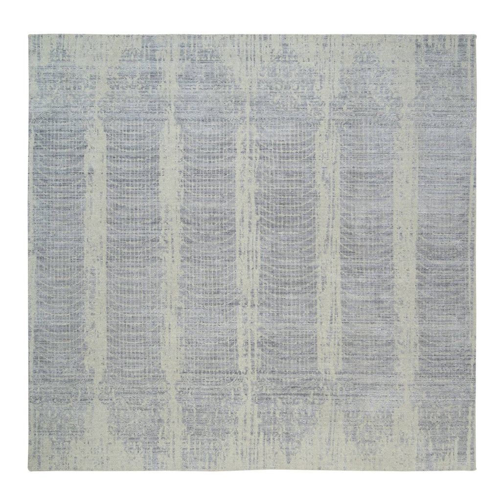 10'2"x10'2" Gray, Tone On Tone Transitional Erased Design, Jacquard Hand Loomed, Wool And Plant Based Silk, Oriental, Square Rug FWR382944