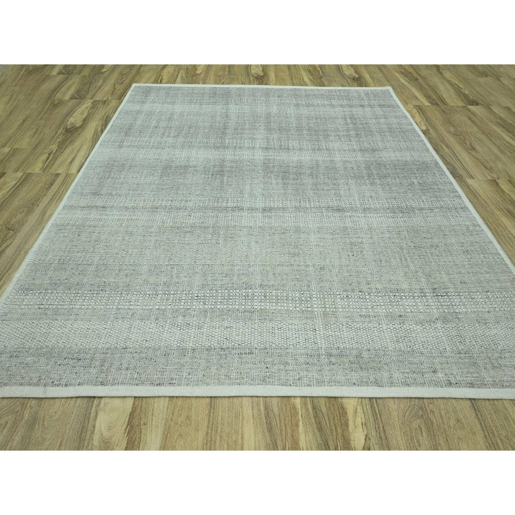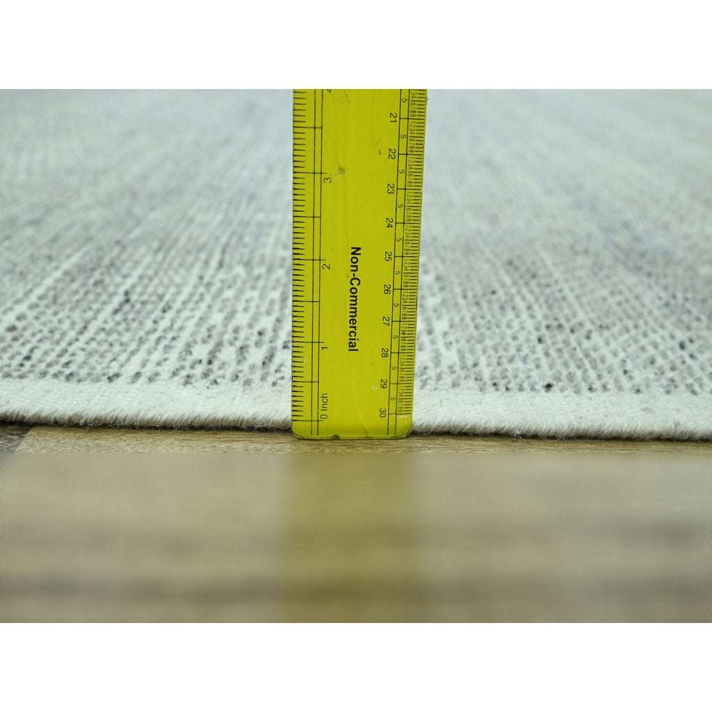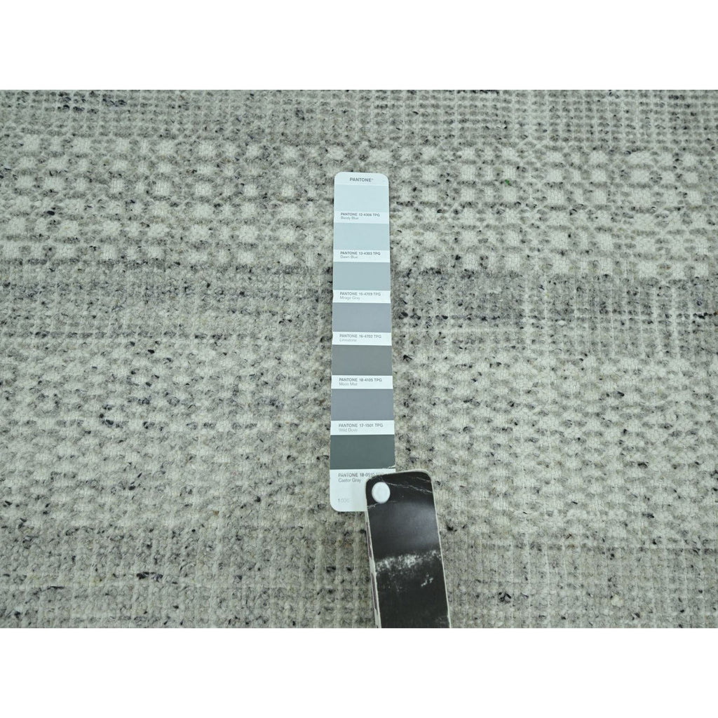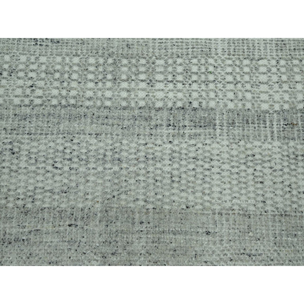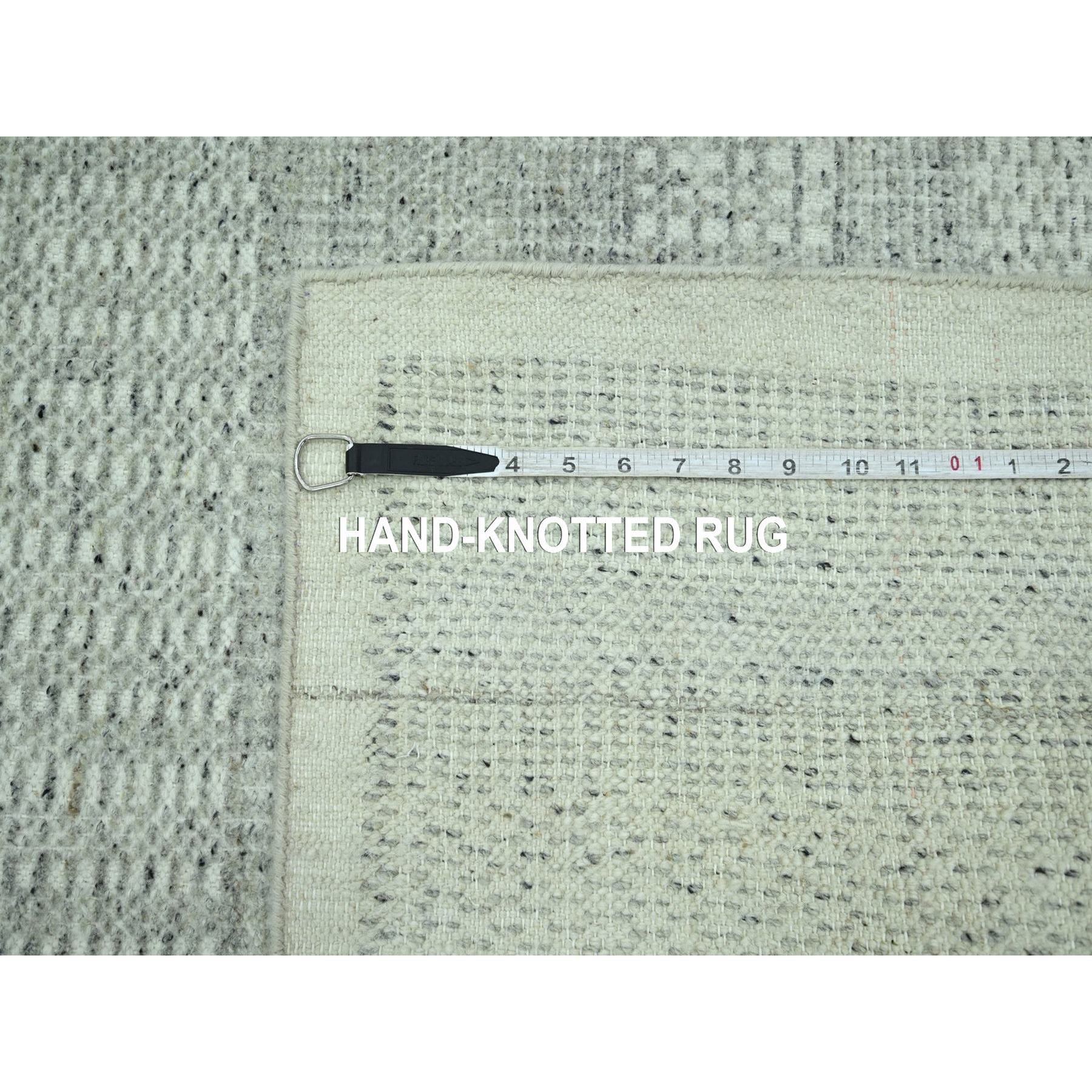 10'2"x10'2" Medium Gray, Distressed And Oxidized Grass Design With Exposed Warps, Pure Wool, Hand Knotted, Square, Oriental Rug FWR460140