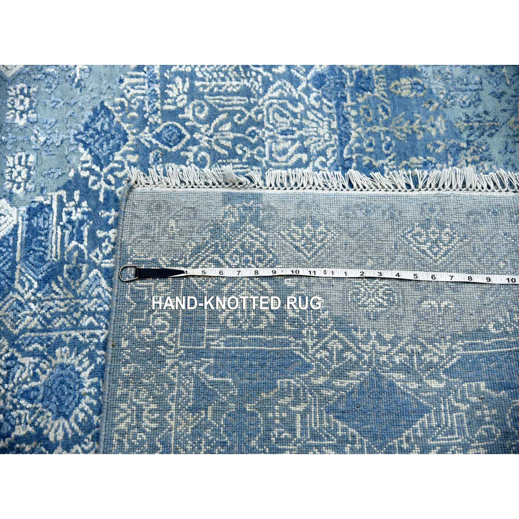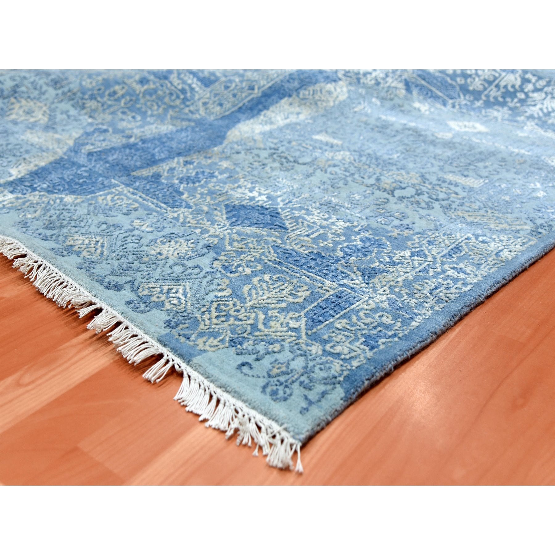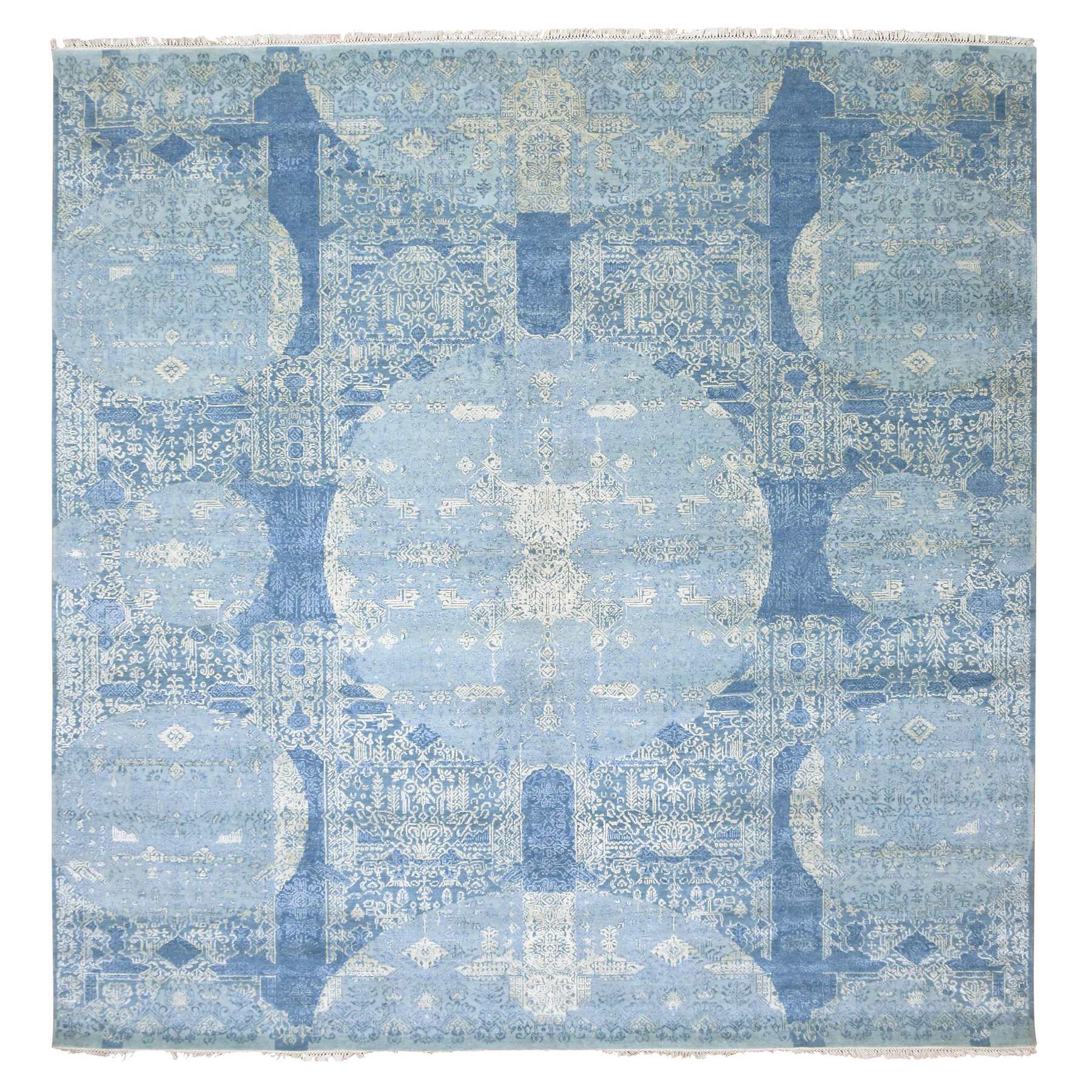 10'2"x10'2" Sky Blue, Hand Knotted Jewellery Design With Soft Colors, Wool And Pure Silk, Square Oriental Rug FWR451746