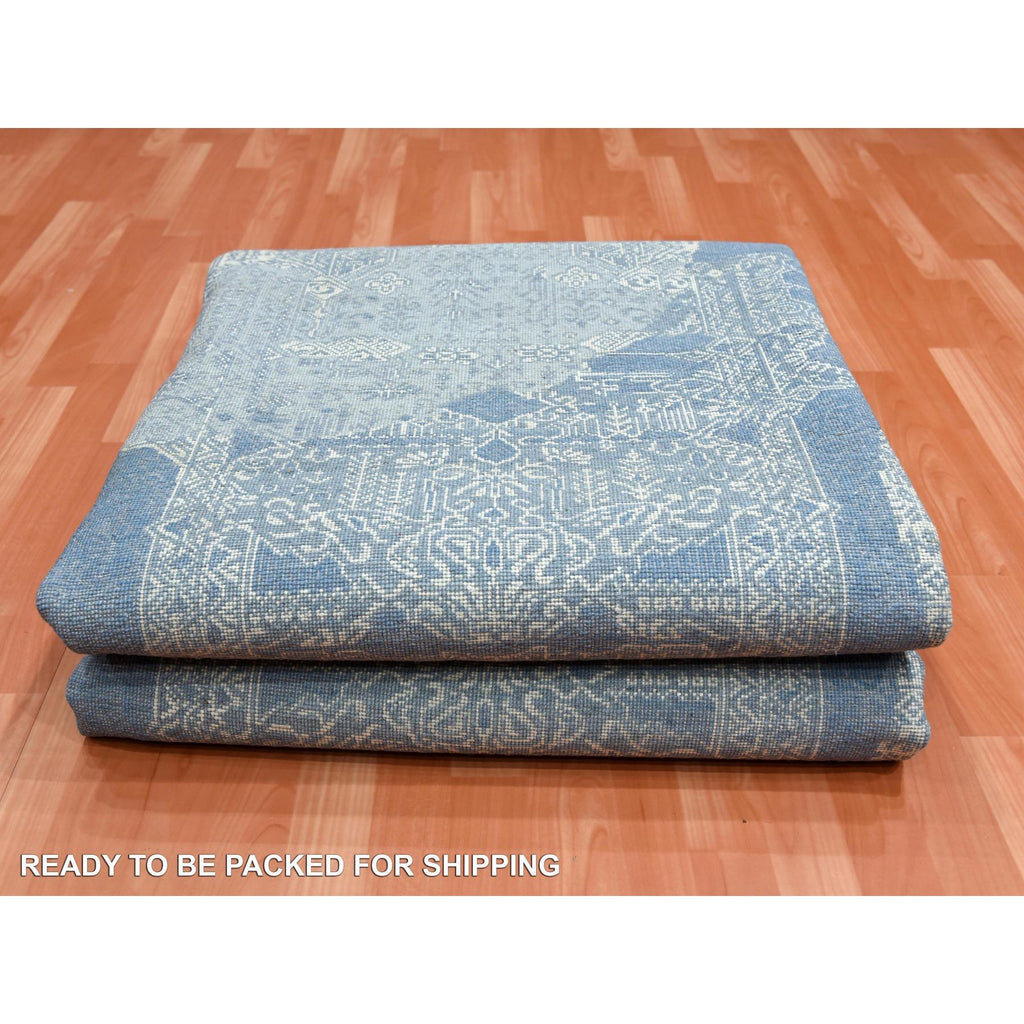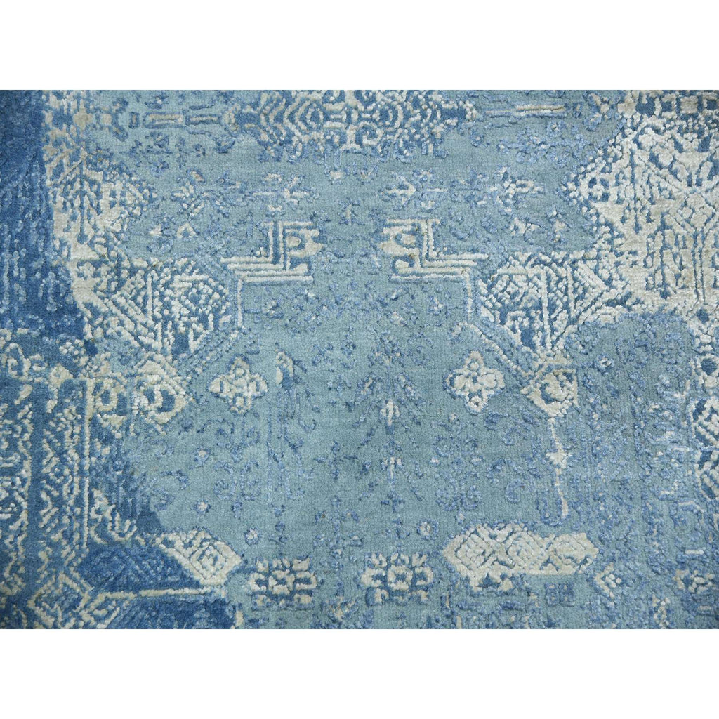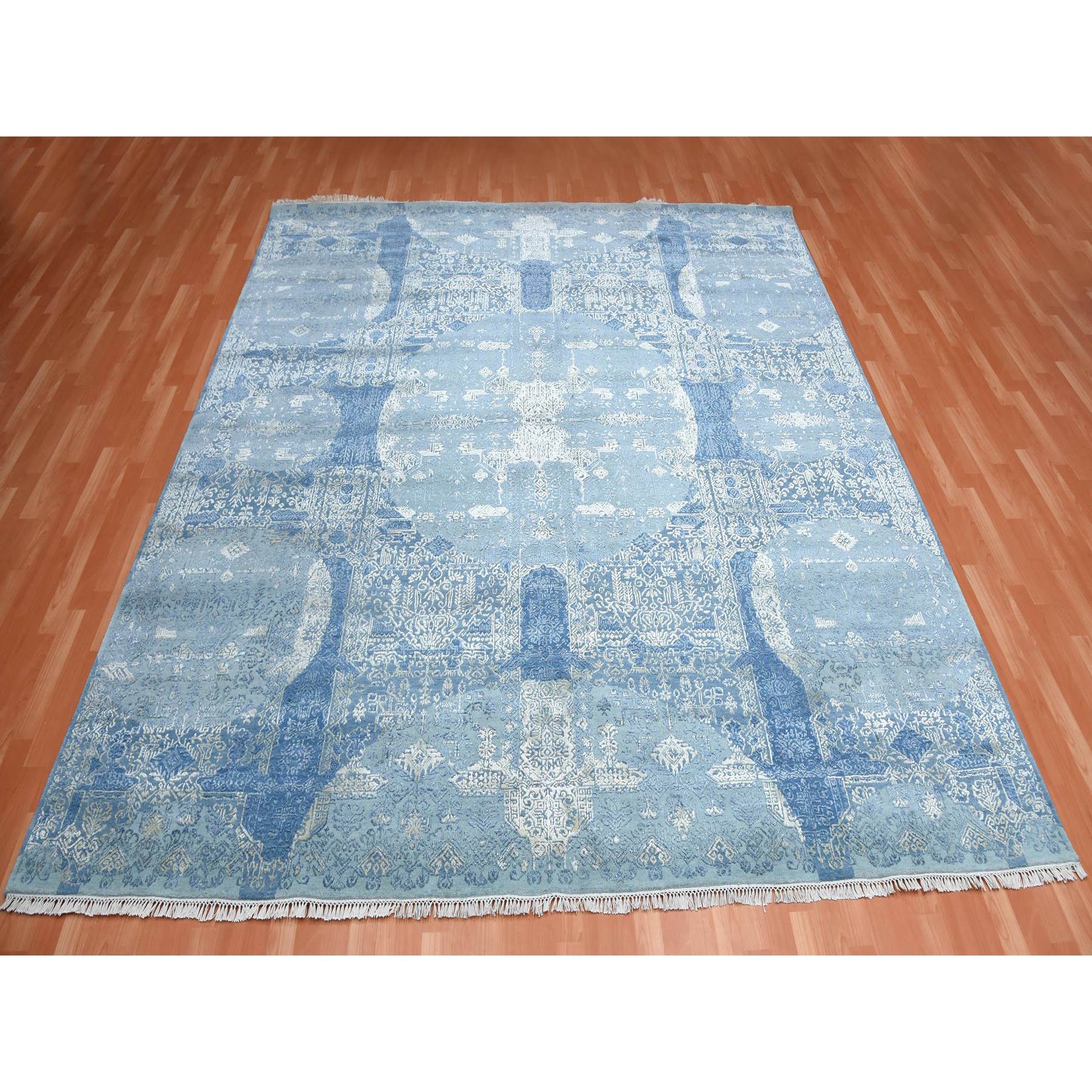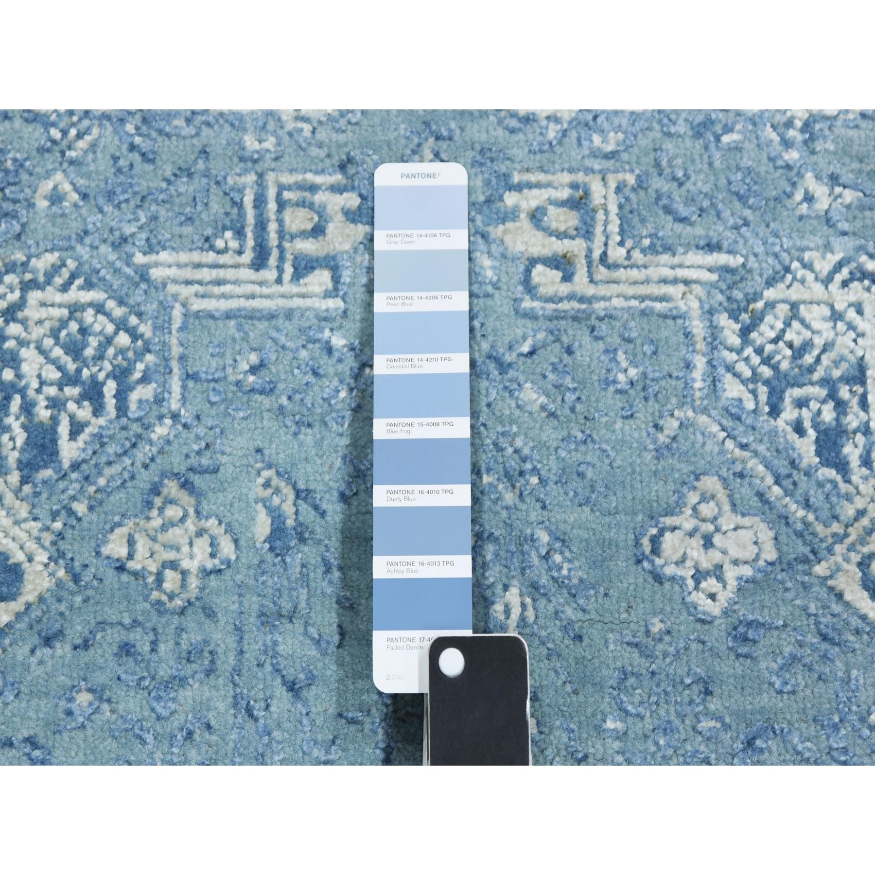 10'2"x10'2" Sky Blue, Hand Knotted Jewellery Design With Soft Colors, Wool And Pure Silk, Square Oriental Rug FWR451746