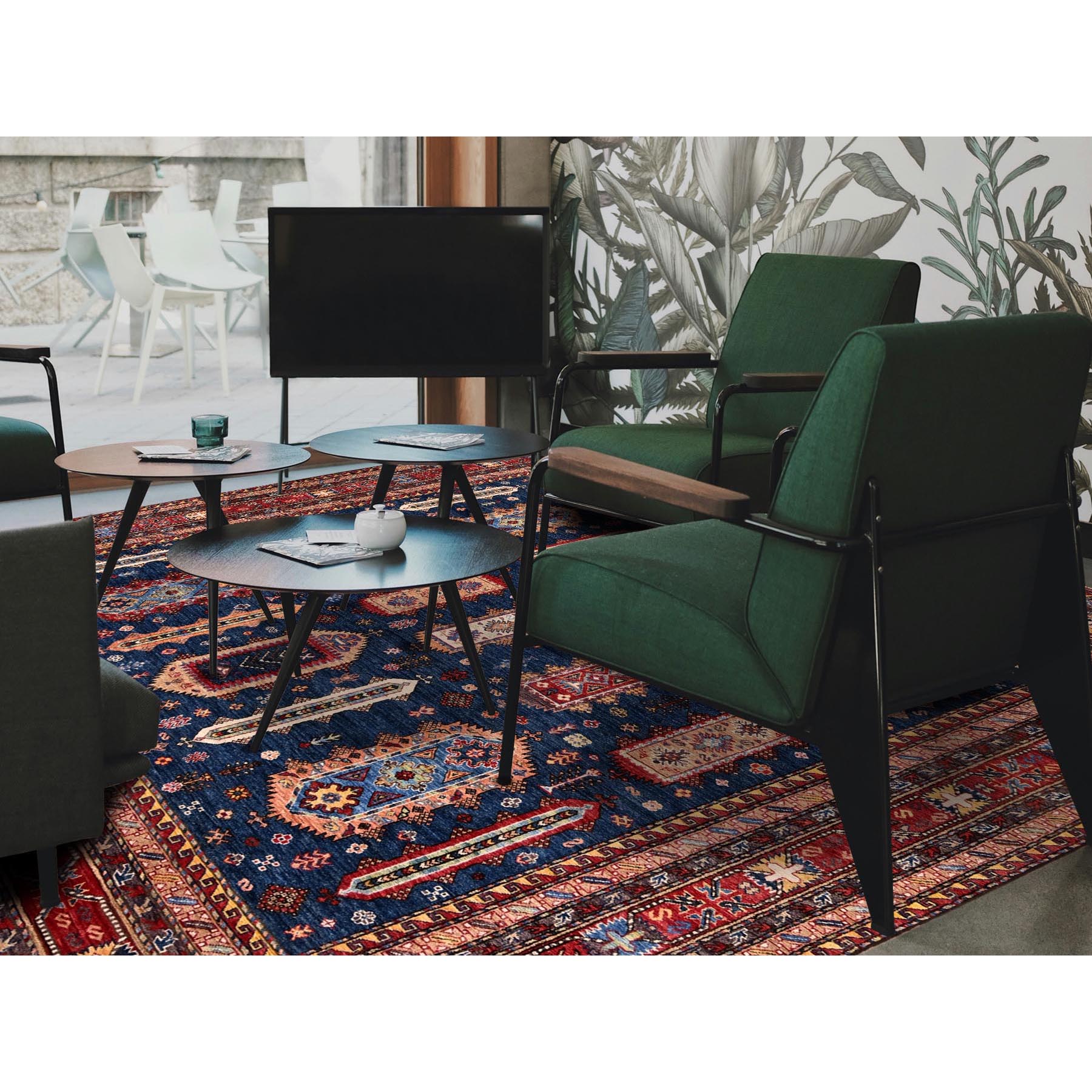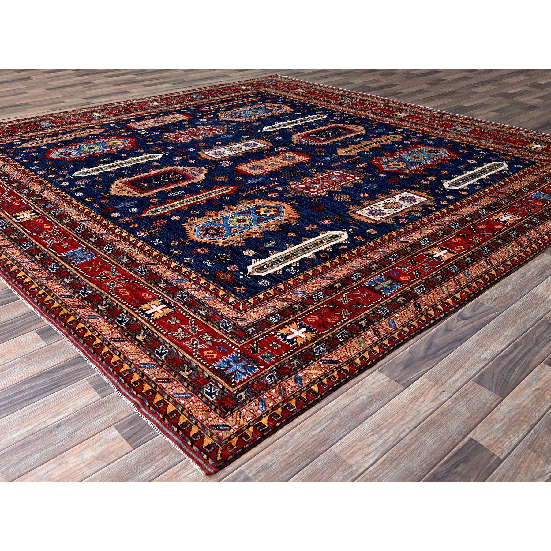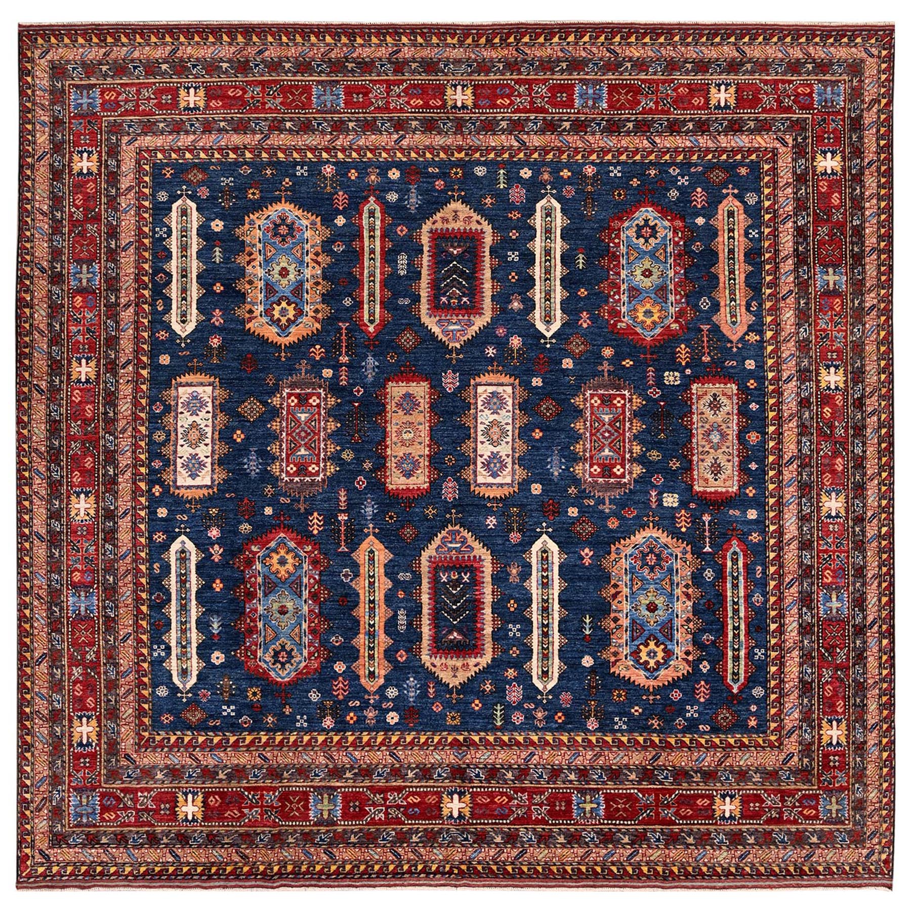 10'2"x10'2" Yale Blue, Afghan Ersari With Turkish Knot, Caucasian Design Revival, Vegetable Dyes, Hand Knotted, Soft And Vibrant Wool, Square, Oriental Rug FWR3396