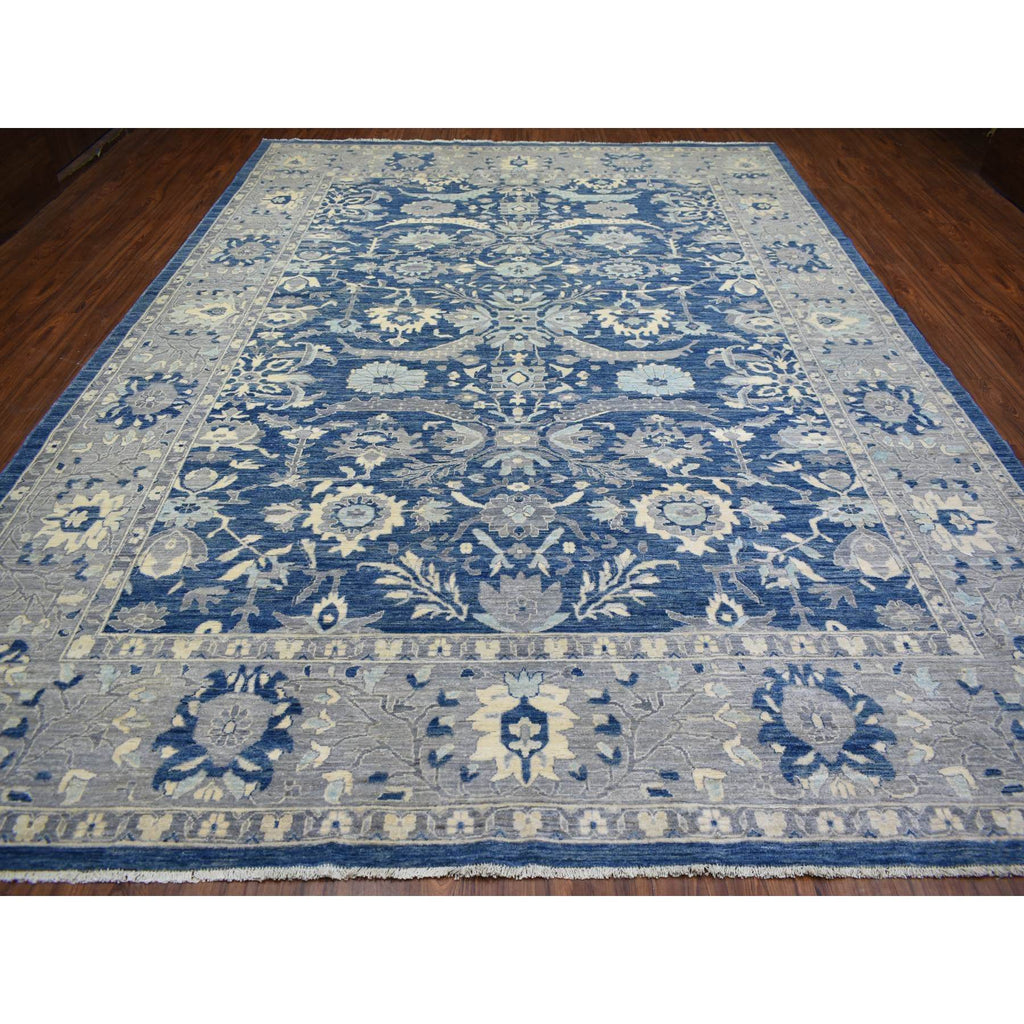 10'2"x13'6" Denim Blue, Afghan Wool Hand Knotted, Fine Peshawar With All Over Heriz Design Densely Woven, Oriental Rug FWR431676