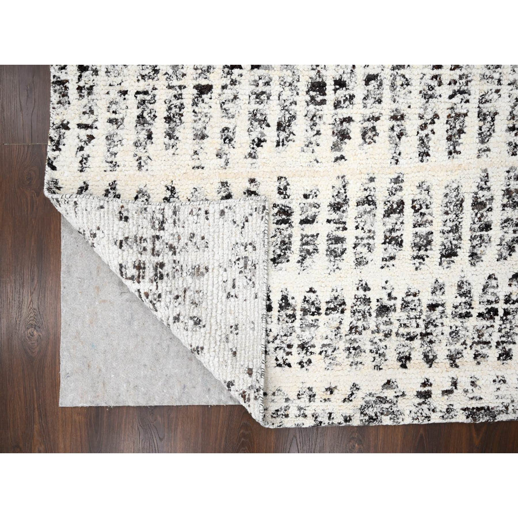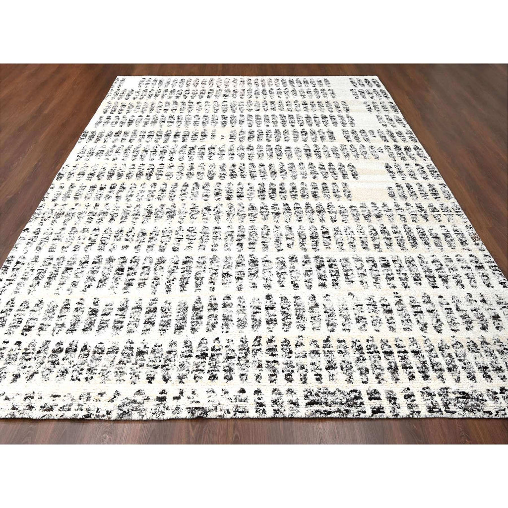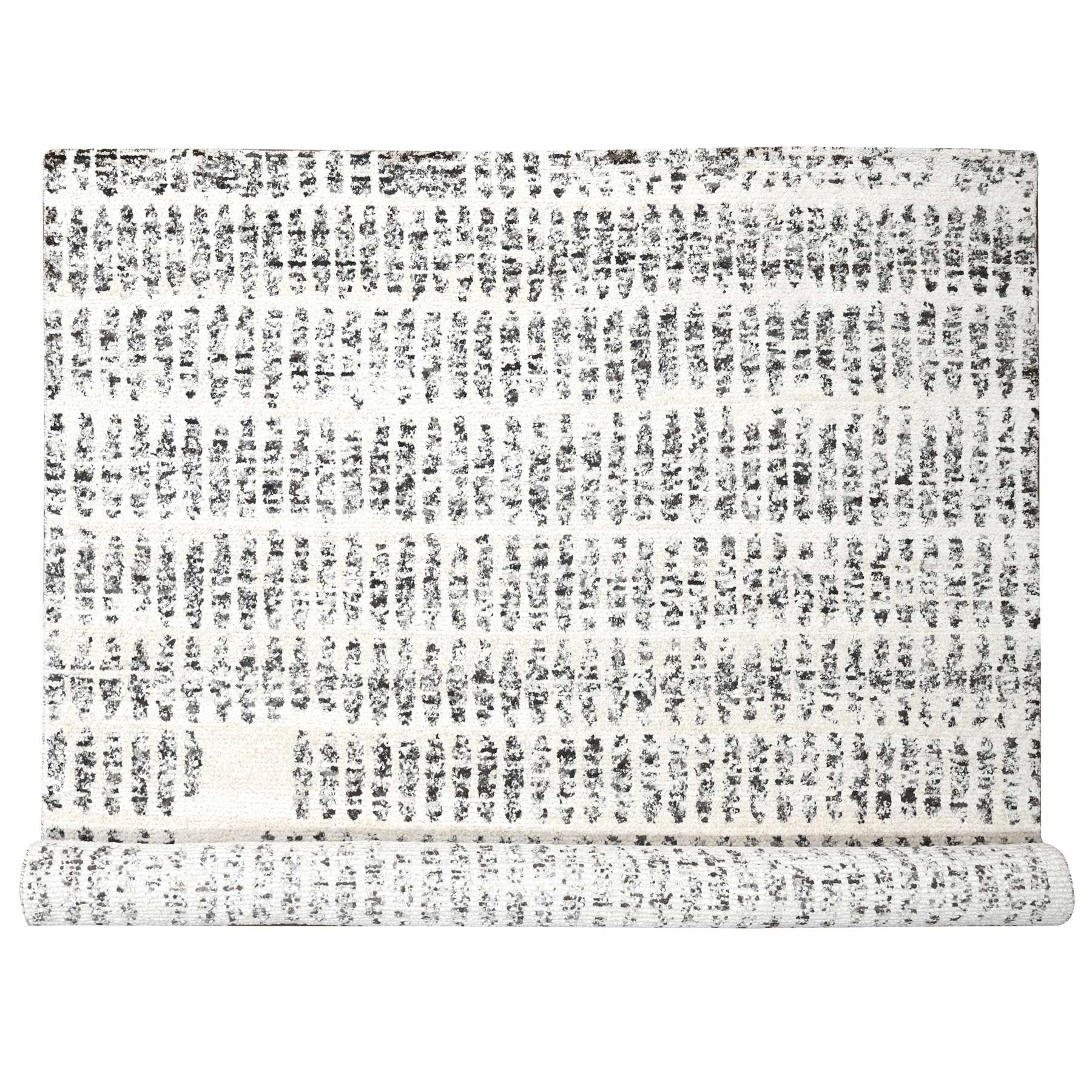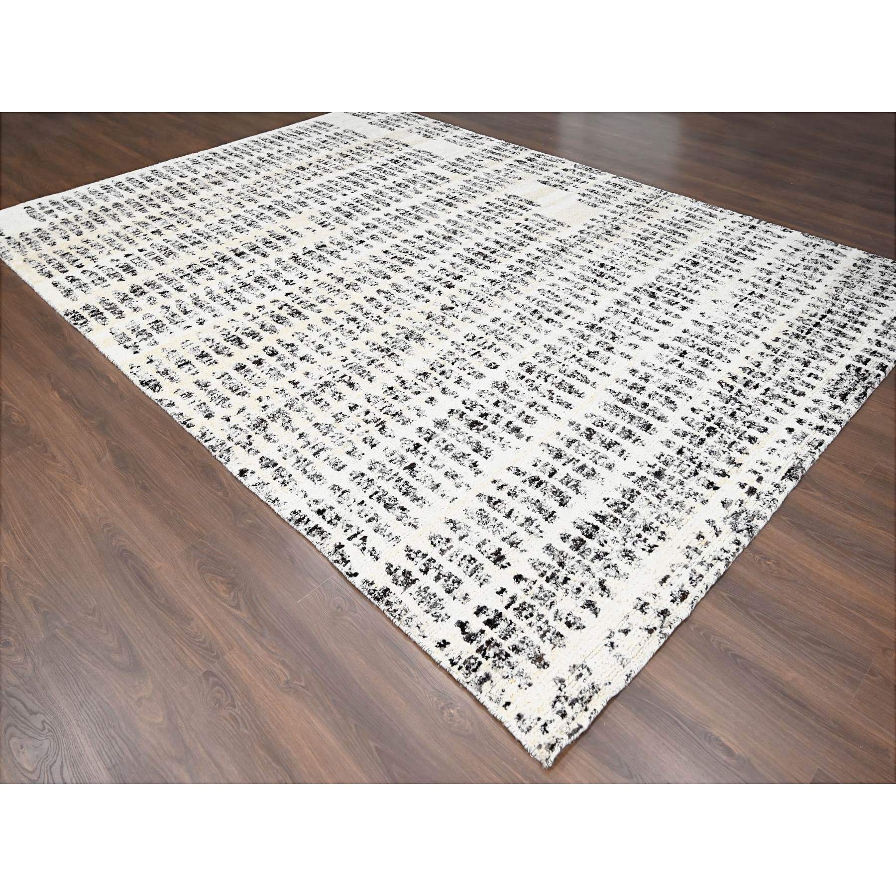 10'2"x13'9" Vivid White With Smoky Black, Organic Wool, Vegetable Dyes, Tone On Tone, Soft Pile, Modern Design, Hand Knotted, Oriental Rug FWR507222