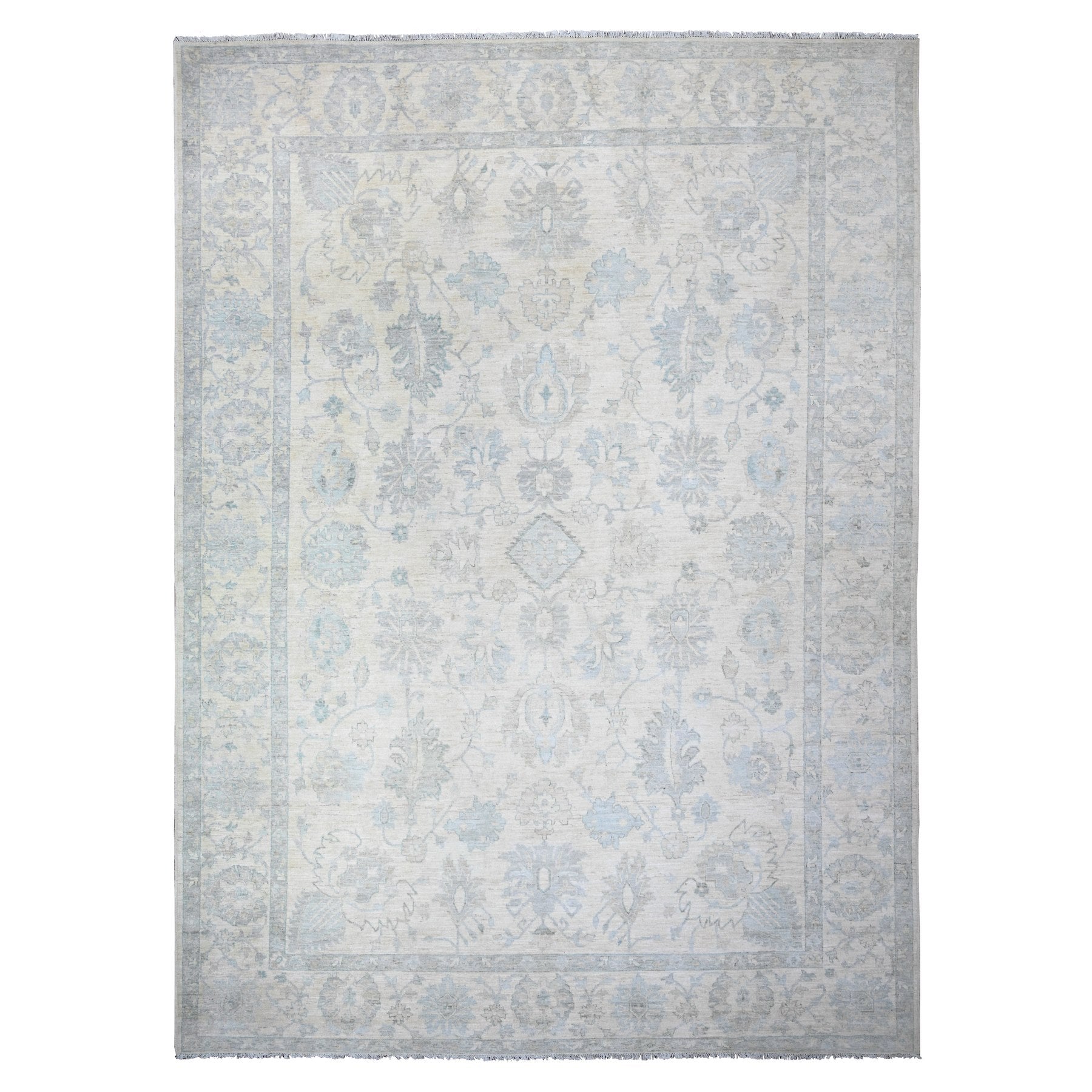 10'2"x14'1" Frost White, Organic Wool, White Wash Peshawar With Natural Colors, Hand Knotted, Oriental Rug FWR528510