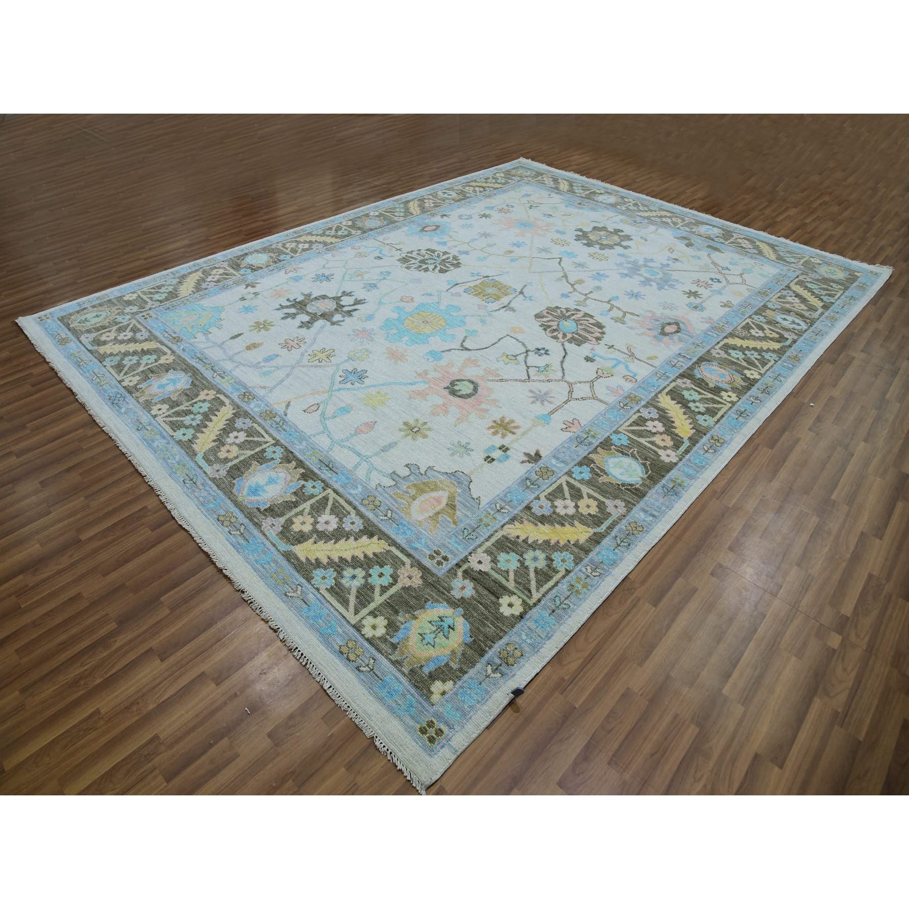 10'2"x14'1" Lace Ivory, Oushak Weave And Design, All Over Leaf Pattern, Pure Wool, Hand Knotted, Lush Pile, Oriental Rug FWR479628