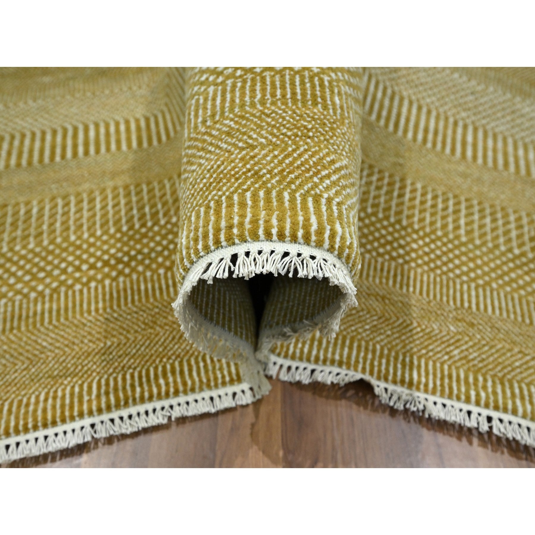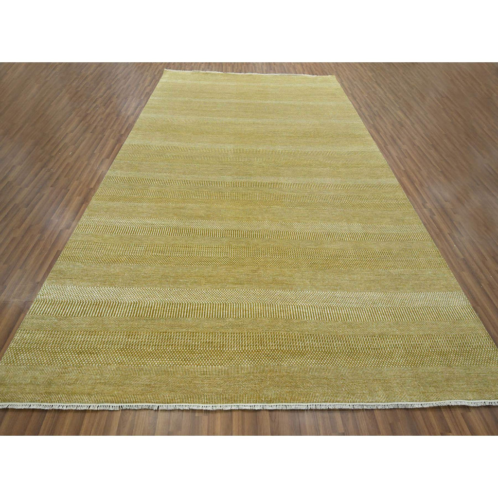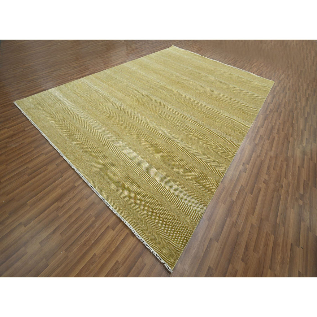10'2"x14'2" Harvest Gold, Modern Grass Design, Hand Knotted, Borderless, Denser Weave, Wool And Silk, Tone On Tone, Lush And Plush, Oriental Rug FWR457968