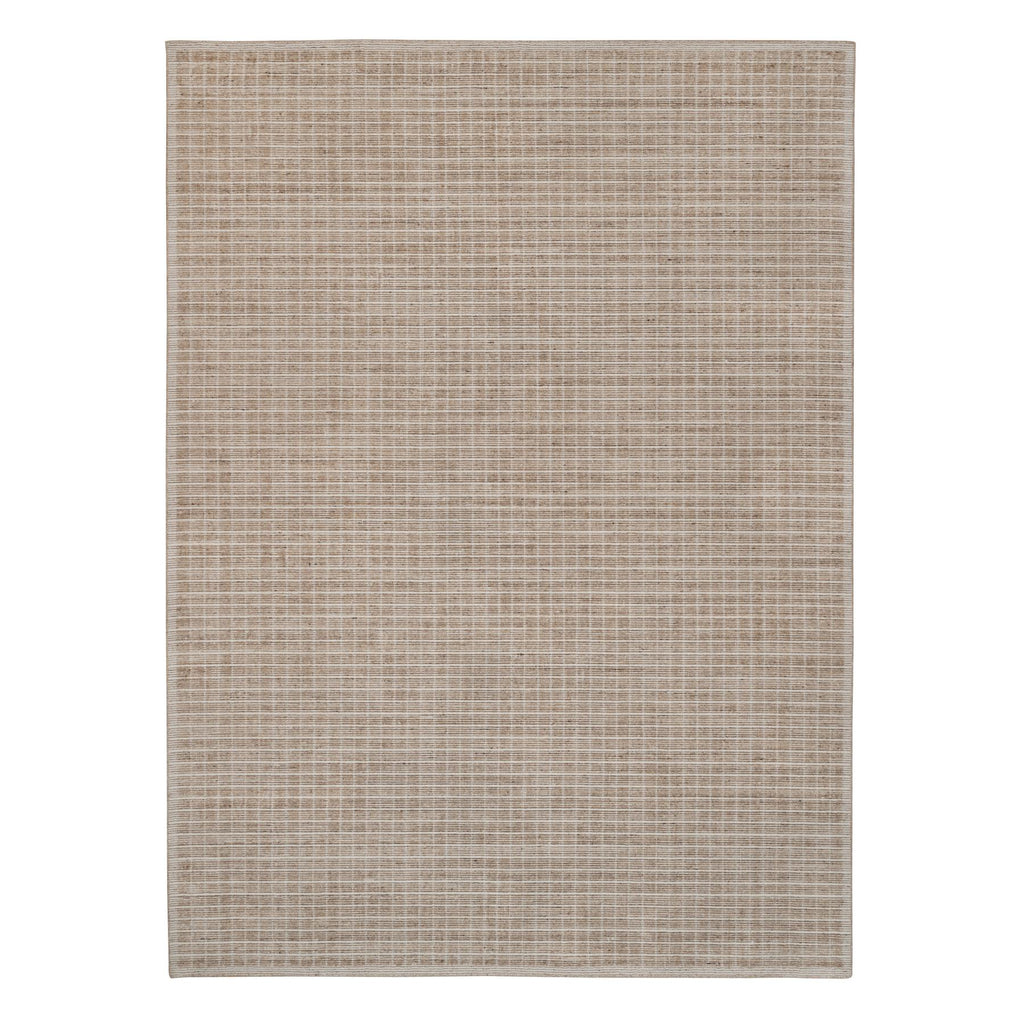 10'2"x14' Sand Brown, Modern Plain Decor Box Design, Soft To Touch, Loomed Knotted, 100% Wool, Oriental Rug FWR550188