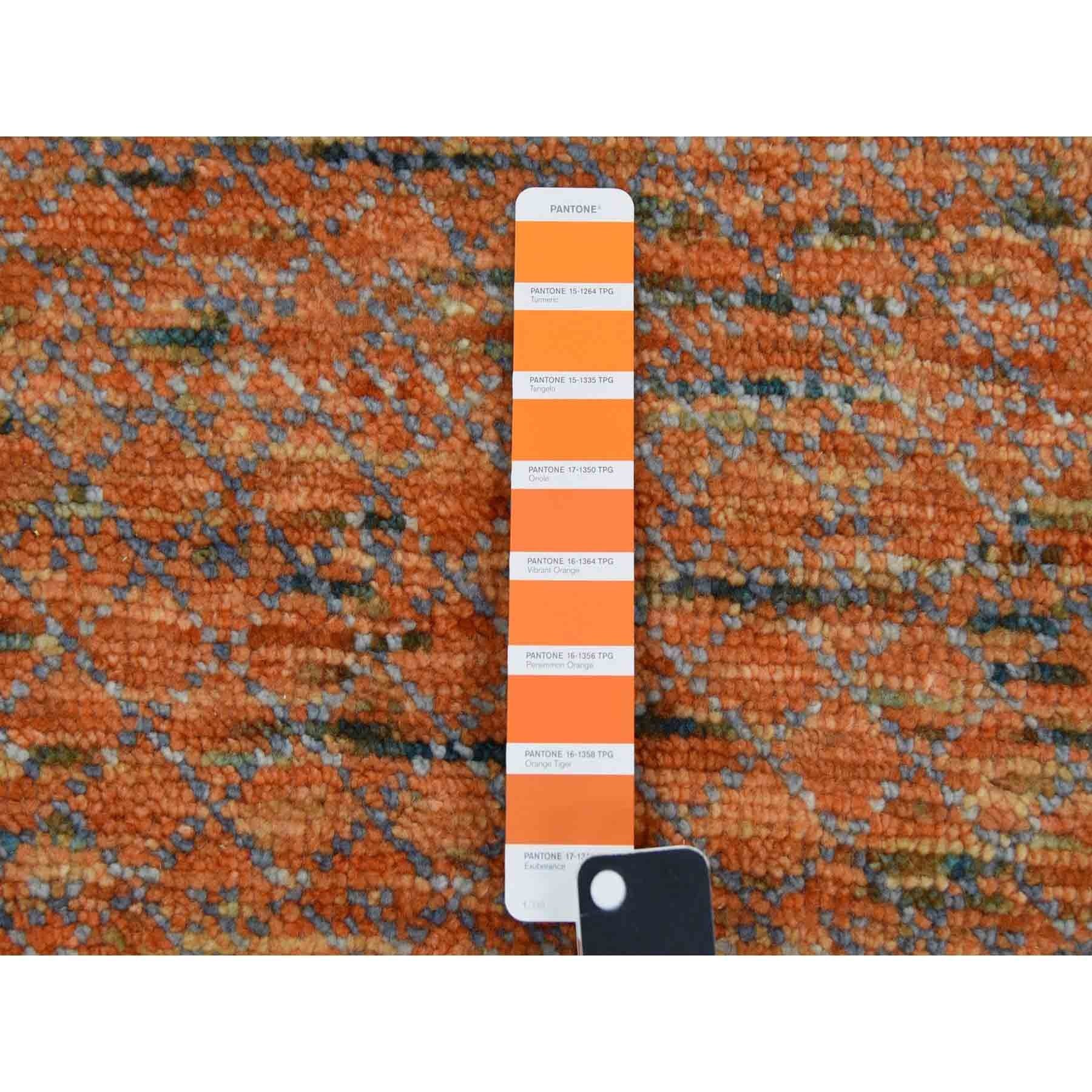 10'3"x14' Orange, Modern Chiaroscuro Collection Hand Knotted Thick And Plush, Pure Wool Oriental Rug FWR474120
