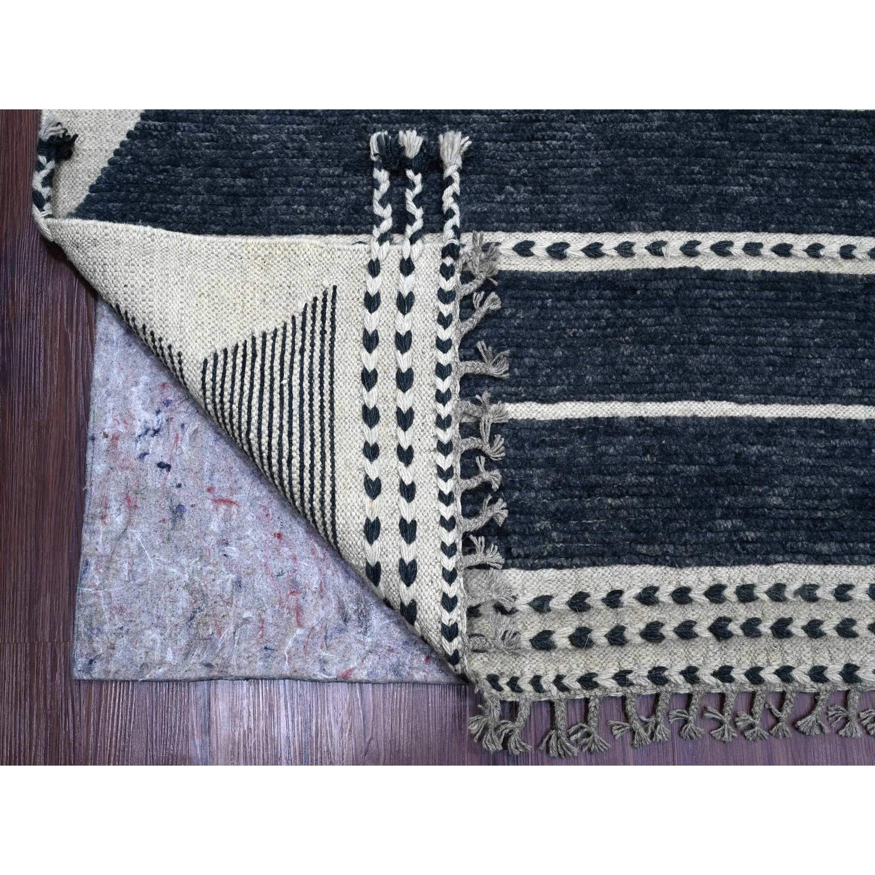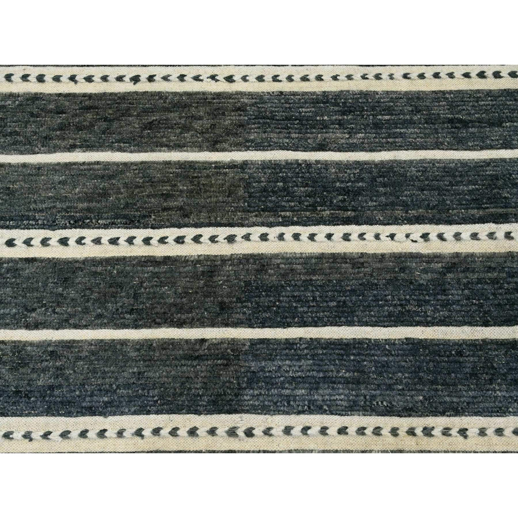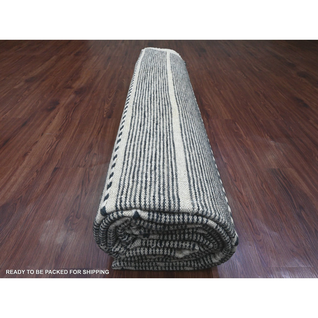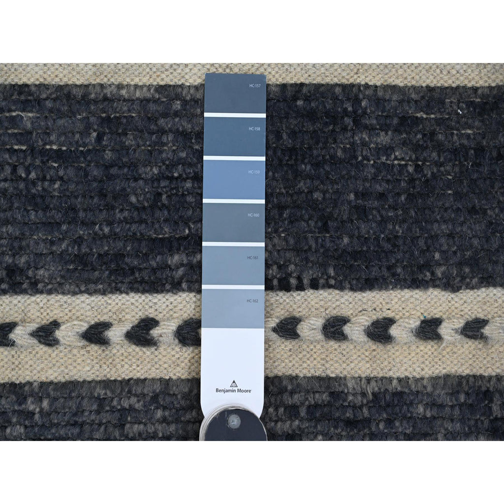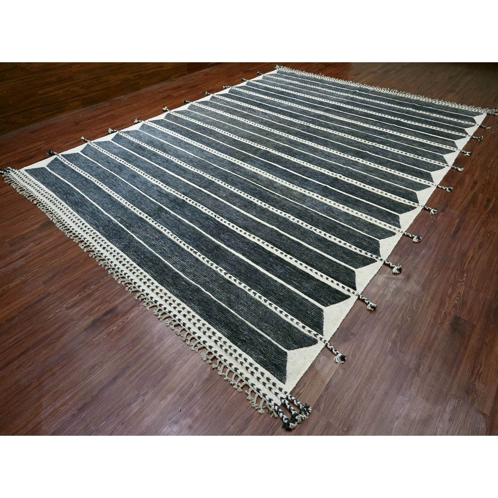 10'4"x14'2" Charcoal Black, Moroccan Weave With Line Design, Soft Wool, Tone On Tone, Hand Knotted, Textured Pile, Oriental Rug FWR123138