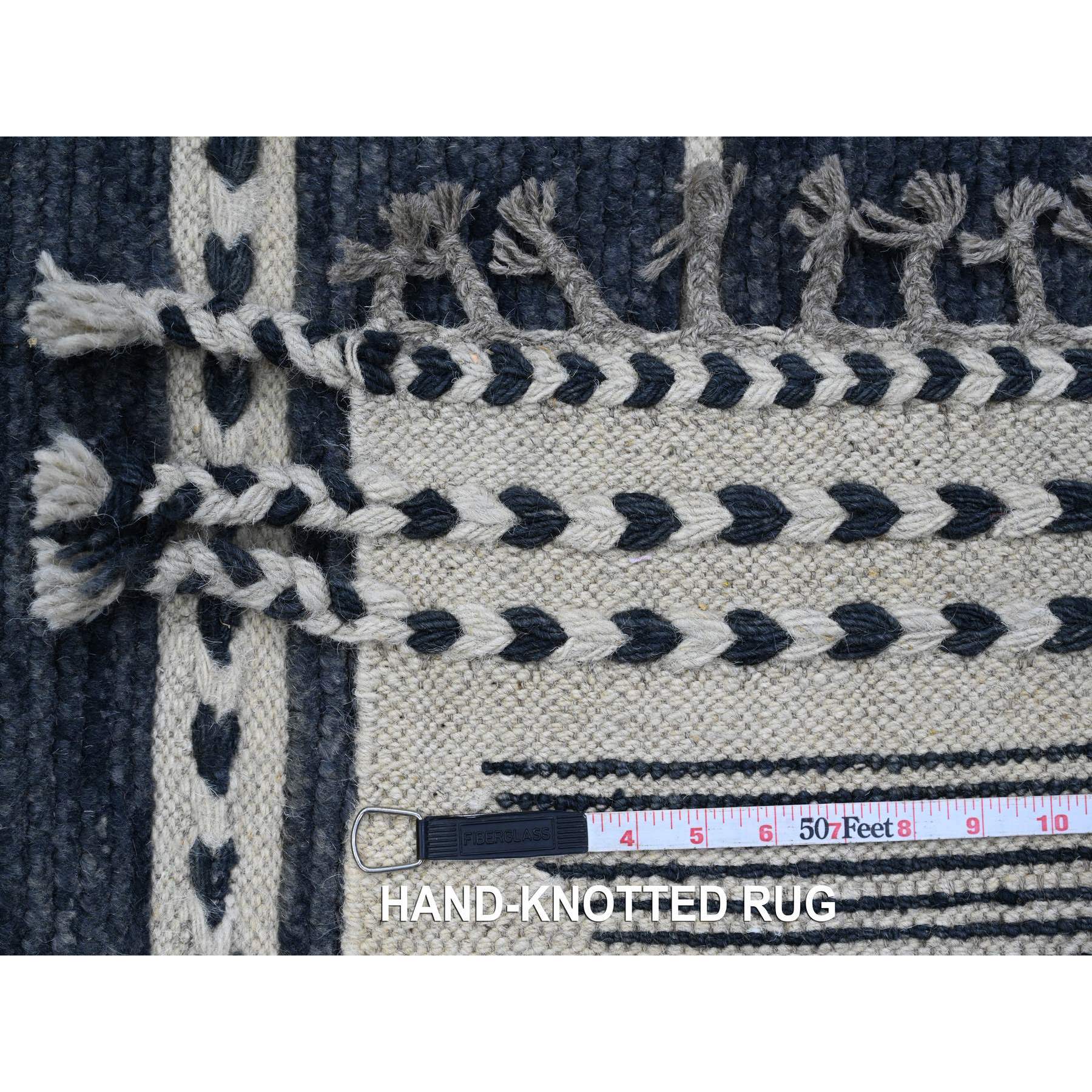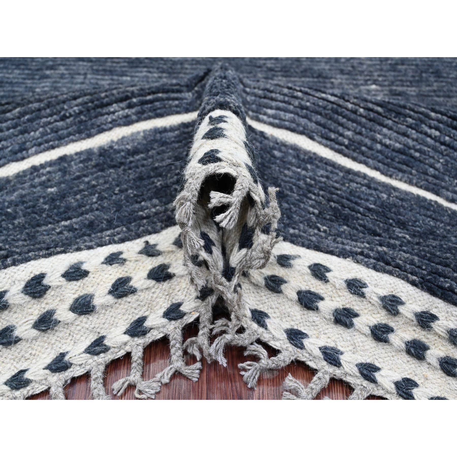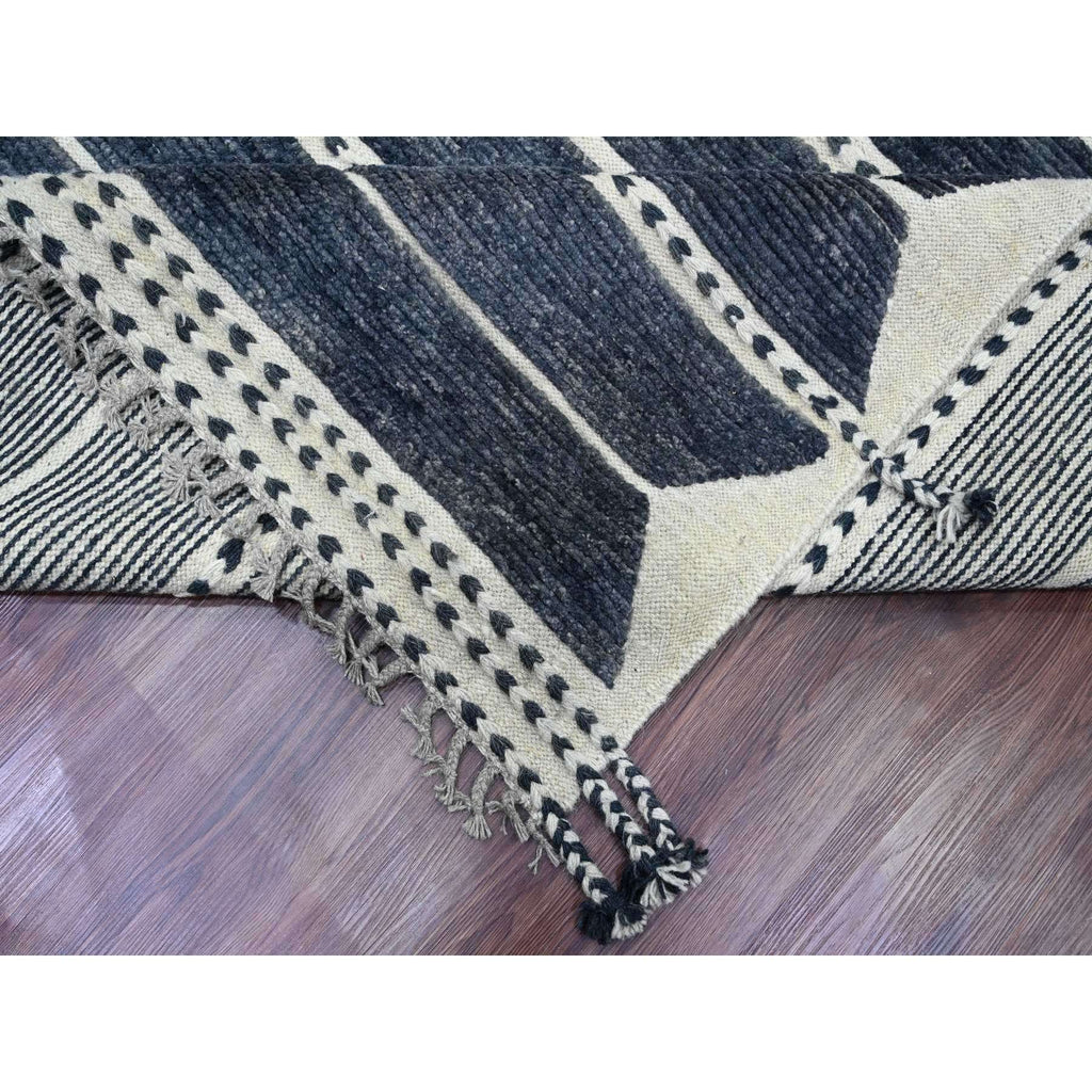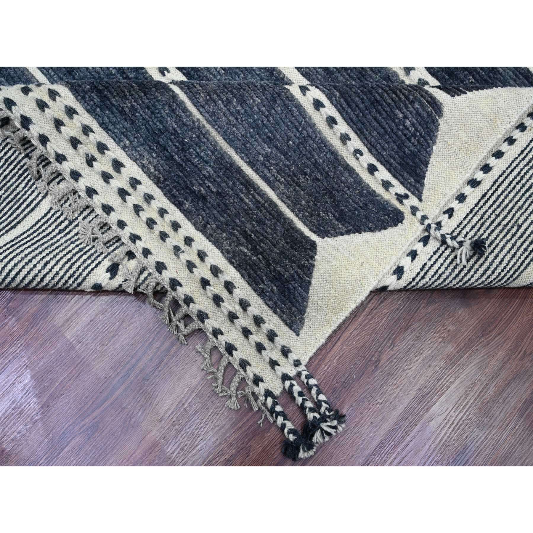 10'4"x14'2" Charcoal Black, Moroccan Weave With Line Design, Soft Wool, Tone On Tone, Hand Knotted, Textured Pile, Oriental Rug FWR123138