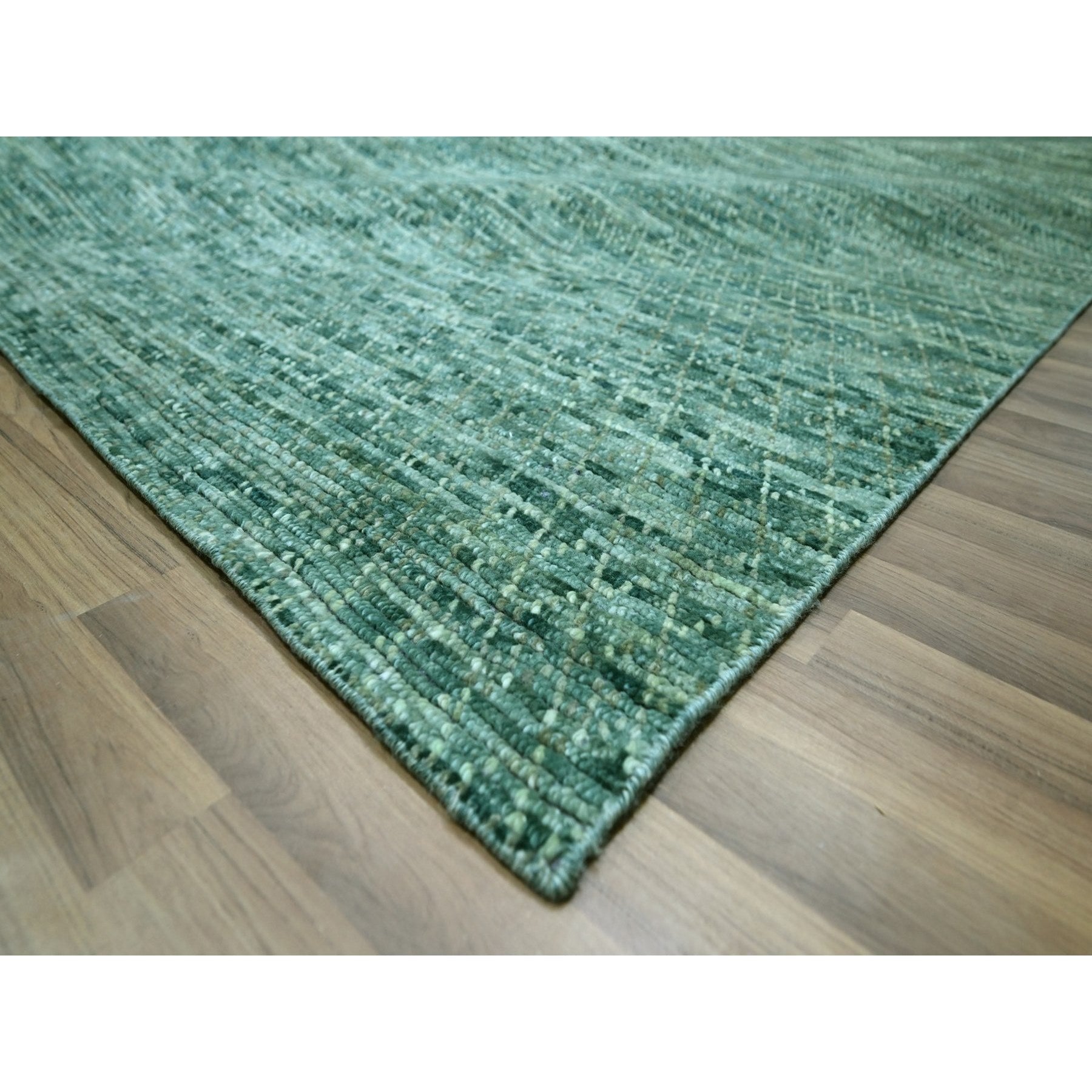 10'4"x14'2" Mist Green, Hand Knotted, Grass Design With Looped Pile, Natural Wool, Oriental Rug FWR461052