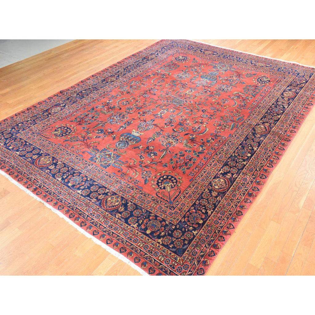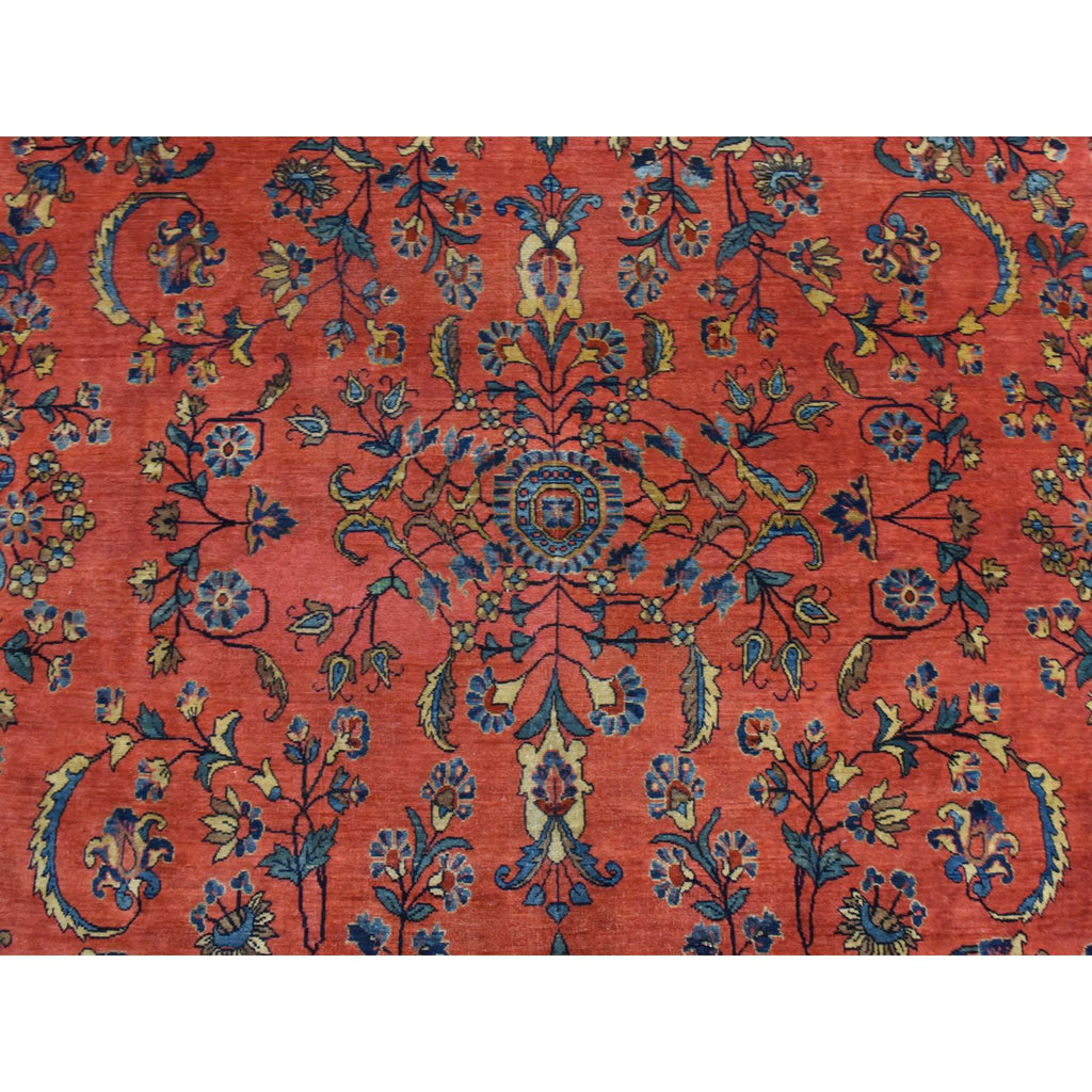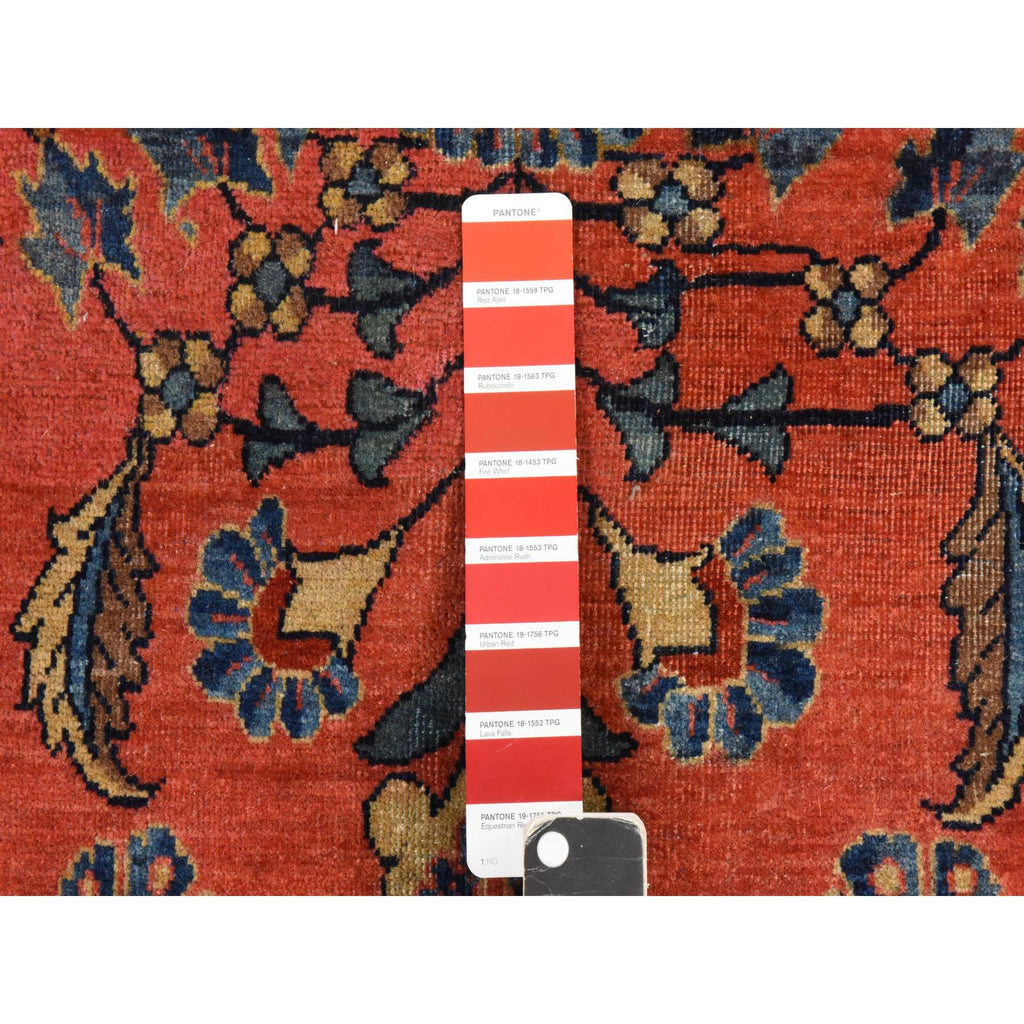 10'4"x14' Fire Whirl Red, Antique Persian Mohajeran Sarouk, Even Wear, Clean, Pliable And Soft Pile, 100% Wool, Hand Knotted, Oriental Rug FWR470988