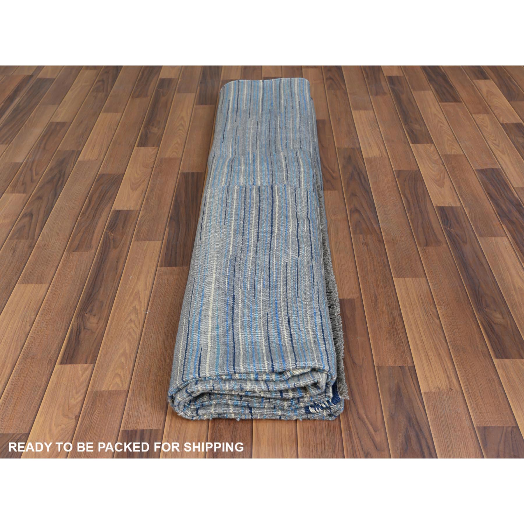 10'5"x13'10" Hand Woven Flat Weave Kilim Pure Nomadic Stripe Design Wool Reversible Oriental Rug FWR360648