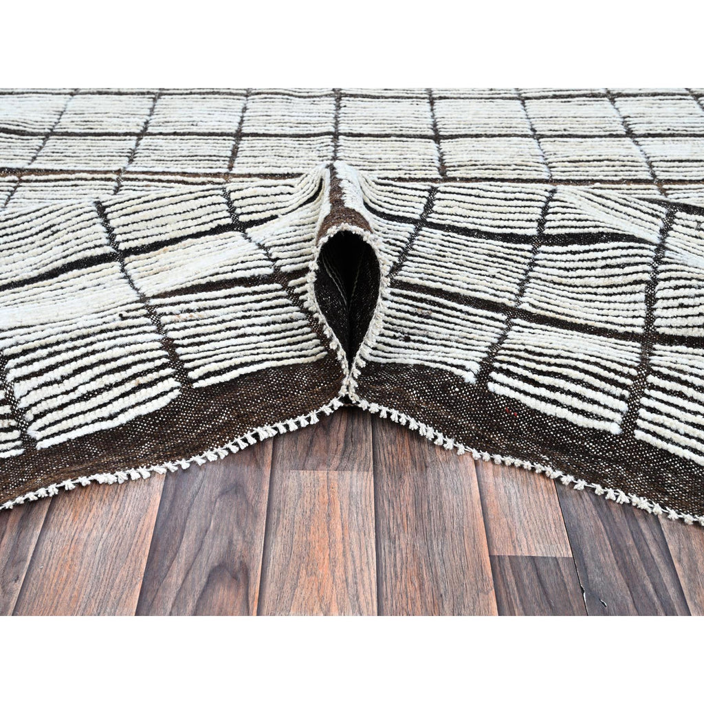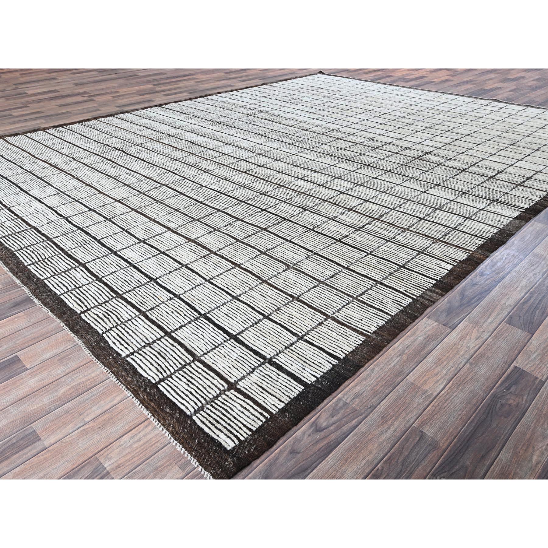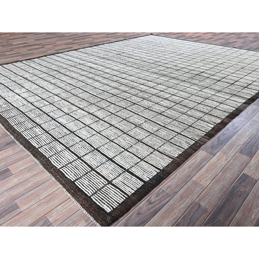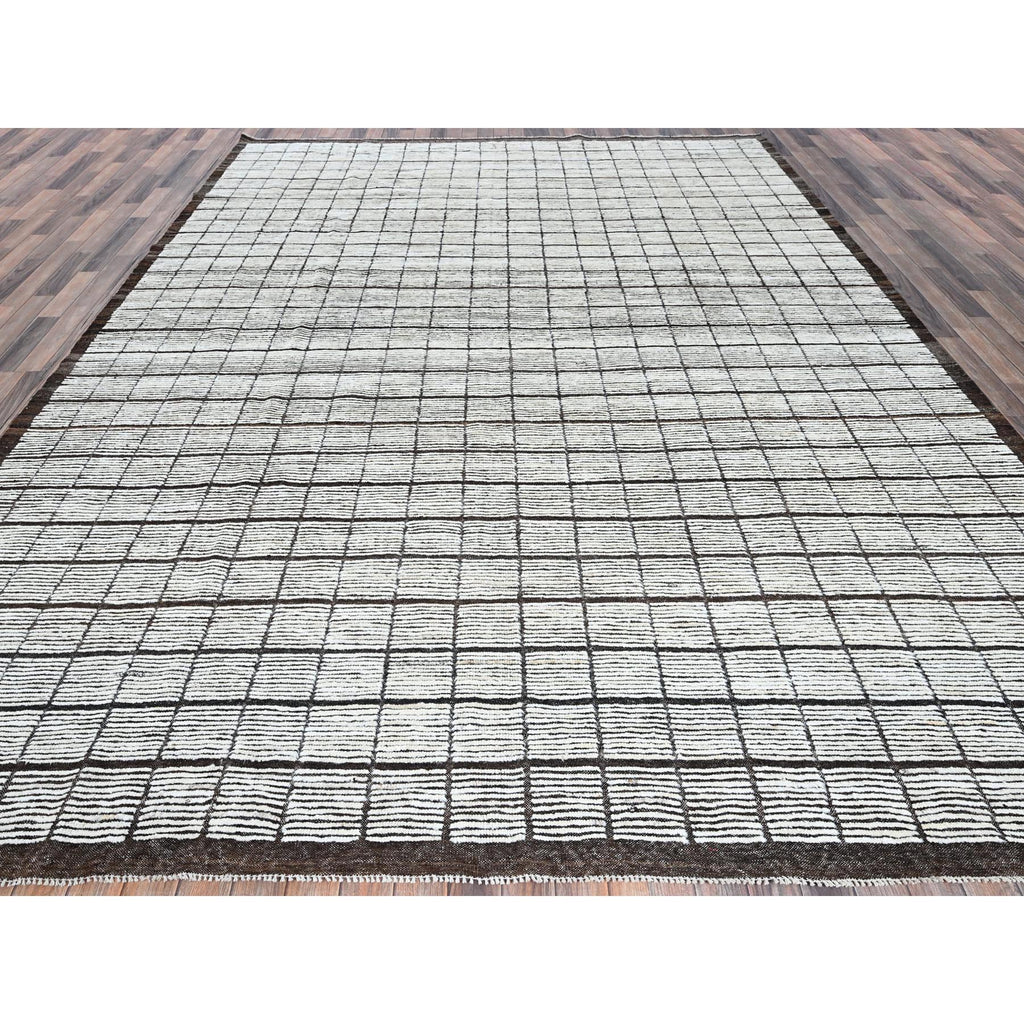 10'5"x13'8" Vista White, Moroccan Weave With Box Design, Tone On Tone, Textured Pile, Undyed Natural Wool, Hand Knotted, Oriental Rug FWR8046