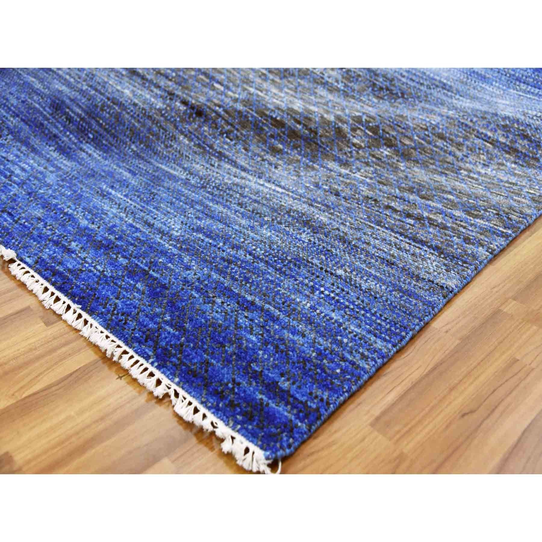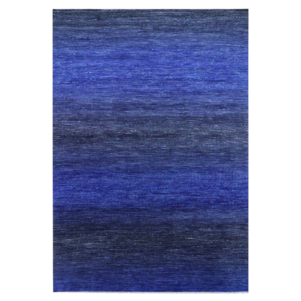 10'5"x14'6" Denim Blue, Pure Wool Modern Chiaroscuro Collection, Thick And Plush, Hand Knotted Oriental Rug FWR474018