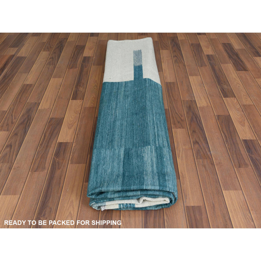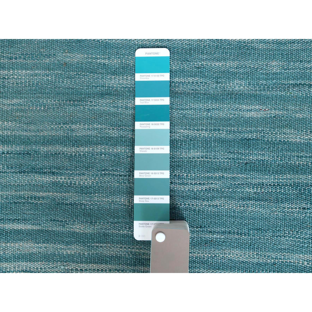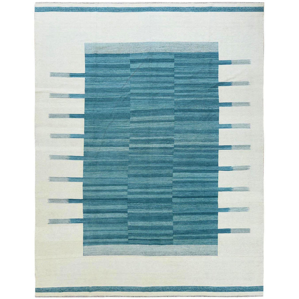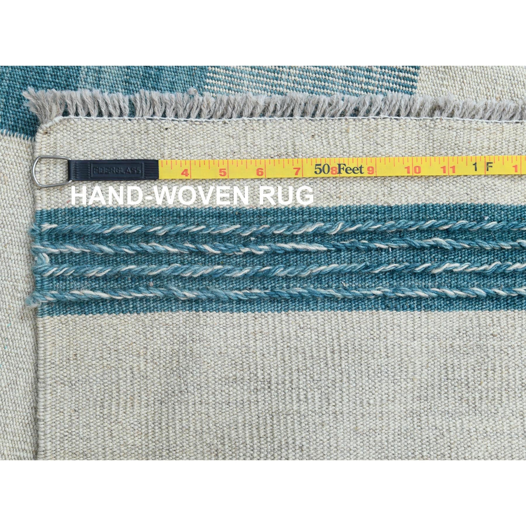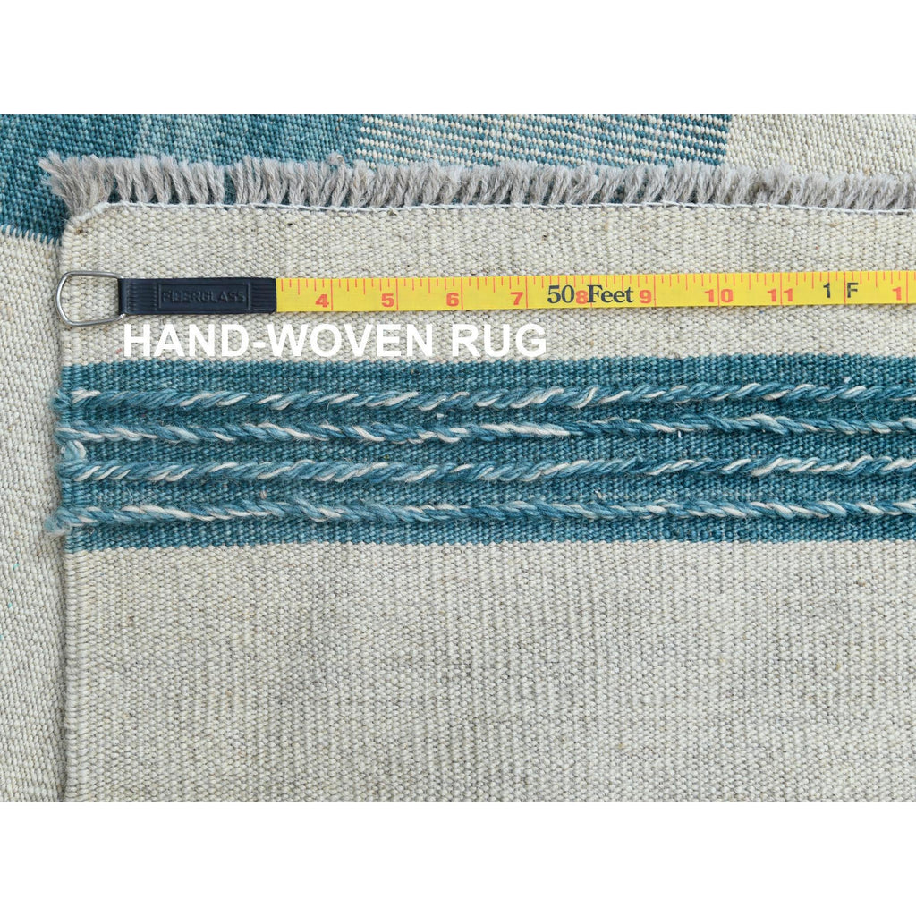 10'8"x14' Hand Woven Aquamarine Stripe Design Flat Weave Kilim Pure Wool Reversible Oriental Rug FWR360318