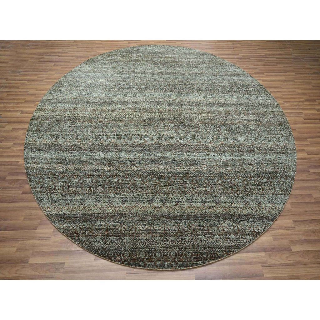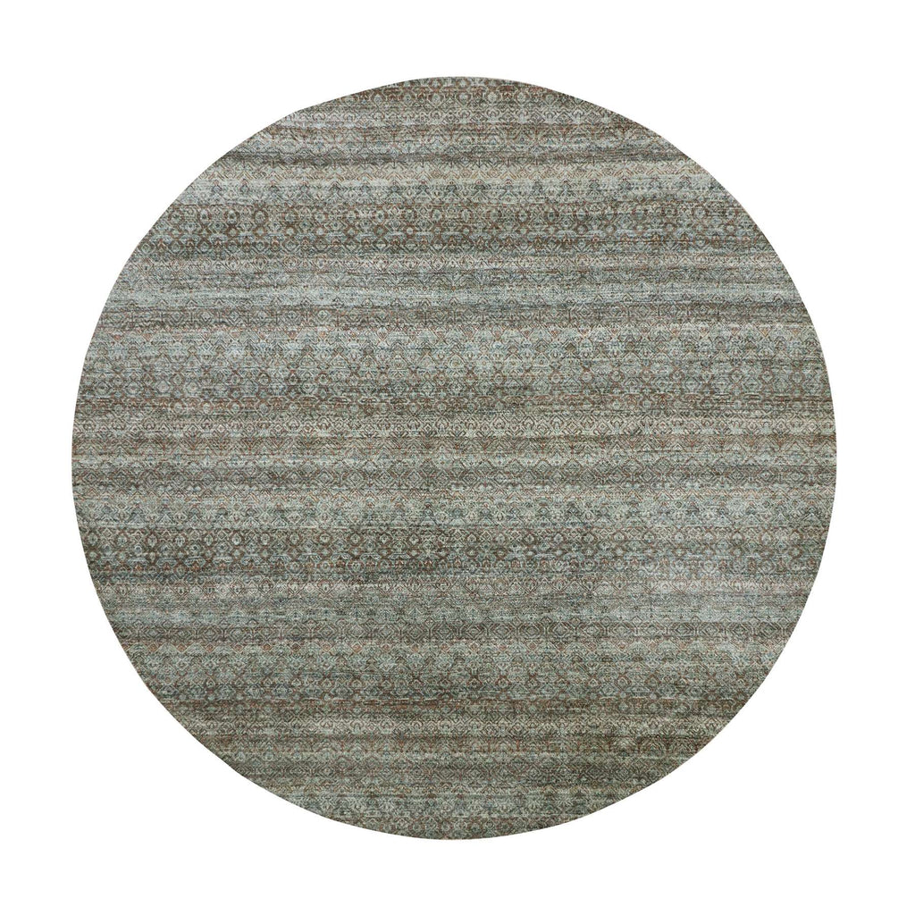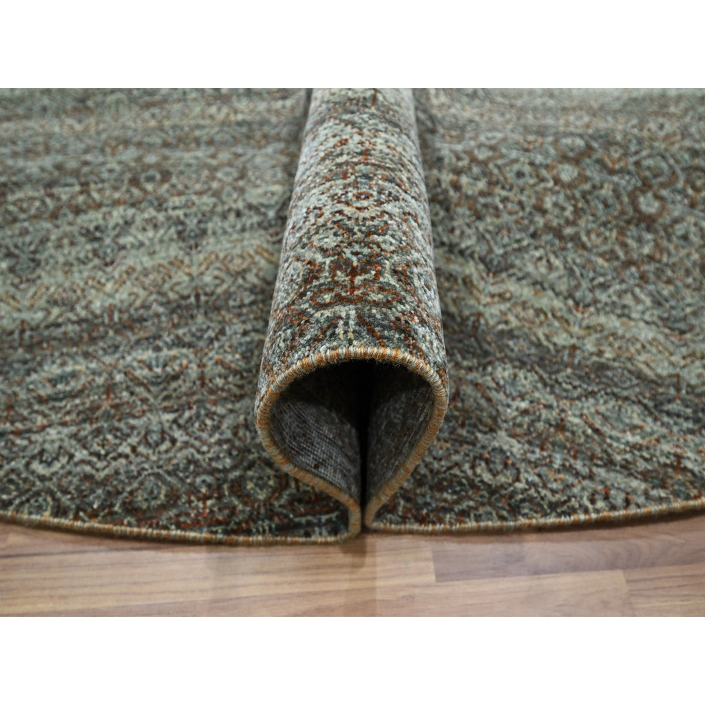 10'x10' Arsenic Gray, Kohinoor Herat Pattern, Small Geometric Repetitive Diamond Design, Soft Wool, Tone On Tone, Hand Knotted, Round, Oriental Rug FWR460728