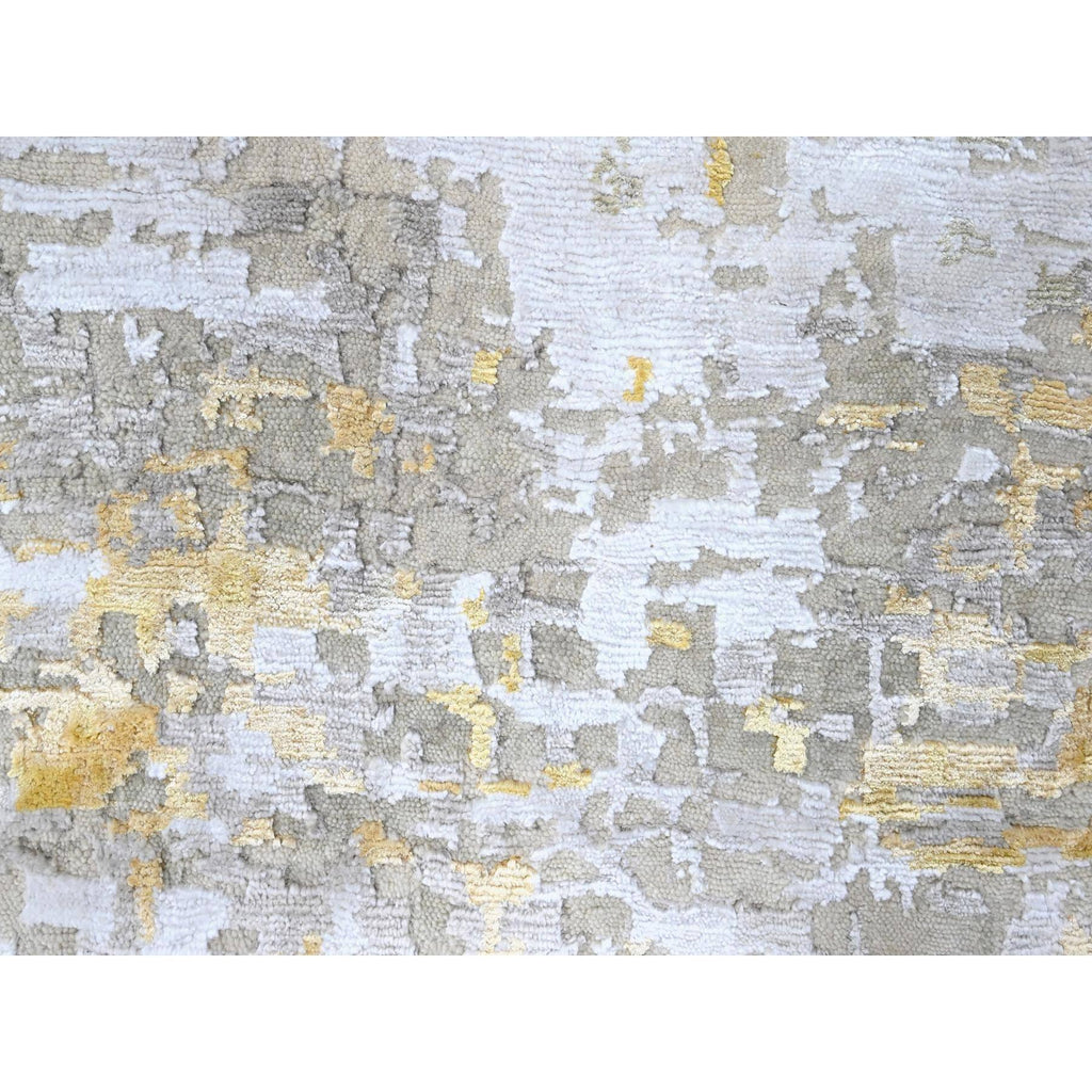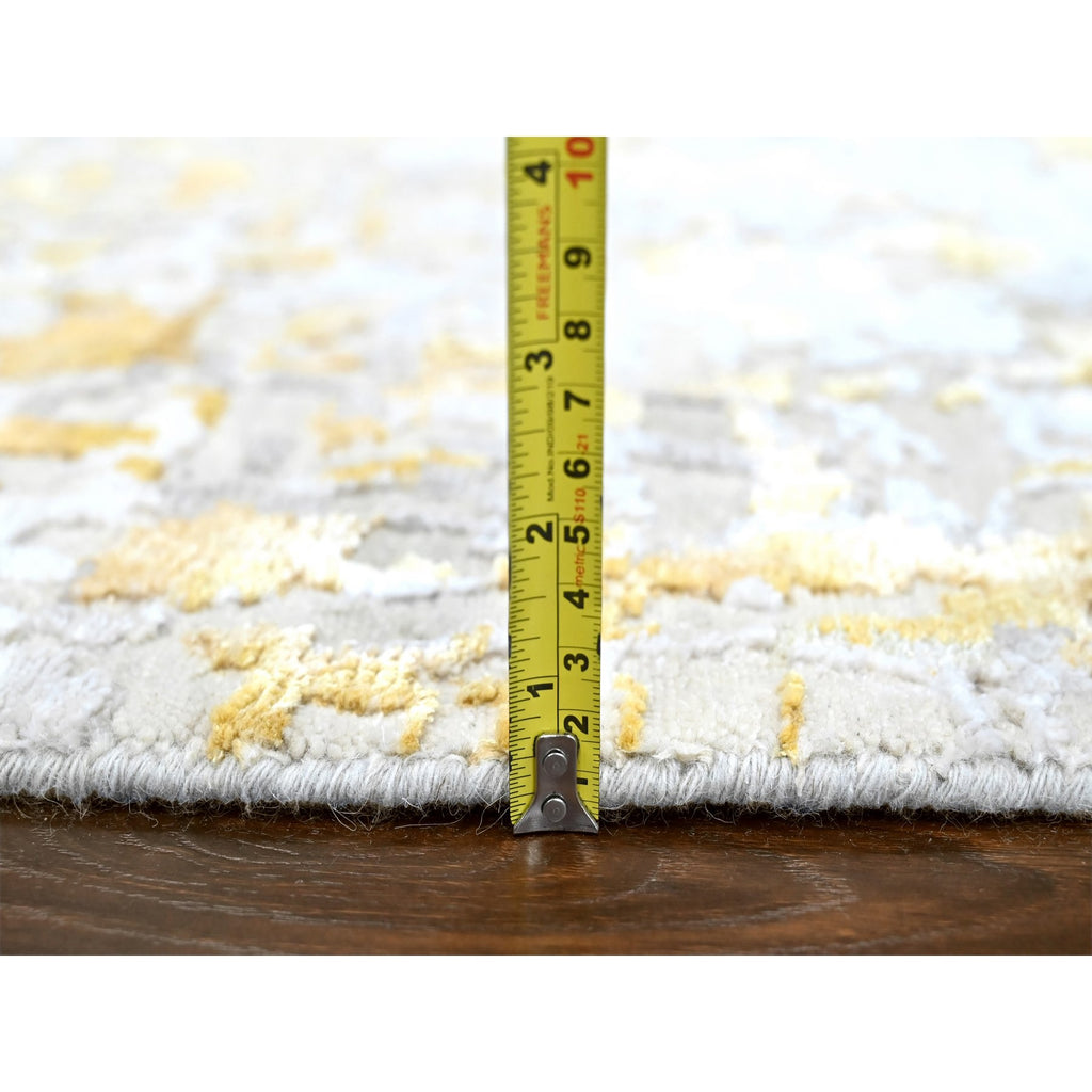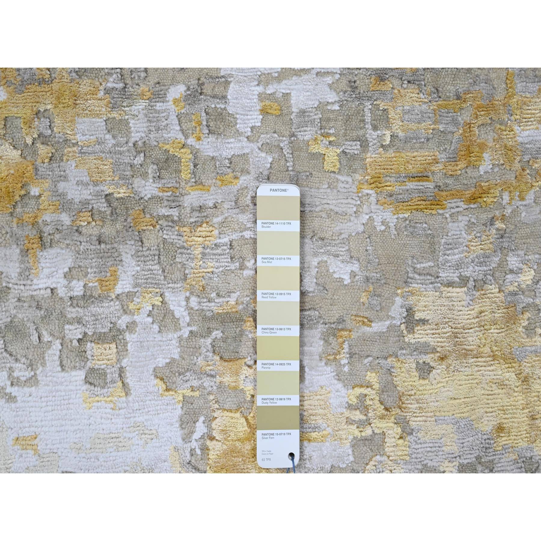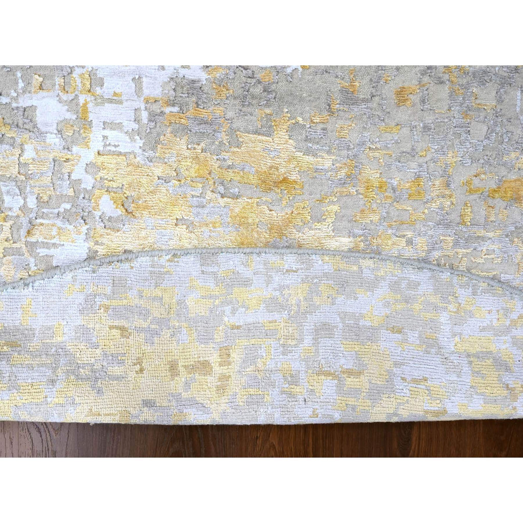 10'x10' Beige With Gold, Abstract Design, Wool And Silk, Hi-low Pile, Hand Knotted, Round, Oriental Rug FWR61254