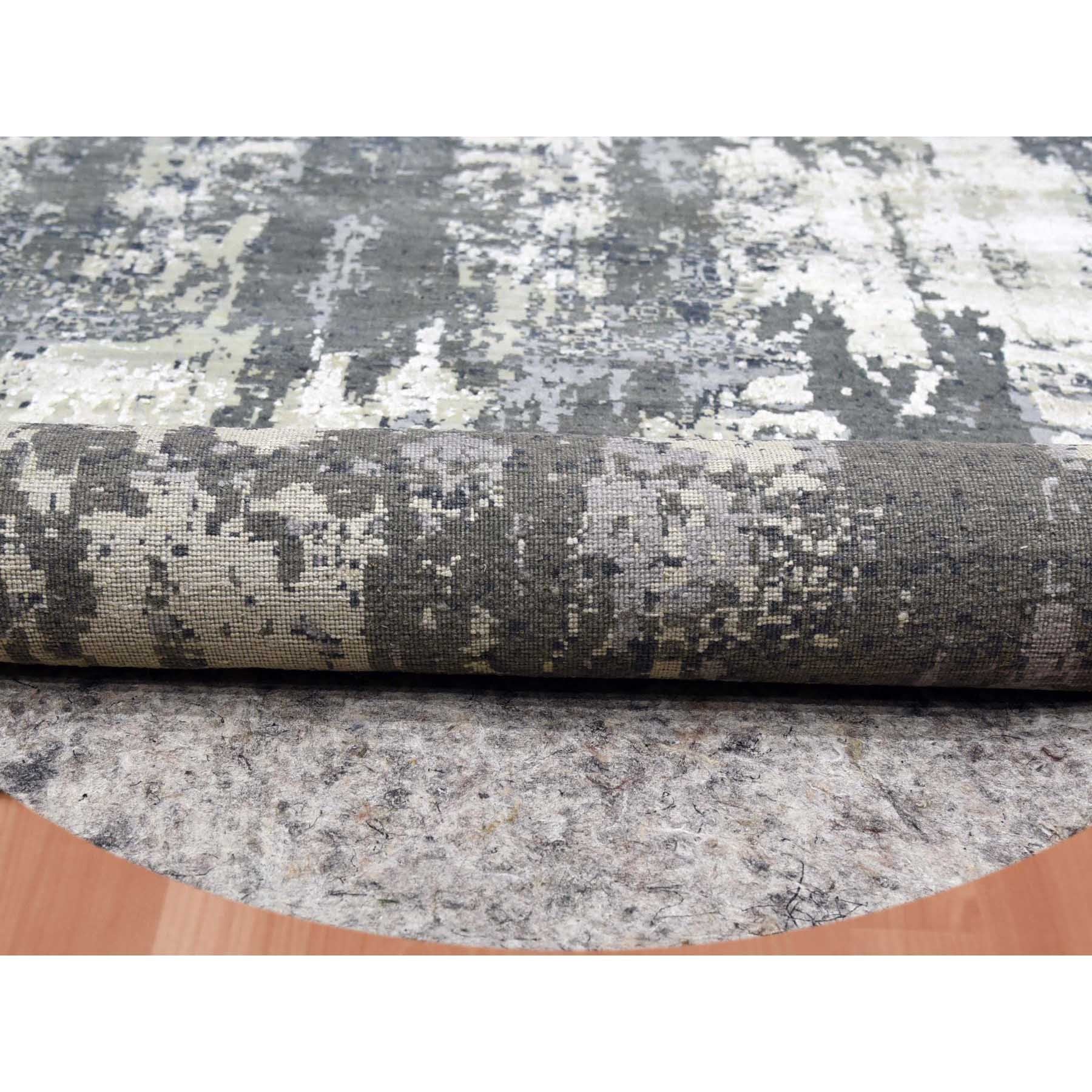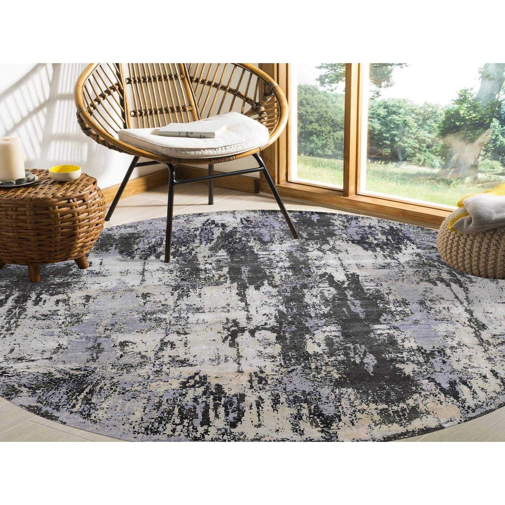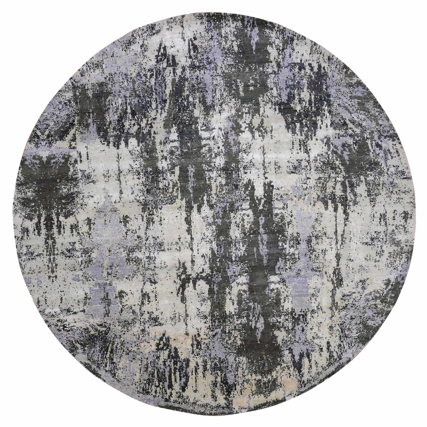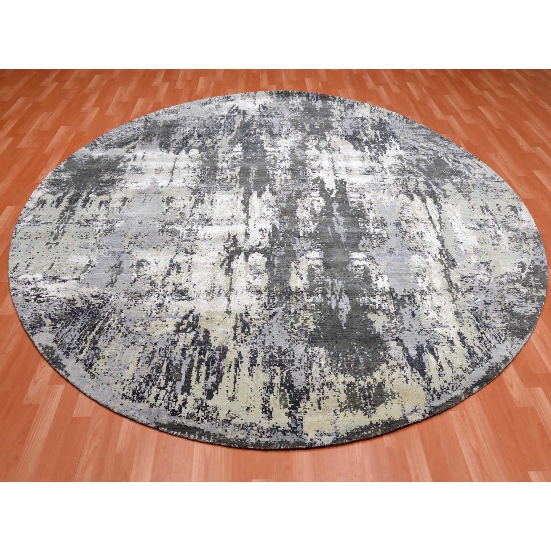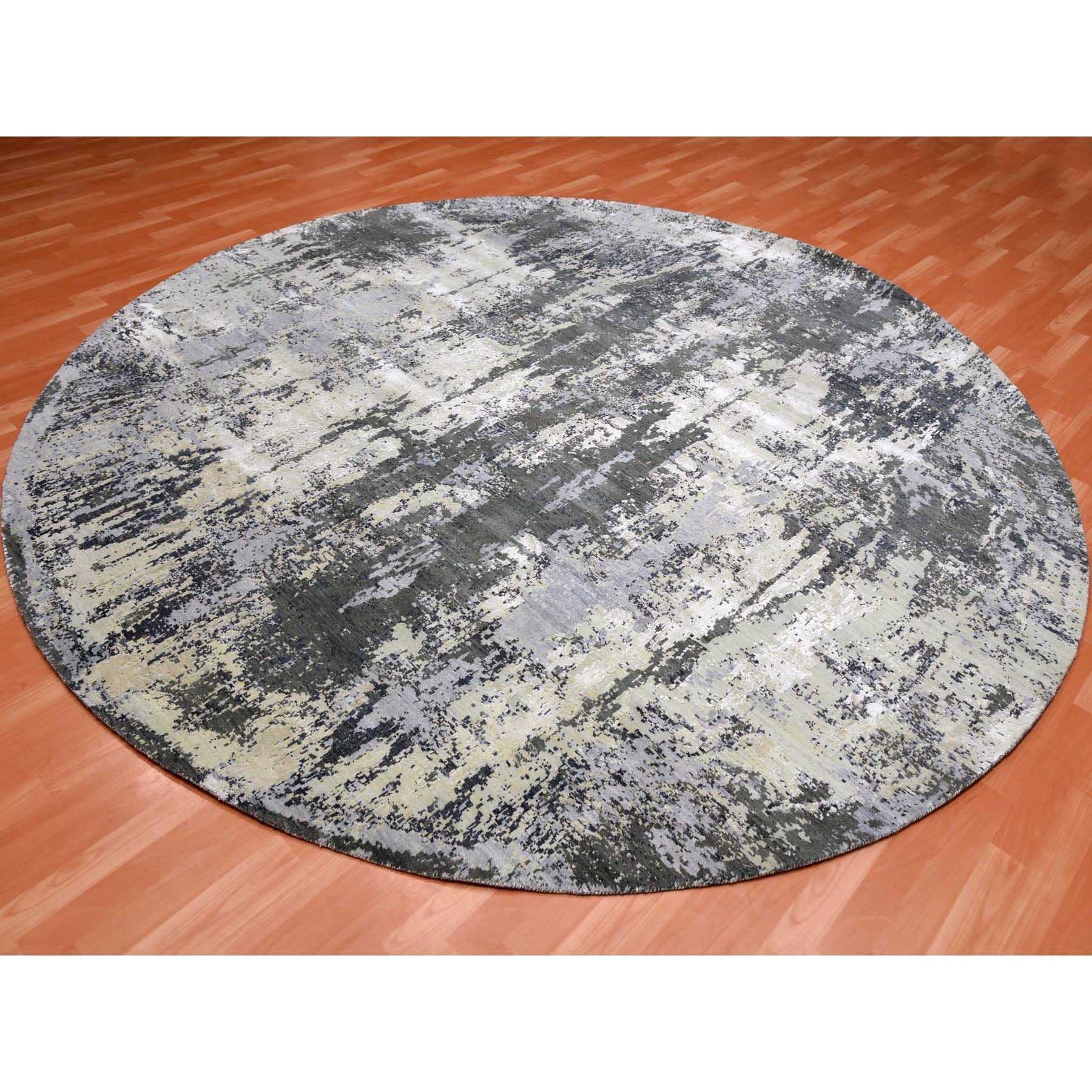 10'x10' Charcoal Gray Abstract Design Wool And Silk Persian Knot Denser Weave Hand Knotted Oriental Round Rug FWR450528