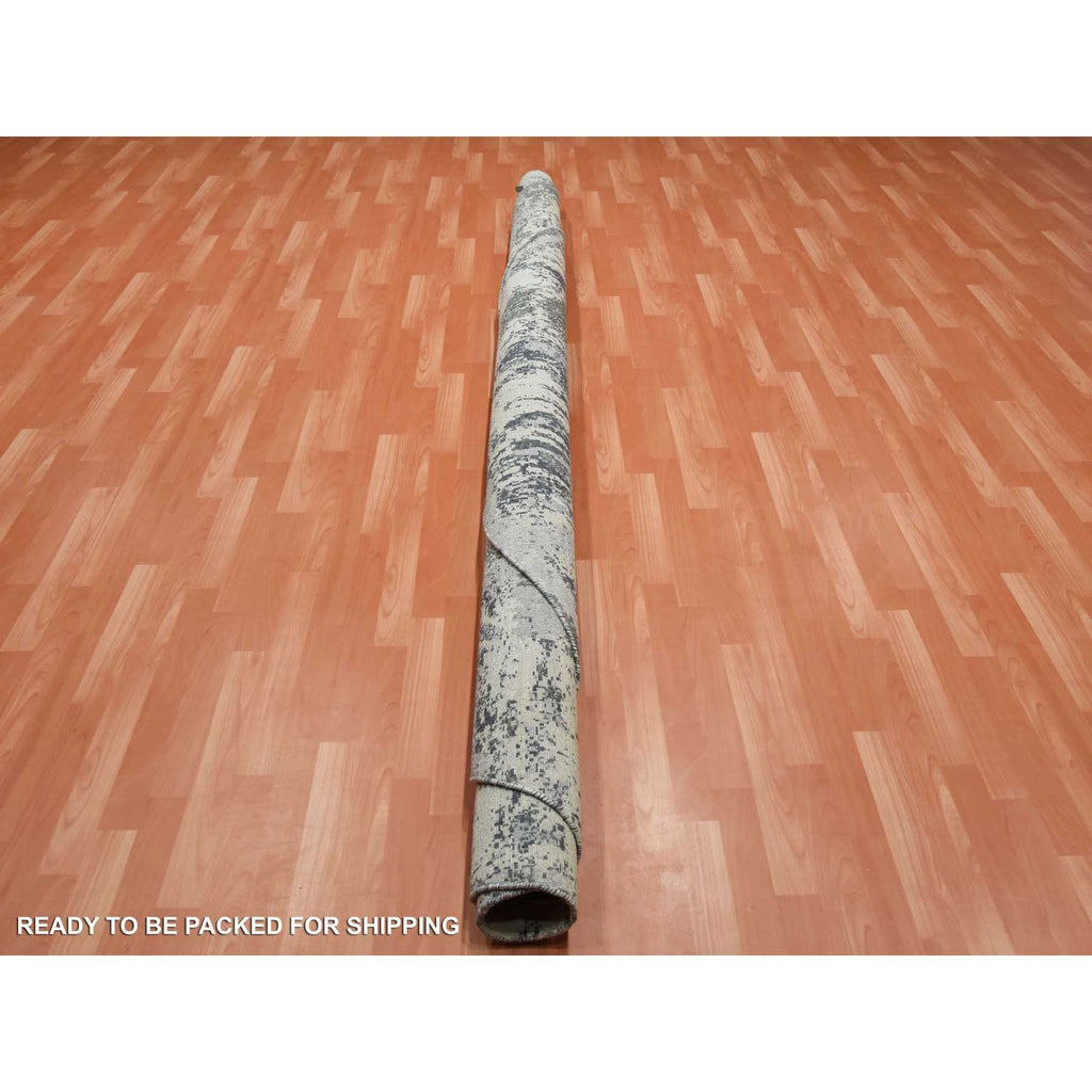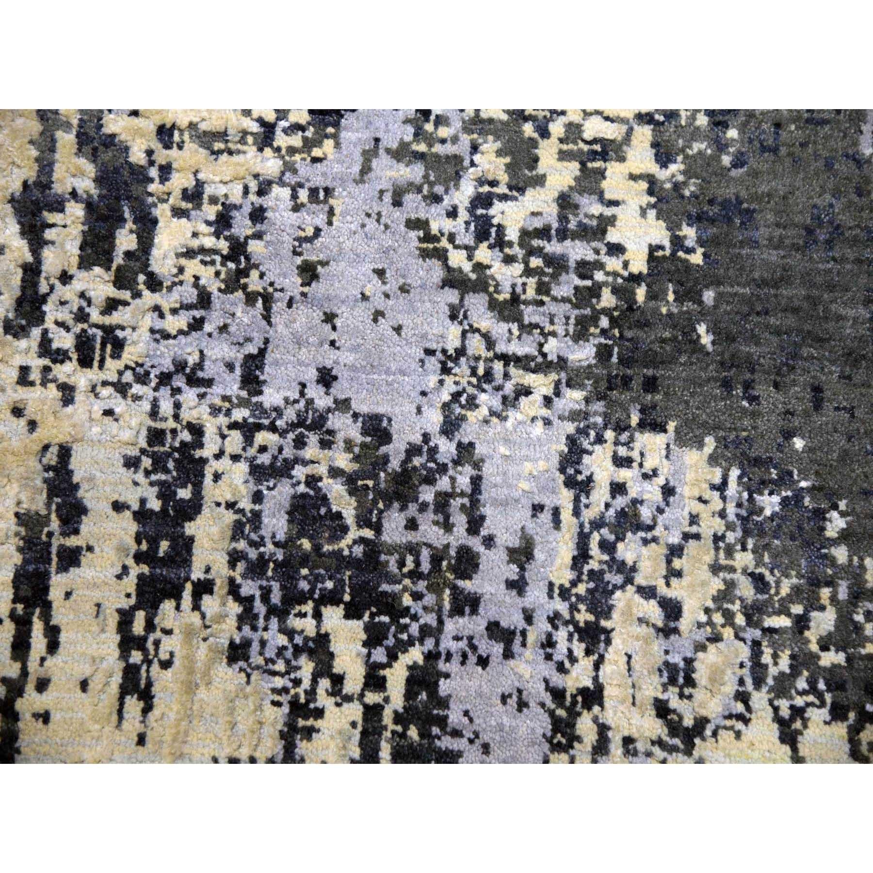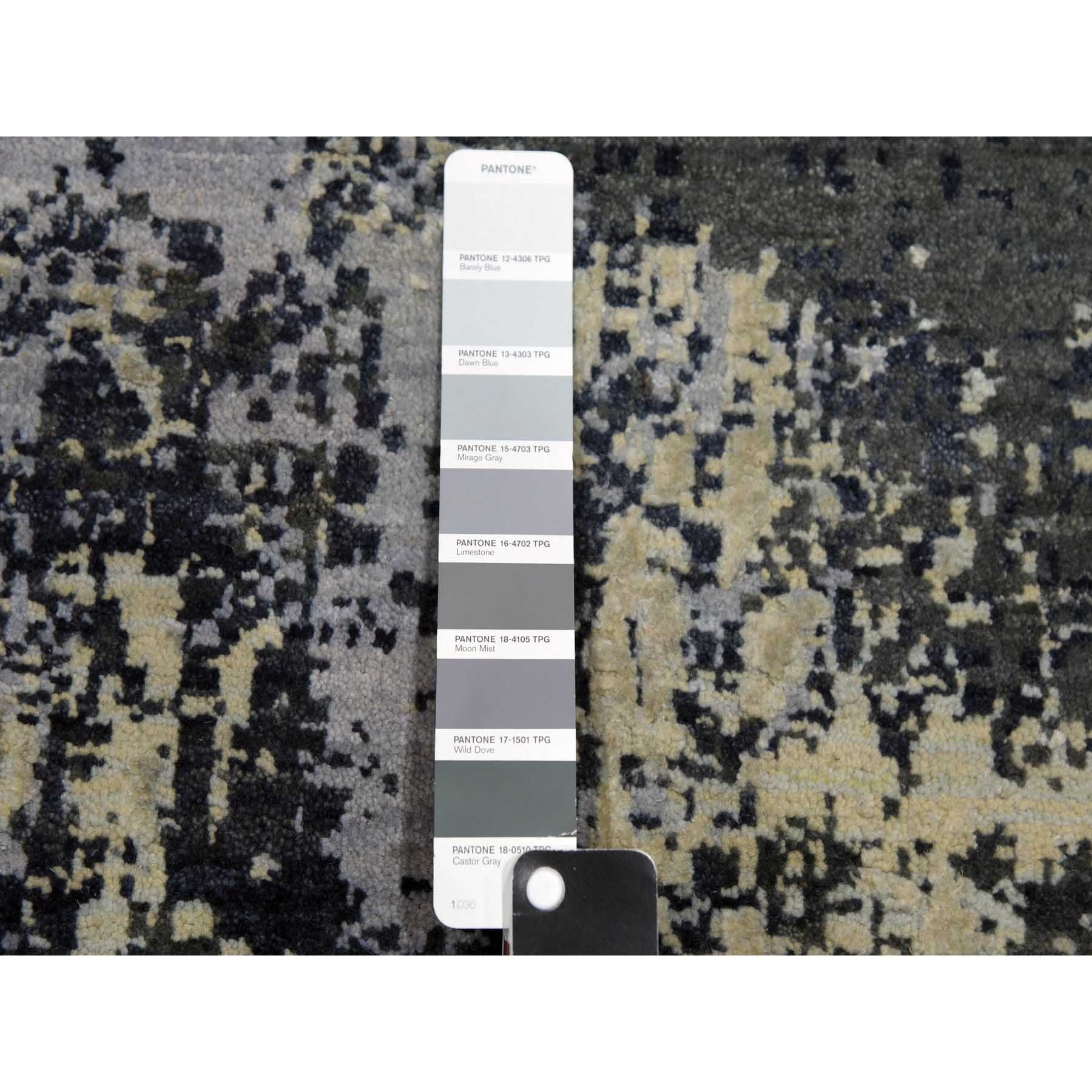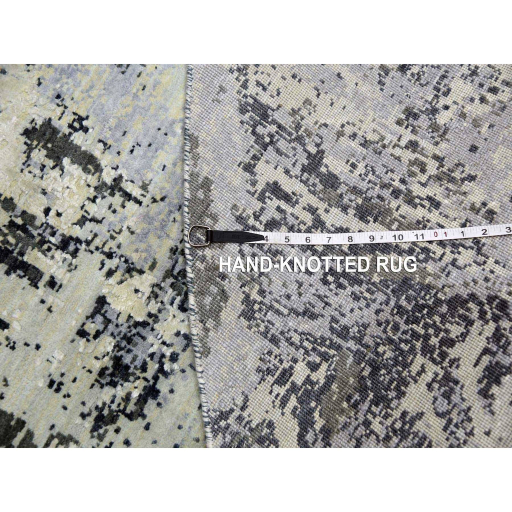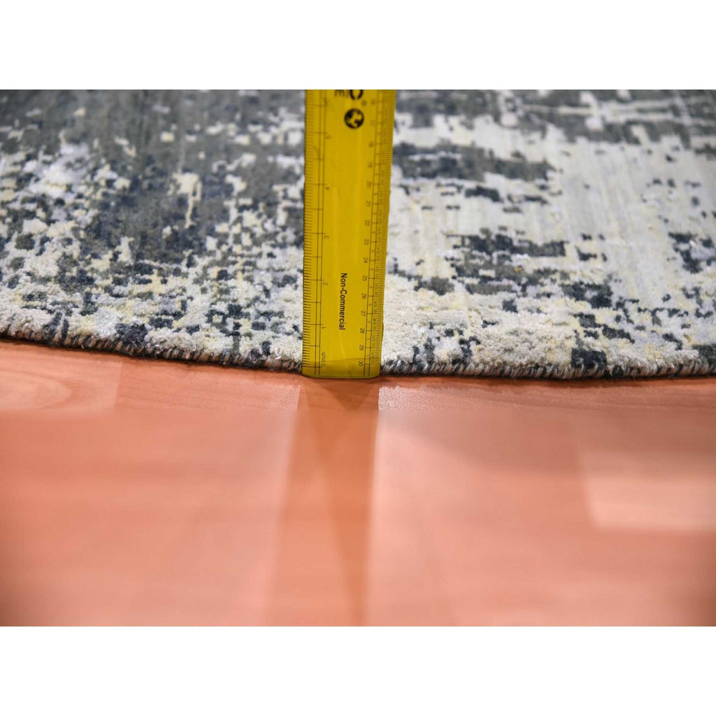 10'x10' Charcoal Gray Abstract Design Wool And Silk Persian Knot Denser Weave Hand Knotted Oriental Round Rug FWR450528