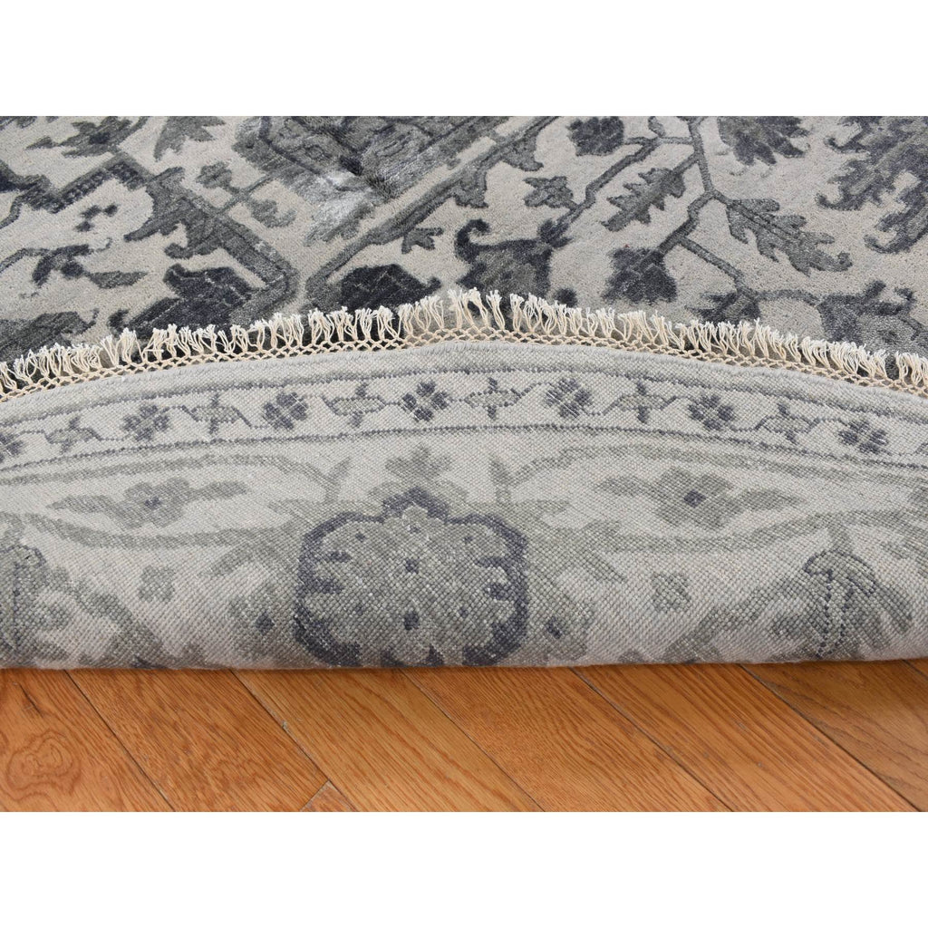 10'x10' Echo Gray, Heriz Design, Wool And Silk, Hi-lo Pile, Hand Knotted, Round Oriental Rug FWR526482