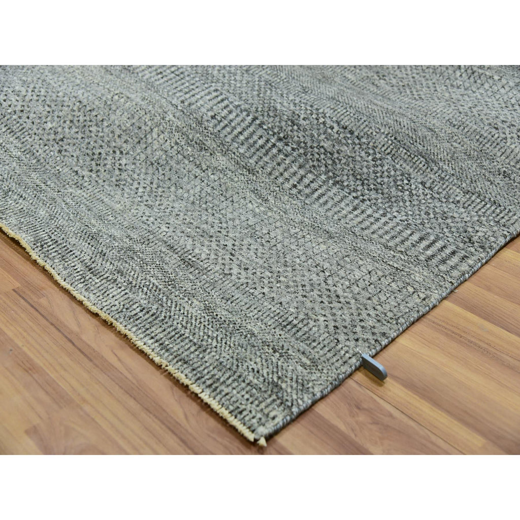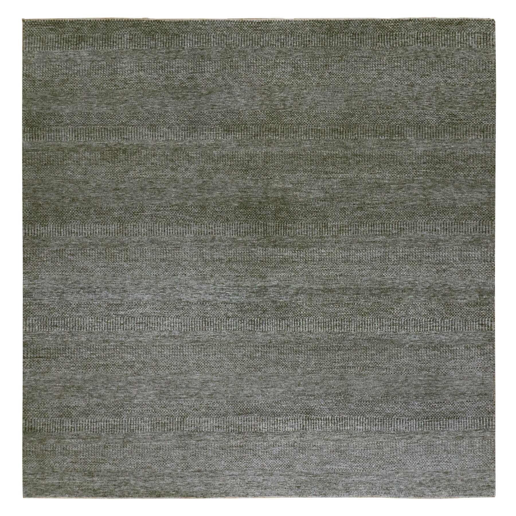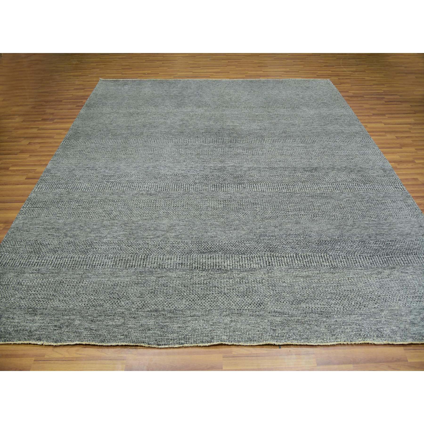 10'x10' Grandma Gray, Undyed Modern Grass Design, Tone On Tone, Hand Knotted, 100% Wool, Bohemian Square Oriental Rug FWR479940