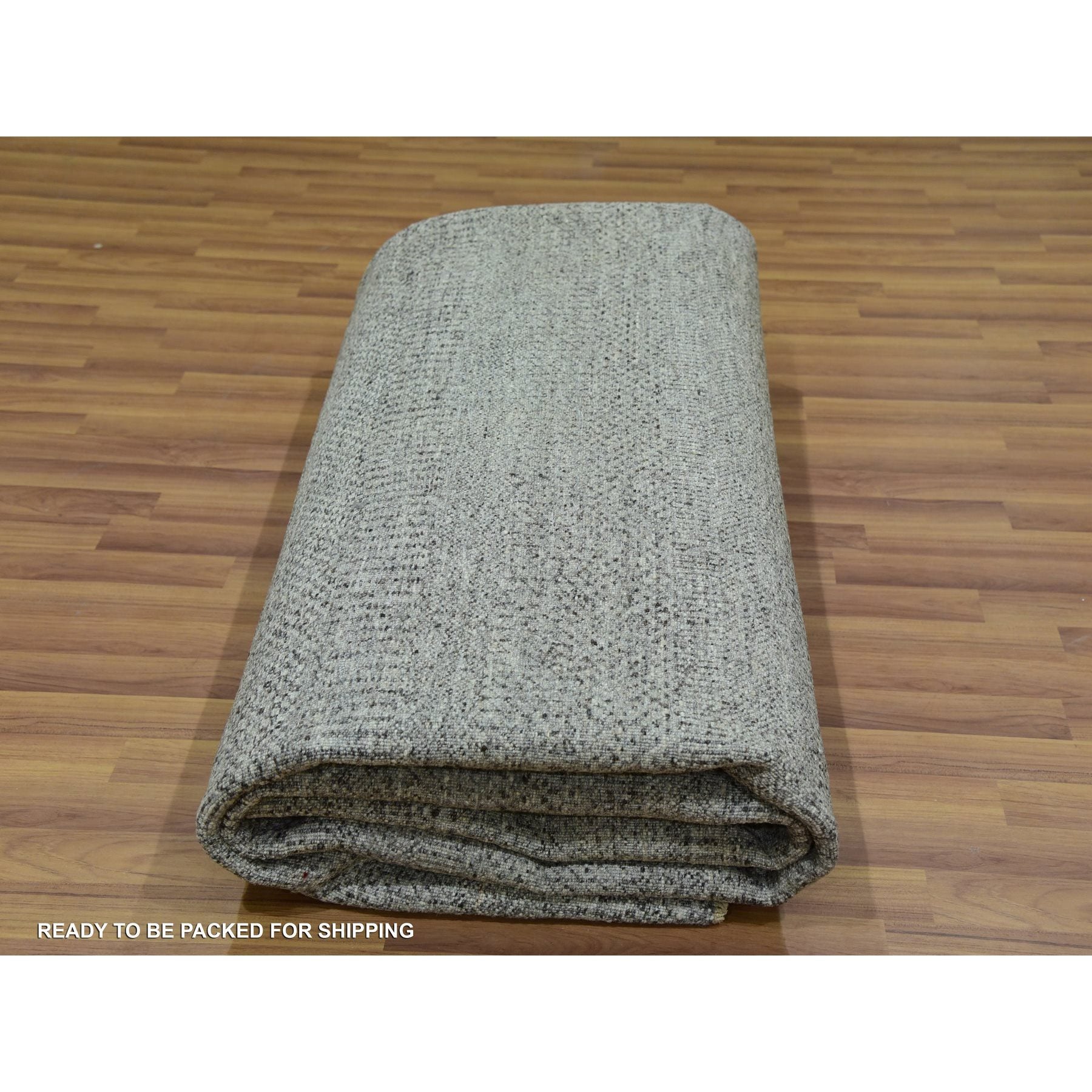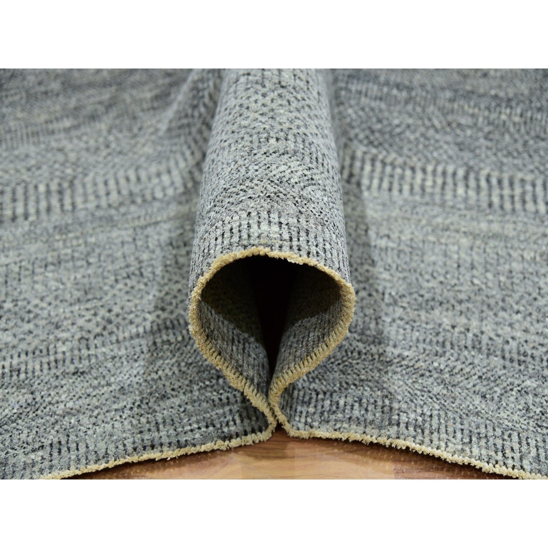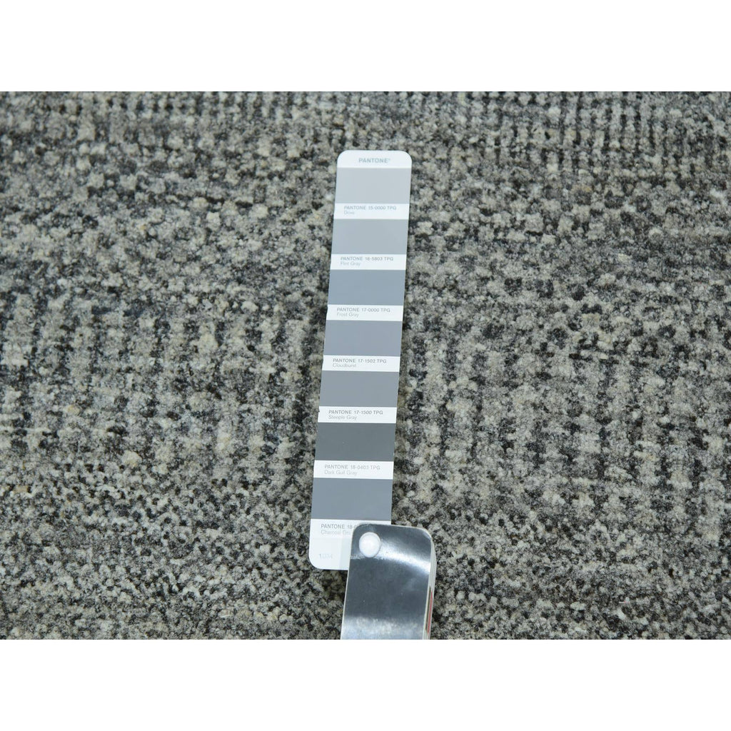 10'x10' Grandma Gray, Undyed Modern Grass Design, Tone On Tone, Hand Knotted, 100% Wool, Bohemian Square Oriental Rug FWR479940