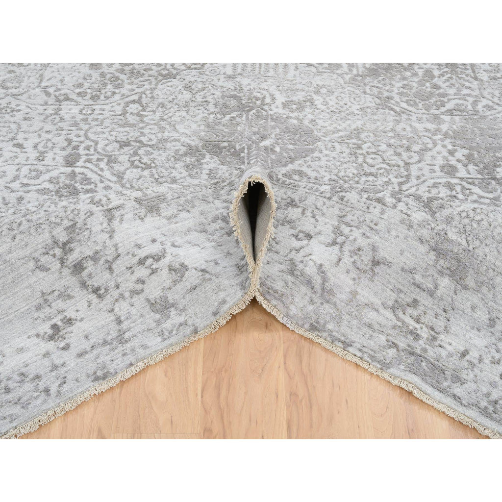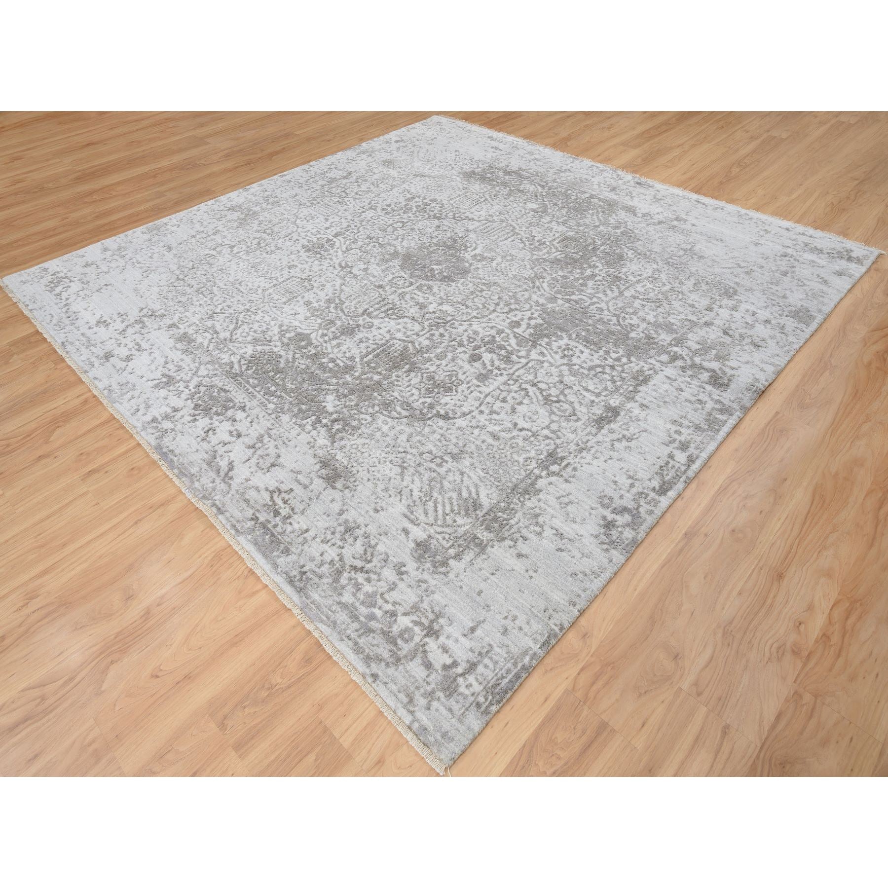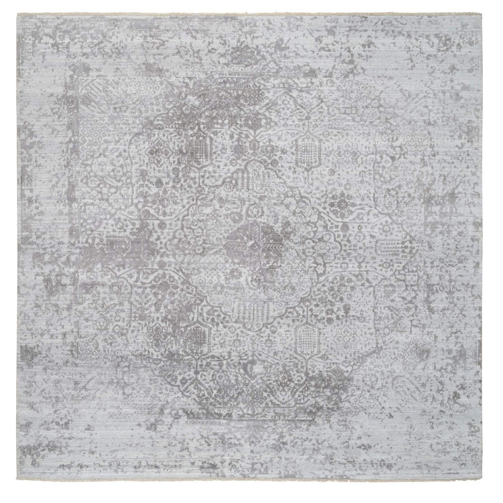 10'x10' Gray, Broken Persian Design, Hand Knotted Wool And Pure Silk, Square Oriental Rug FWR390096