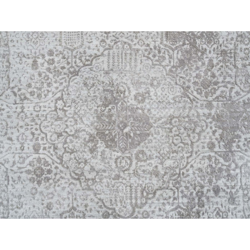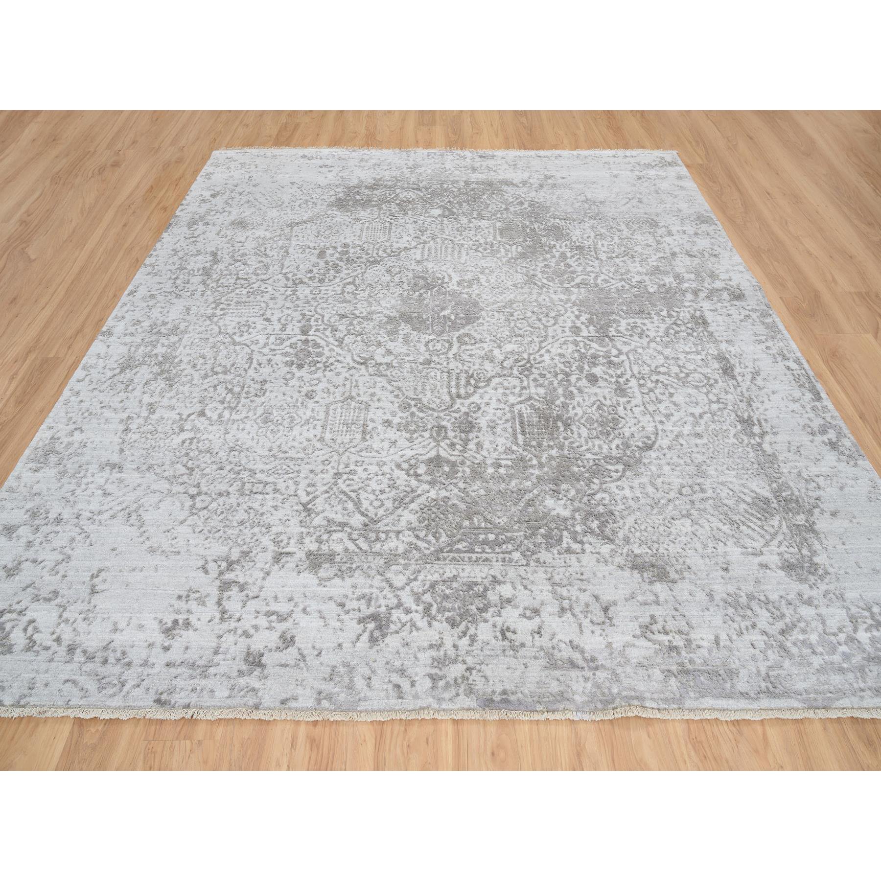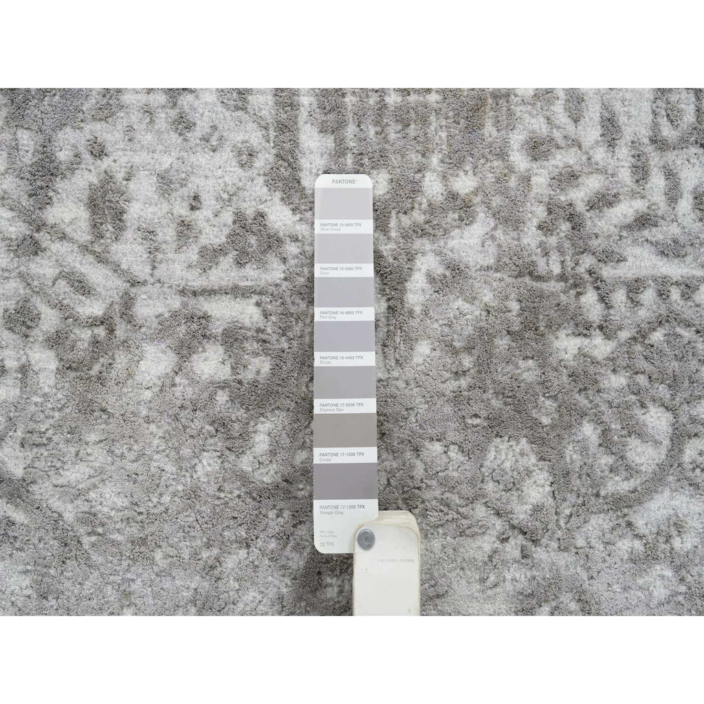 10'x10' Gray, Broken Persian Design, Hand Knotted Wool And Pure Silk, Square Oriental Rug FWR390096