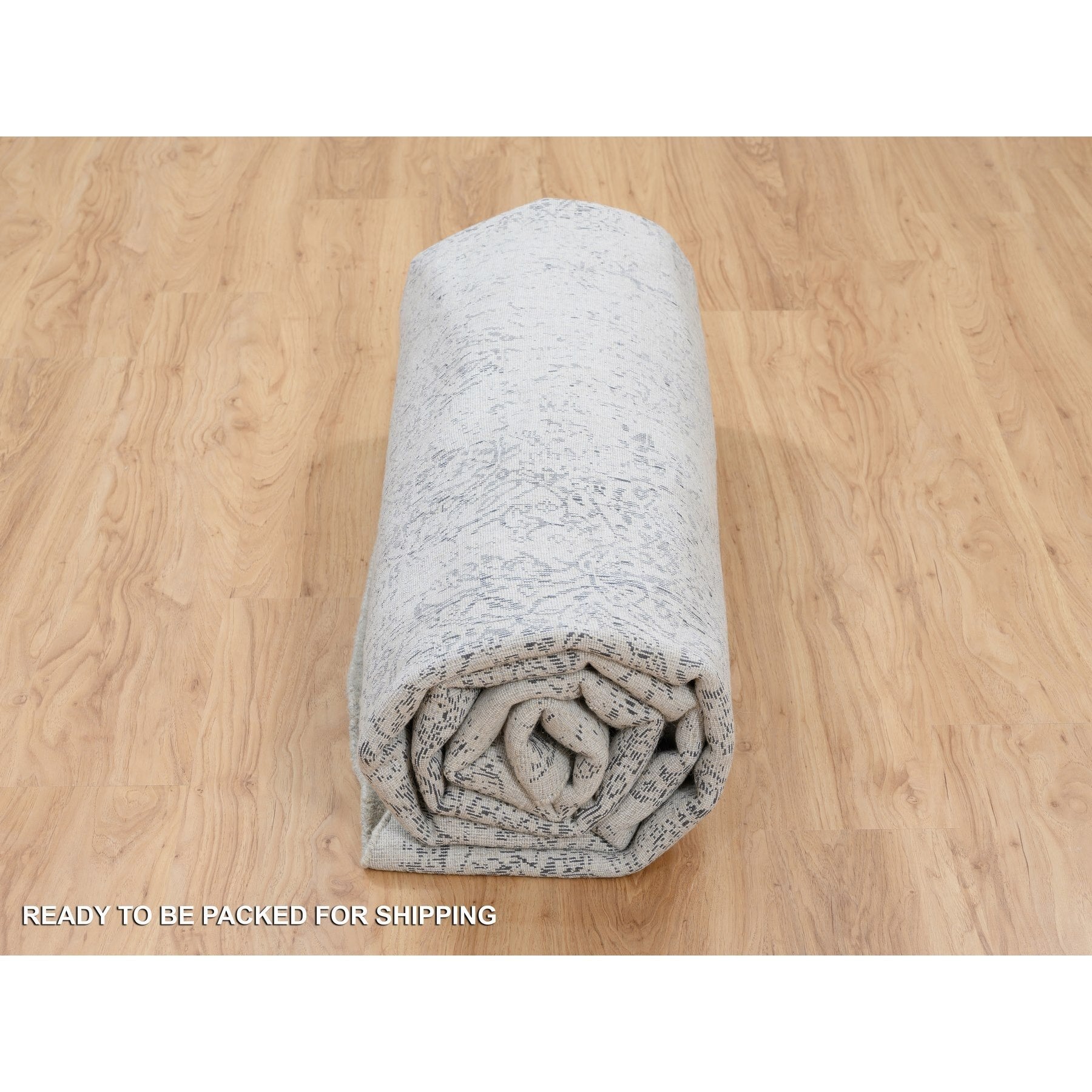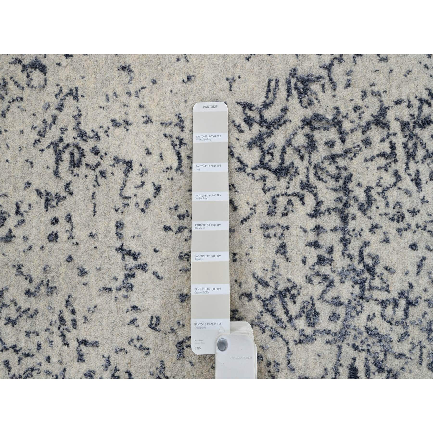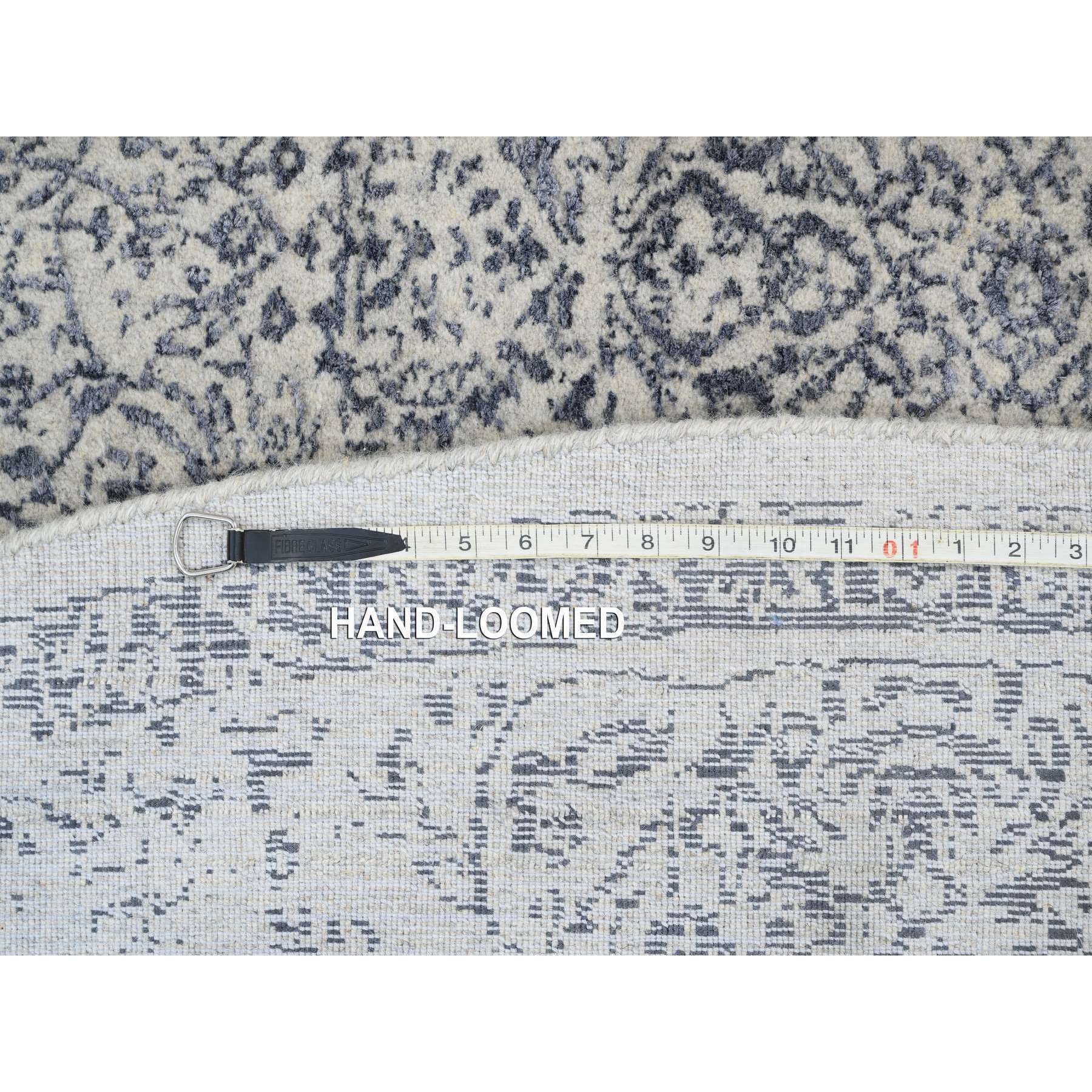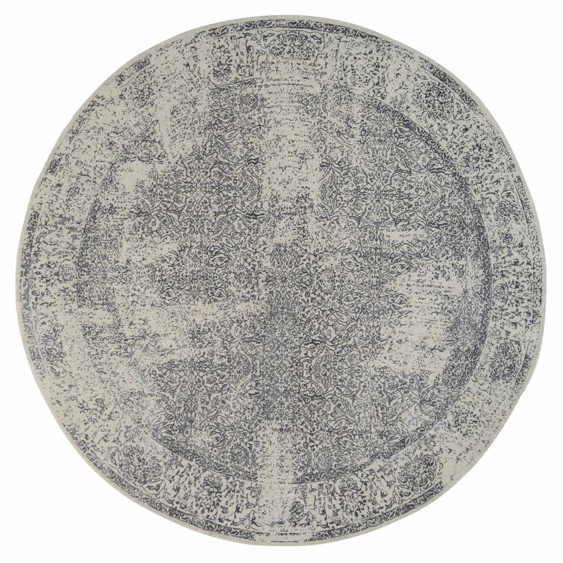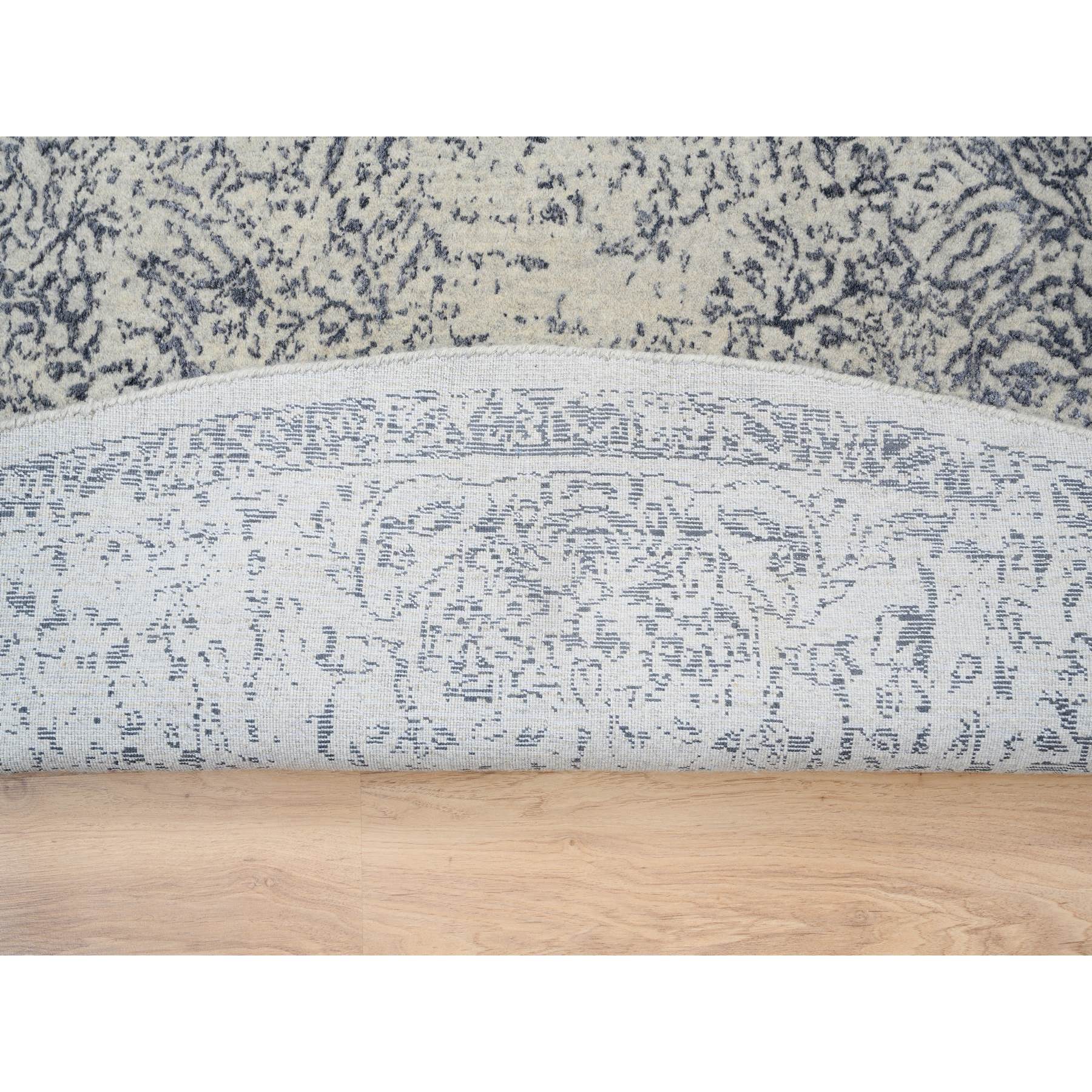 10'x10' Gray Fine Jacquard With Erased Design Wool And Plant Based Silk Hand Loomed Oriental Round Rug FWR381024