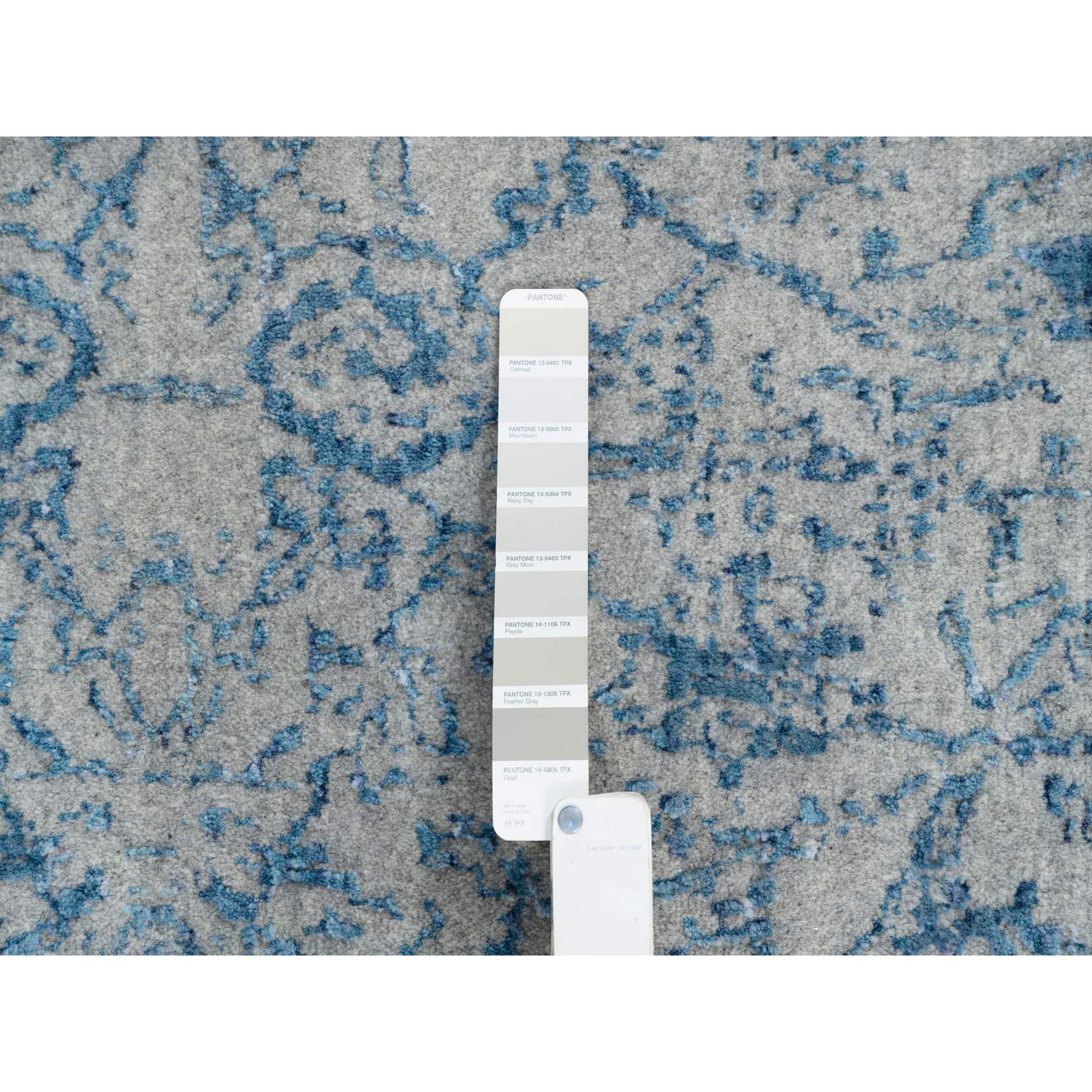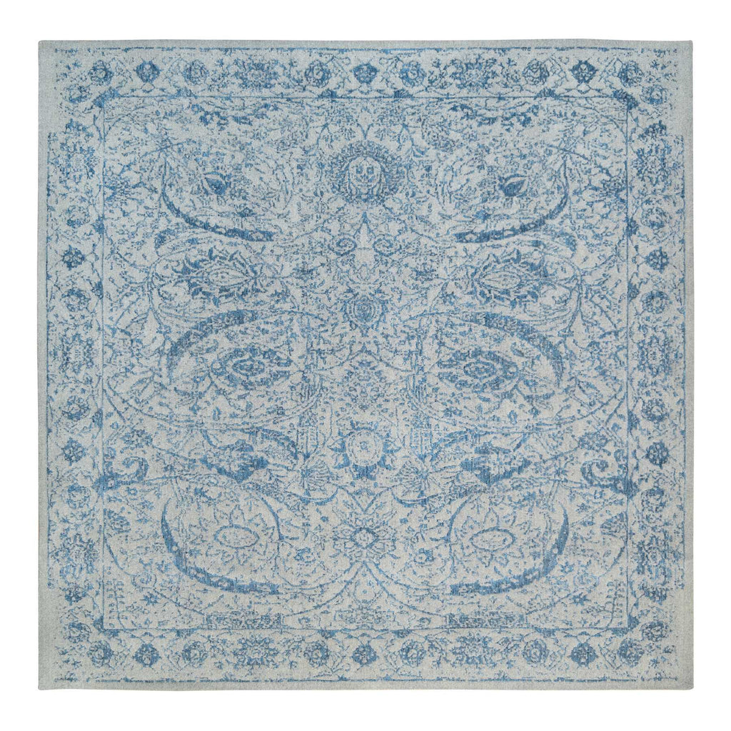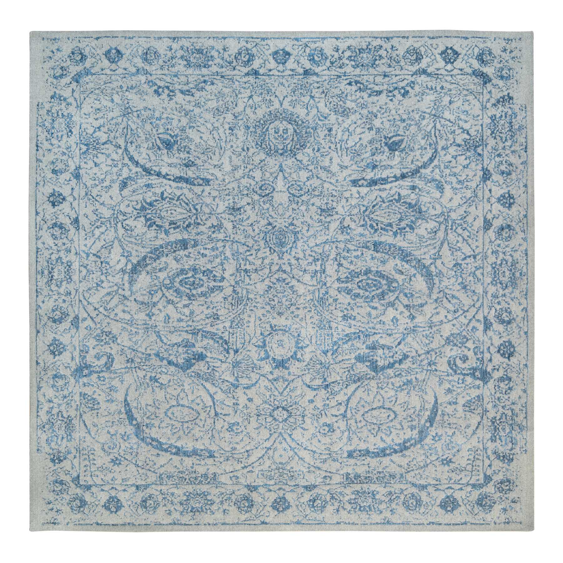 10'x10' Gray Fine Jacquard With Sickle Leaf Design Wool And Plant Based Silk Hand Loomed Oriental Square Rug FWR380886