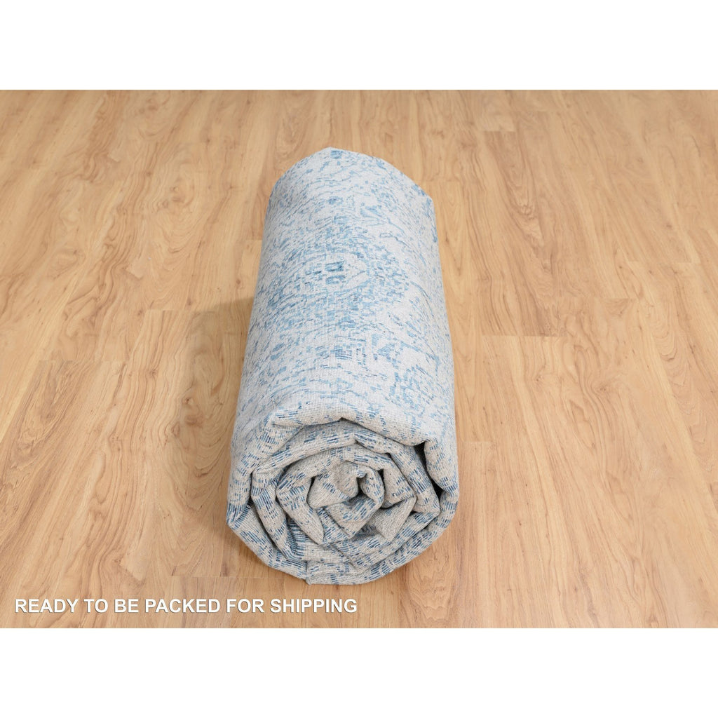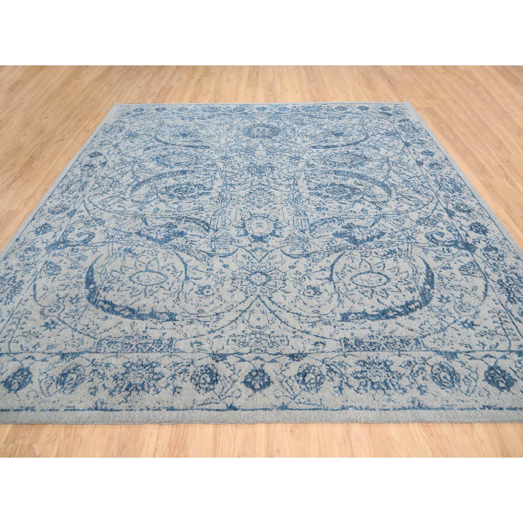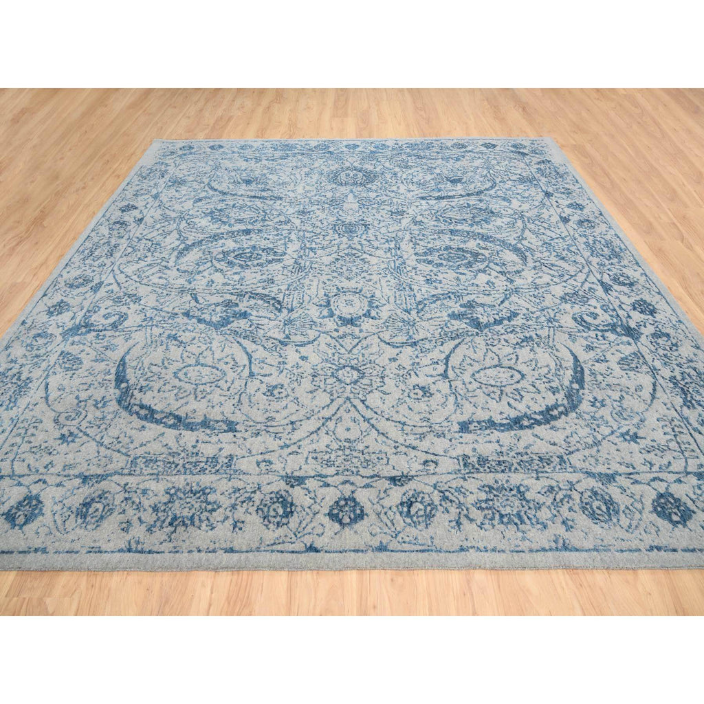 10'x10' Gray Fine Jacquard With Sickle Leaf Design Wool And Plant Based Silk Hand Loomed Oriental Square Rug FWR380886
